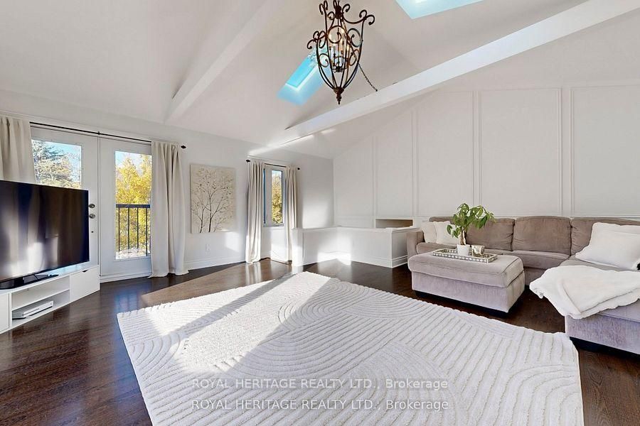 Experience refined living in one of toronto's most prestigious waterfront communities. This exceptional, custom-built residence offers approximately 2,800 sq. Ft. Of impeccably designed living space, seamlessly blending elegance, comfort, and functionality. The open-concept main level is adorned with sophisticated coffered ceilings and anchored by a stunning chef-inspired kitchen, thoughtfully designed for both everyday living and upscale entertaining. A private main floor office and an expansive laundry room add convenience without compromising style. The show-stopping family room is a true architectural centerpiece, featuring a wood-burning fireplace, soaring vaulted ceilings, skylights, a picturesque bay window, and a charming juliette balcony. Bathed in natural light, this space offers an inviting yet luxurious setting for both intimate moments and grand gatherings. A separate side entrance off the oversized driveway presents a rare opportunity for a seamless lower-level conversion-ideal for multigenerational living or income-generating potential. The fully finished lower level extends the home's versatility, offering two additional bedrooms, a spacious family room, and an oversized cold storage area. Step outside from the kitchen onto a private deck overlooking a tranquil, tree-lined backdrop, creating a serene outdoor retreat. The second level unveils a covered terrace-an uncommon and highly desirable feature that elevates the home's indoor-outdoor living experience. Perfectly situated, this residence offers effortless access to scenic parks, ravine trails, and the waterfront, along with ttc and go transit, highway 401, top-tier schools, the pan am sports centre, rouge national urban park, the toronto zoo, and a swift commute to downtown toronto. Approx. $300k spent in upgrades. Some of which include: the roof, soffits, insulation (2015), windows (2016), a/c (2021), ensuite ( 2024),and insulated garage doors(2025). Book your showing today!
