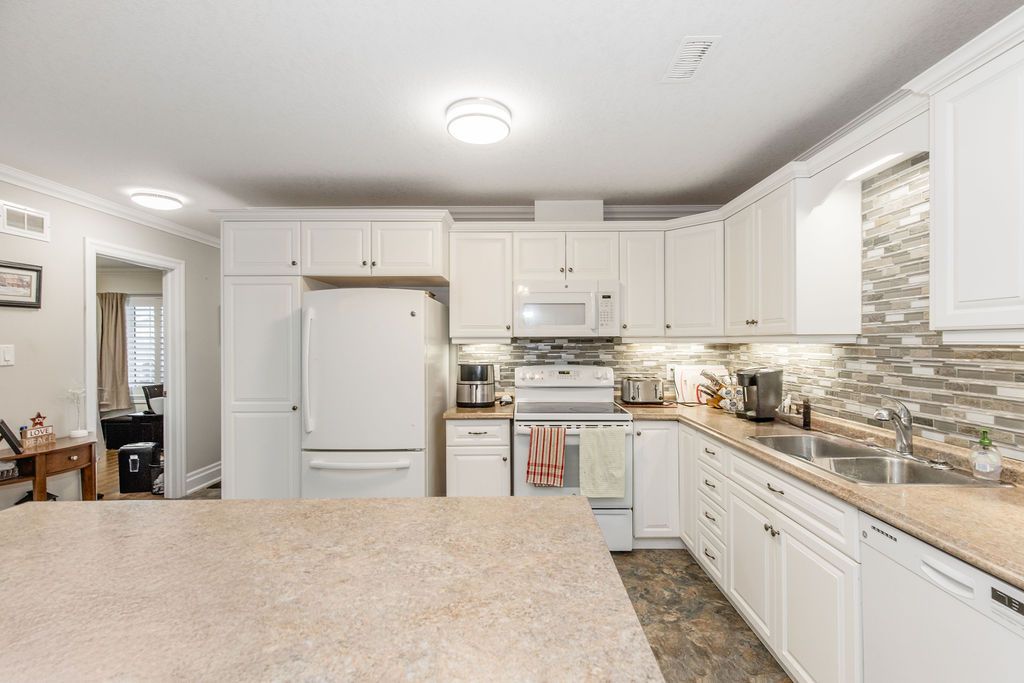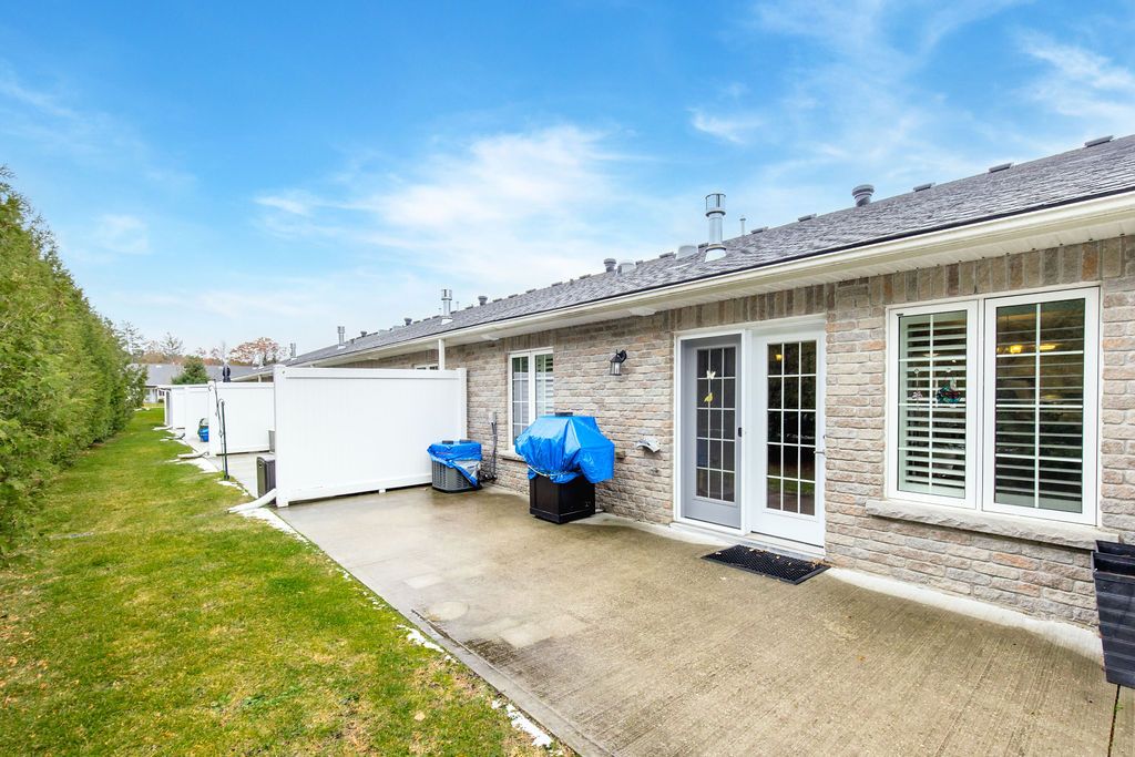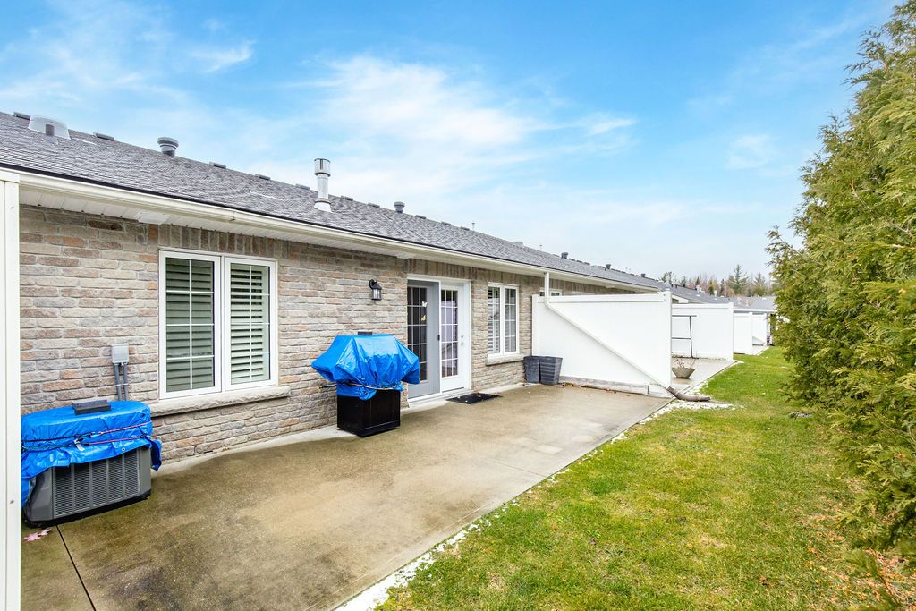 This true ranch-style bungalow is one of the very few single-level, fully wheelchair-accessible homes in town, complete with an attached garage and inside entry, making it ideal for aging in place, retirement living, or anyone seeking barrier-free design. Located in a prime central location, the home is just minutes from shopping, medical offices, restaurants, and the beach, offering unmatched walkability and everyday convenience. Inside, the home offers 1,200+ sq ft of thoughtfully designed living space with vaulted ceilings that enhance natural light and openness. The spacious eat-in kitchen features a large island with additional pot storage, perfect for entertaining, meal prep, or family gatherings. The layout includes 2 bedrooms, 2 full bathrooms, and main-floor laundry, providing functional, efficient living with no wasted space. Upgraded flooring throughout with no carpet ensures low maintenance and accessibility. The primary bedroom includes a large wardrobe, walk-in closet, and additional storage closet, while the private ensuite offers a walk-in shower with built-in seat, designed with comfort and mobility in mind. Garden doors open to a large concrete patio with gas bbq hookup, backing onto a private treed setting. A covered front porch adds another outdoor space to enjoy morning coffee or relax year-round. Situated within a desirable 55+ adult lifestyle community, residents enjoy walking trails, an outdoor pool, clubhouse, and an active social calendar. This is a rare opportunity to own a fully accessible, one-level home in a high-demand location, perfect for low-maintenance living, downsizing without compromise, or a relaxed, active lifestyle near the beach. Community center close by with indoor walking track