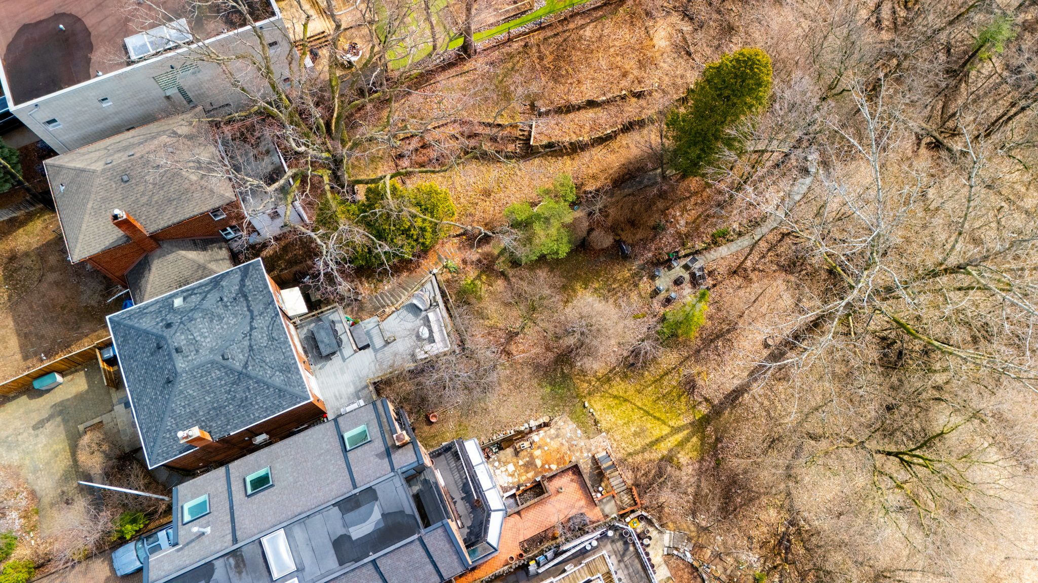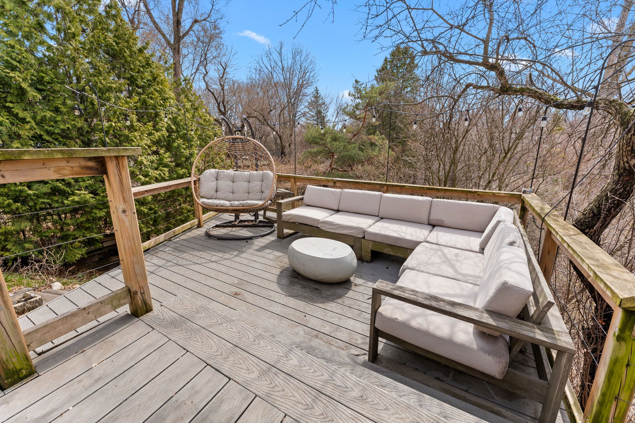 • Private backyard with lush gardens and a deep ravine for tranquility.