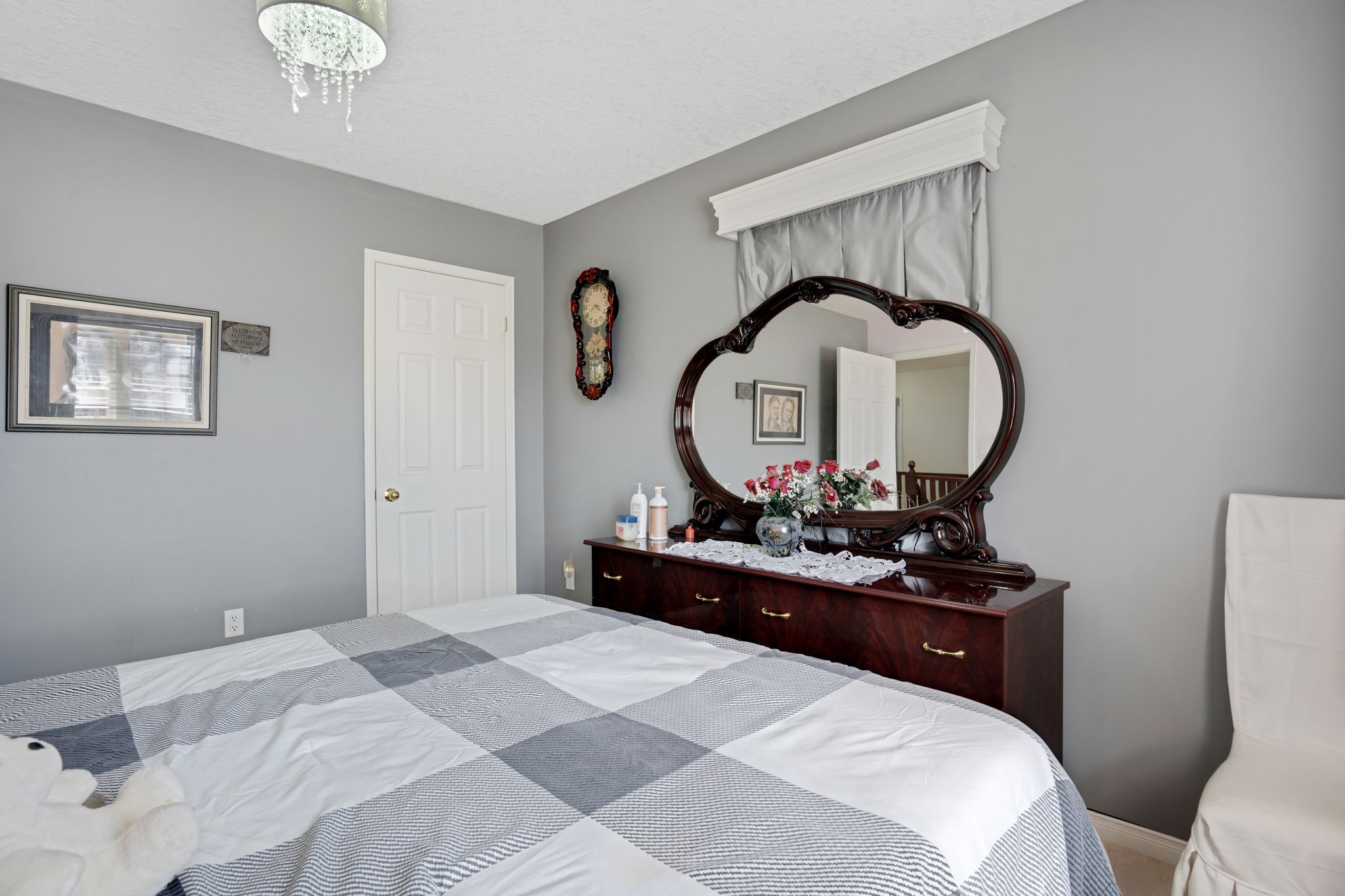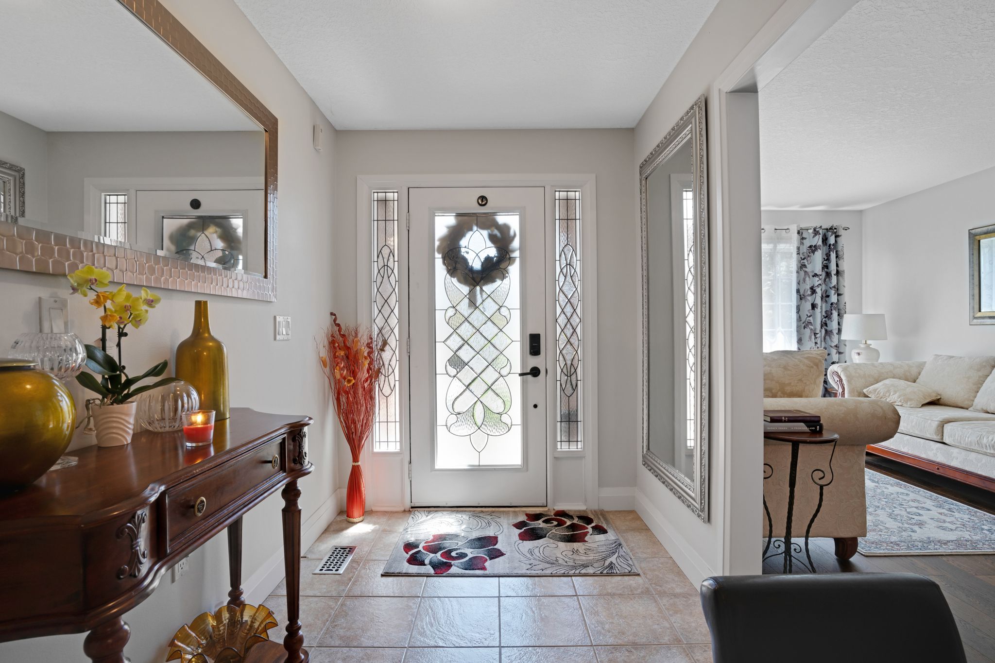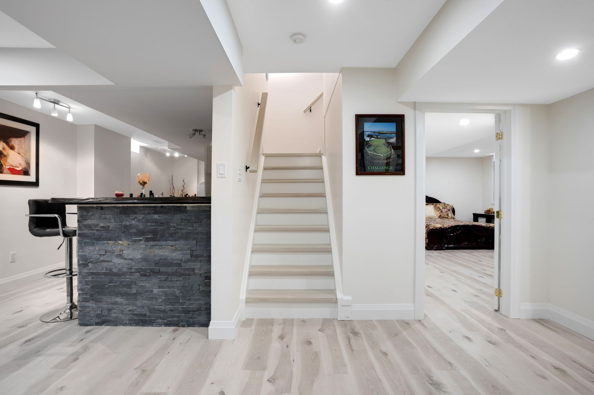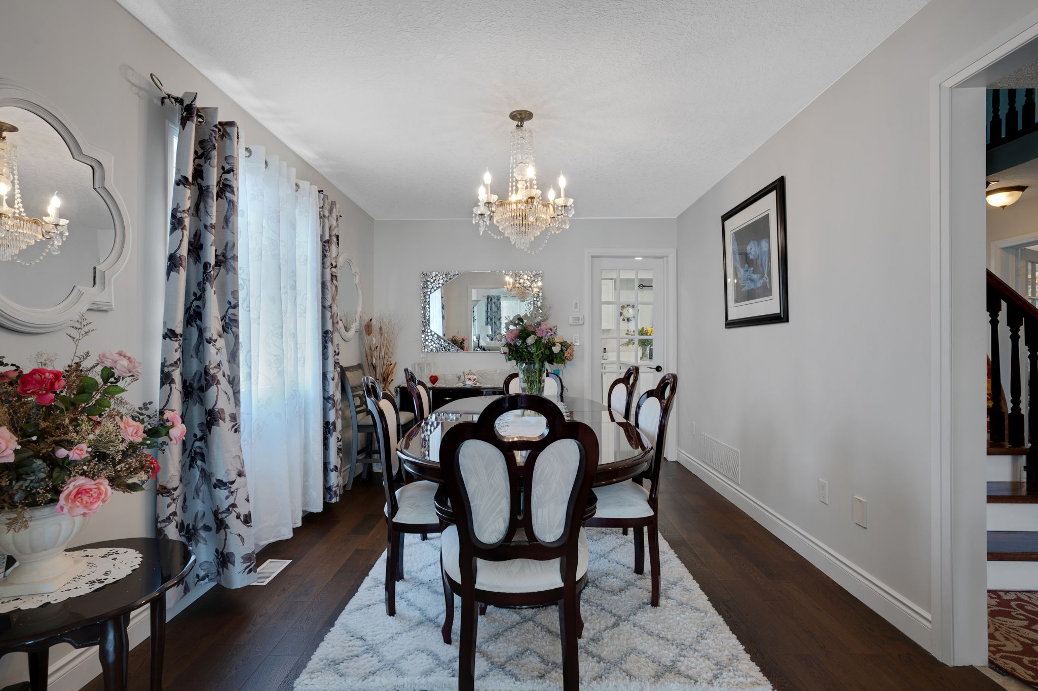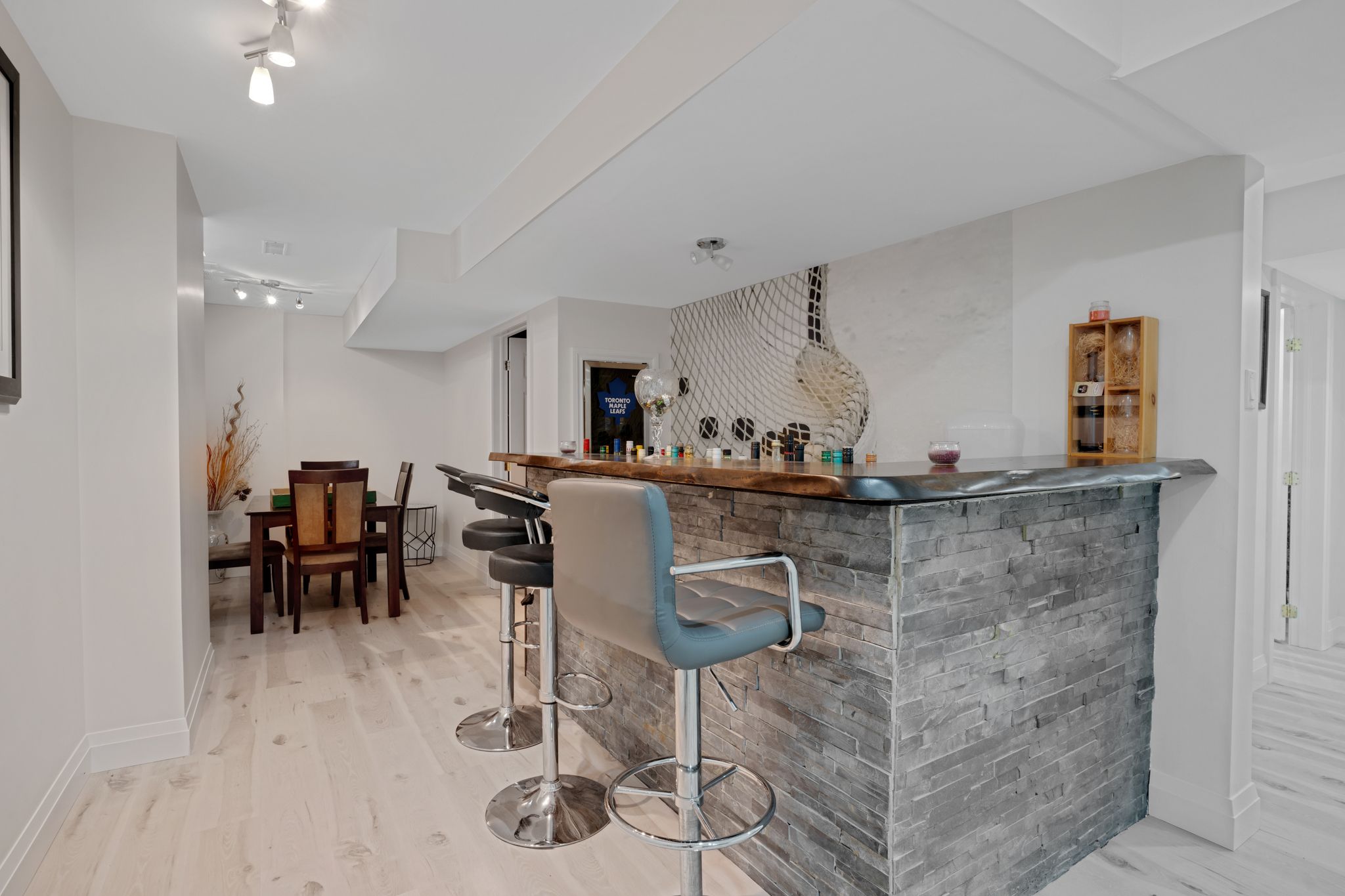 Premier family living in franklin pond. Located in the highly desirable and family-friendly franklin pond neighbourhood, 47 drinkwater drive offers a sprawling layout with over 2,750 sqft of impeccably finished living space. The main floor is designed features a grand foyer with a sweeping curved staircase that leads into sophisticated living and dining rooms complete with warm hardwood floors and a piano area. The heart of the home is the bright, modern kitchen, outfitted with crisp white cabinetry, sleek black hardware, and stainless steel appliances, which flows seamlessly into a sunny breakfast area and a cozy family room anchored by a classic gas fireplace. For added convenience, the main level also hosts a dedicated laundry room, and well-placed powder room. The upper level is a private sanctuary housing 4 generous bedrooms and 2 full bathrooms. The massive primary suite serves as a true retreat, featuring its own private 4-pc ensuite and large walk-in closet. The lower level has been completely finished to maximize entertainment value, offering a massive recreation room and a stylish custom bar with stone accents. This level also includes a versatile 5th bedroom and a modern 3-pc bathroom with a large walk-in shower, making it an ideal setup for guests or multi-generational living. Step outside to find a massive, fully fenced backyard situated on a large lot, featuring a private wood deck perfect for summer gatherings. Combining premium finishes with a premier location, this 4+1 bedroom home is a rare find for a growing family.