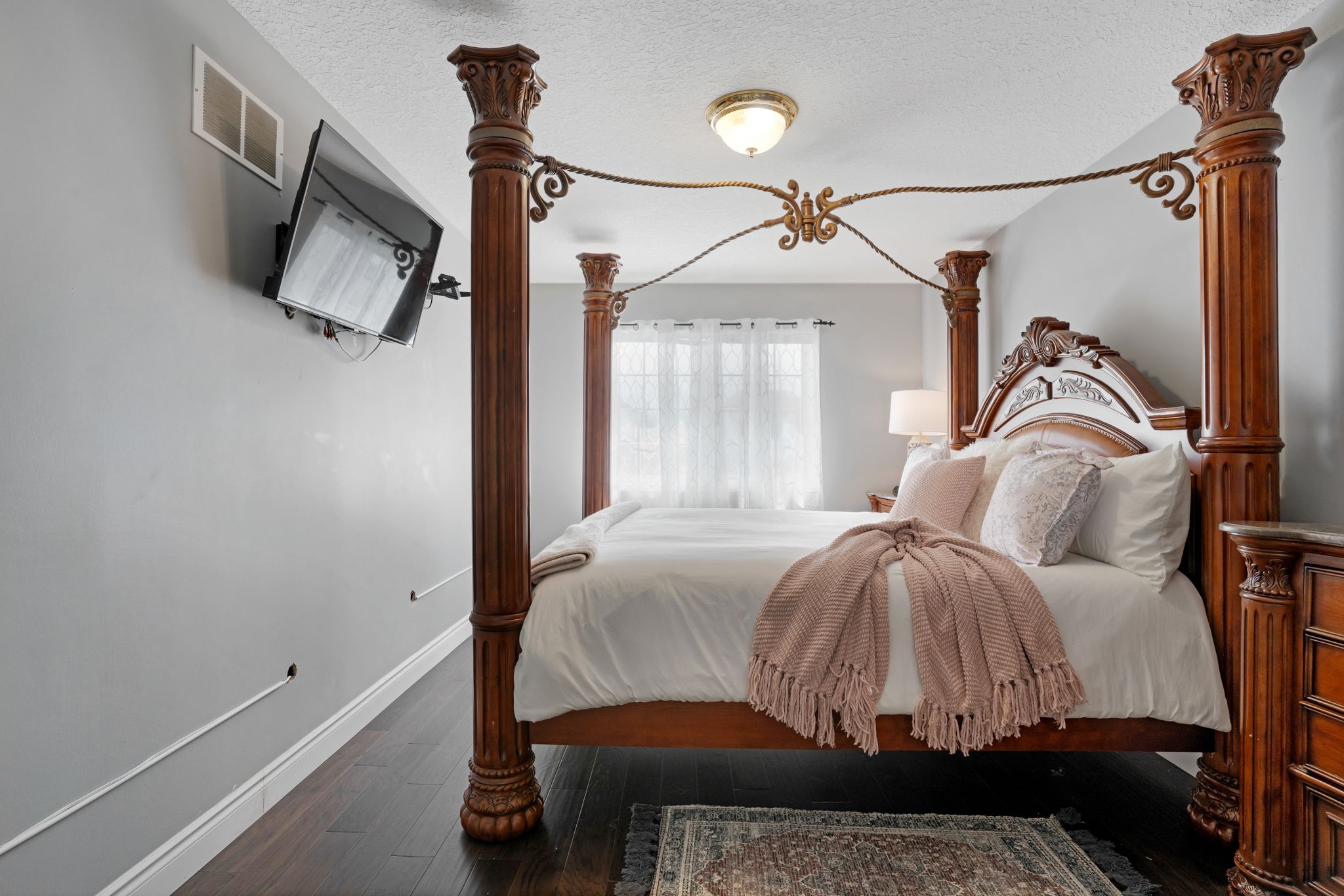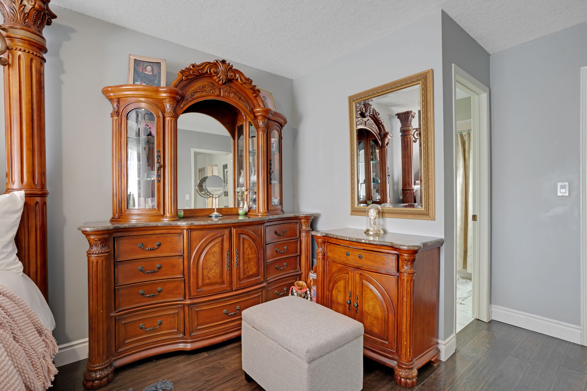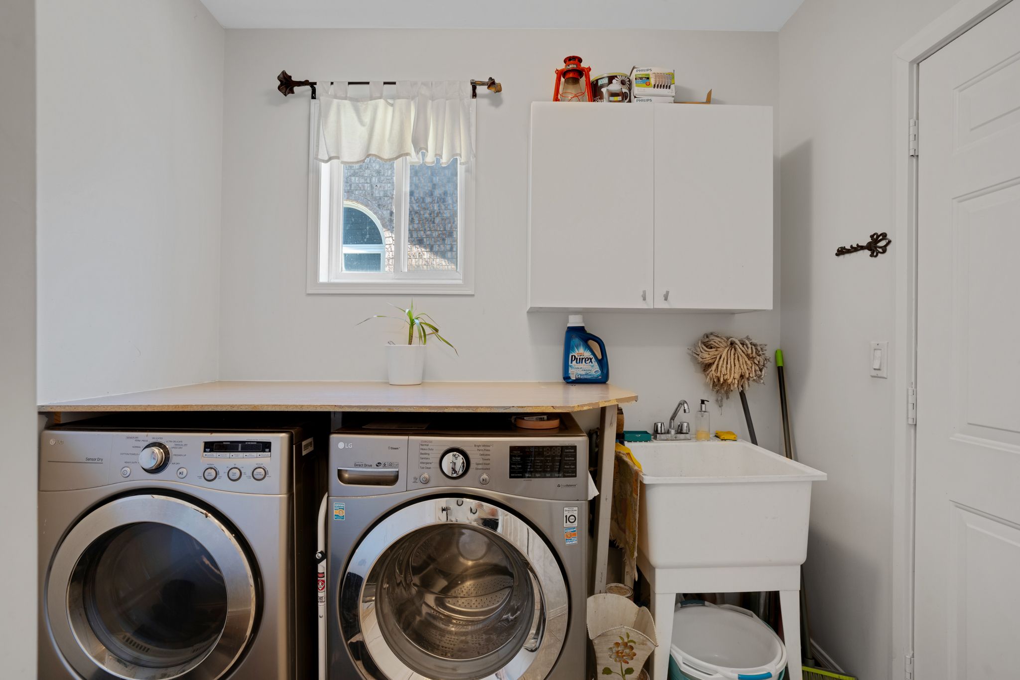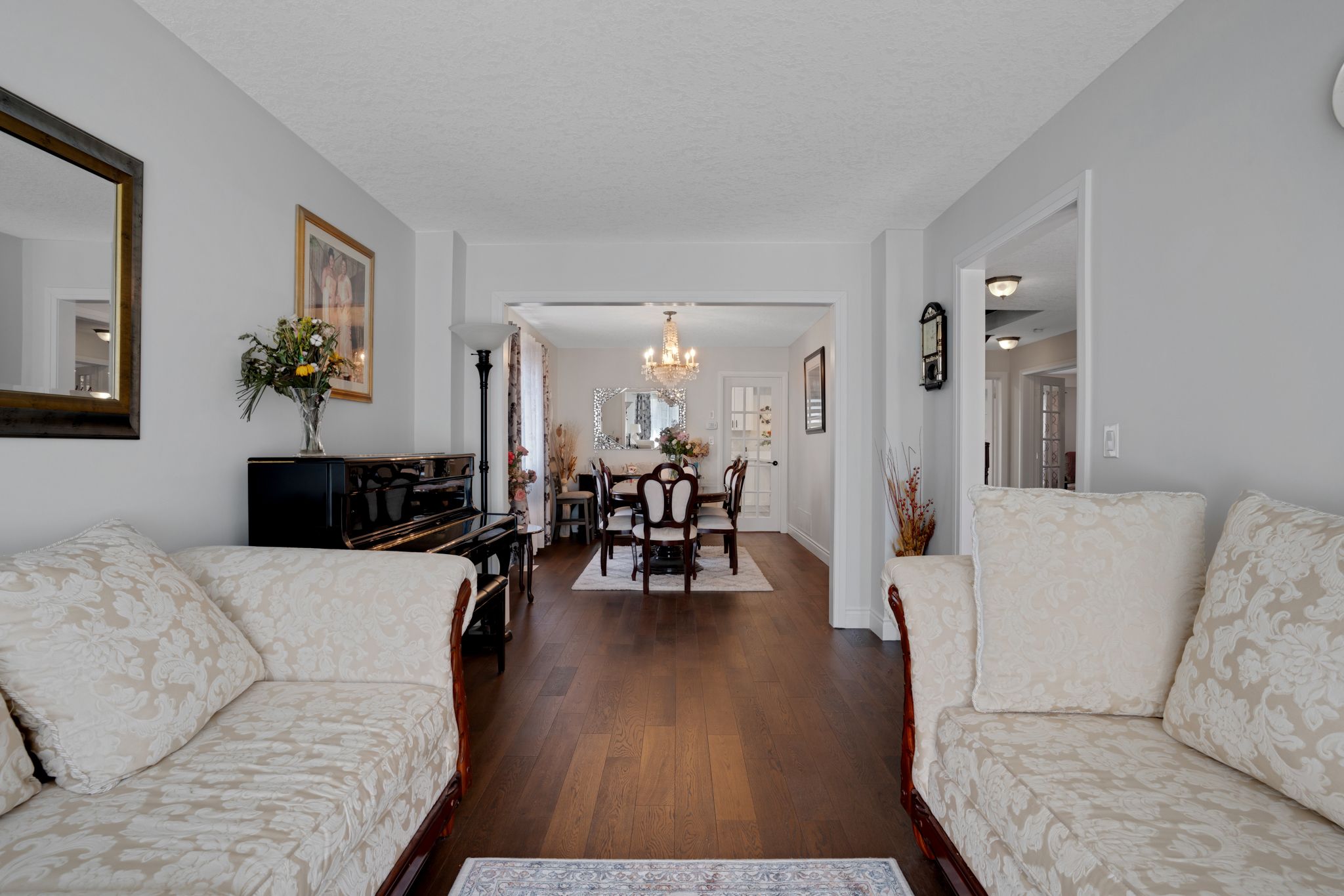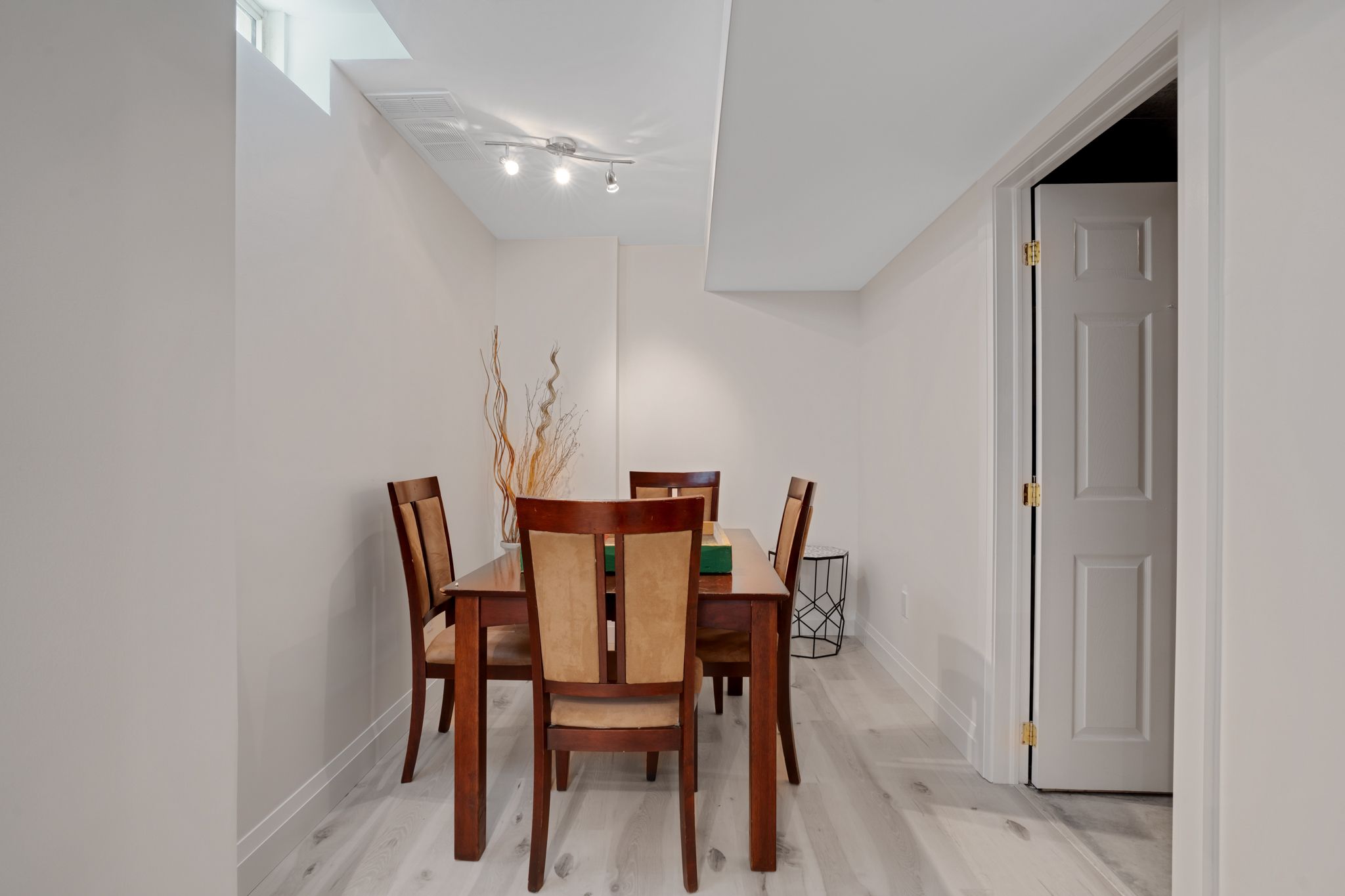 Premier family living in franklin pond. Located in the highly desirable and family-friendly franklin pond neighbourhood, 47 drinkwater drive offers a sprawling layout with over 2,750 sqft of impeccably finished living space. The main floor is designed features a grand foyer with a sweeping curved staircase that leads into sophisticated living and dining rooms complete with warm hardwood floors and a piano area. The heart of the home is the bright, modern kitchen, outfitted with crisp white cabinetry, sleek black hardware, and stainless steel appliances, which flows seamlessly into a sunny breakfast area and a cozy family room anchored by a classic gas fireplace. For added convenience, the main level also hosts a dedicated laundry room, and well-placed powder room. The upper level is a private sanctuary housing 4 generous bedrooms and 2 full bathrooms. The massive primary suite serves as a true retreat, featuring its own private 4-pc ensuite and large walk-in closet. The lower level has been completely finished to maximize entertainment value, offering a massive recreation room and a stylish custom bar with stone accents. This level also includes a versatile 5th bedroom and a modern 3-pc bathroom with a large walk-in shower, making it an ideal setup for guests or multi-generational living. Step outside to find a massive, fully fenced backyard situated on a large lot, featuring a private wood deck perfect for summer gatherings. Combining premium finishes with a premier location, this 4+1 bedroom home is a rare find for a growing family.