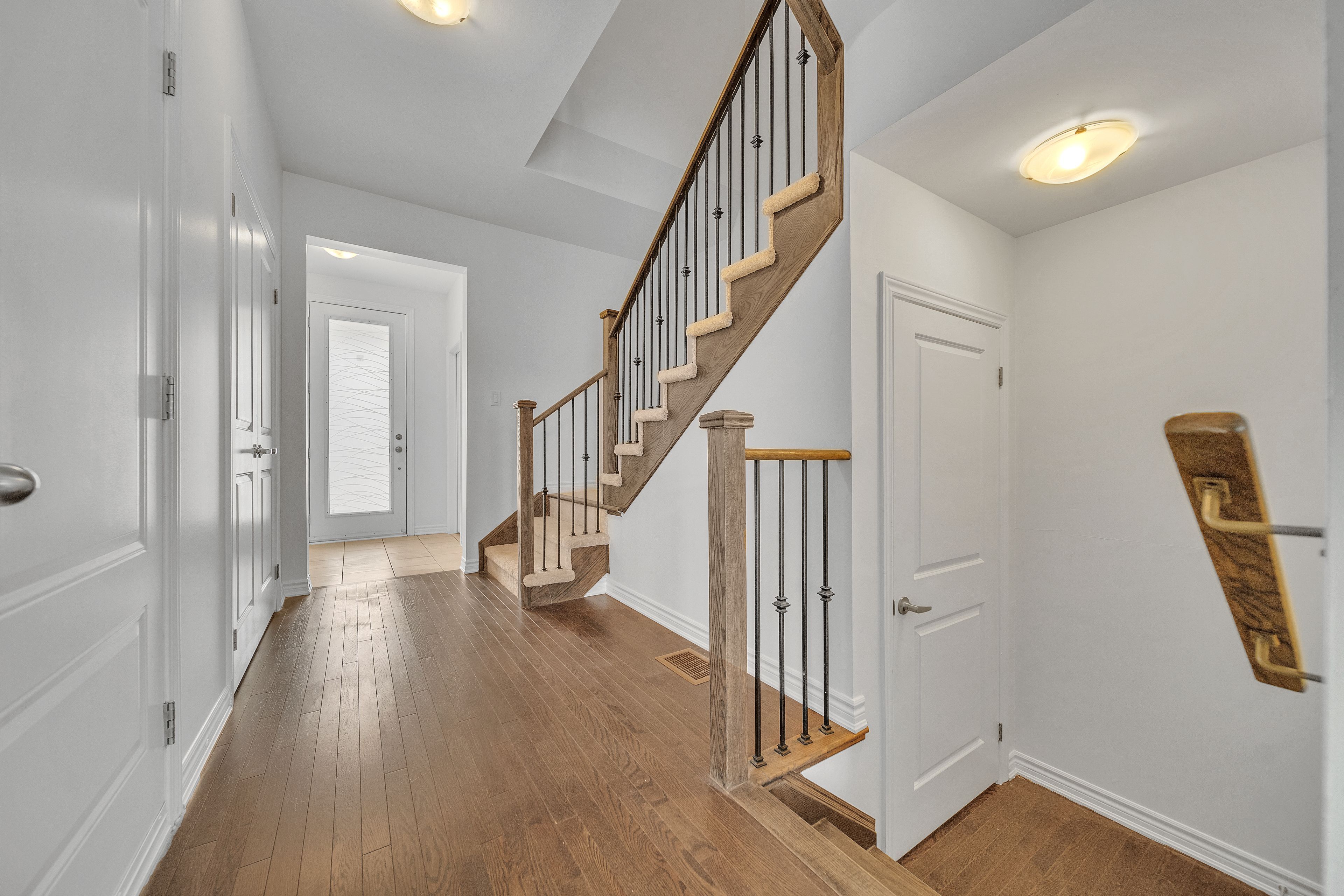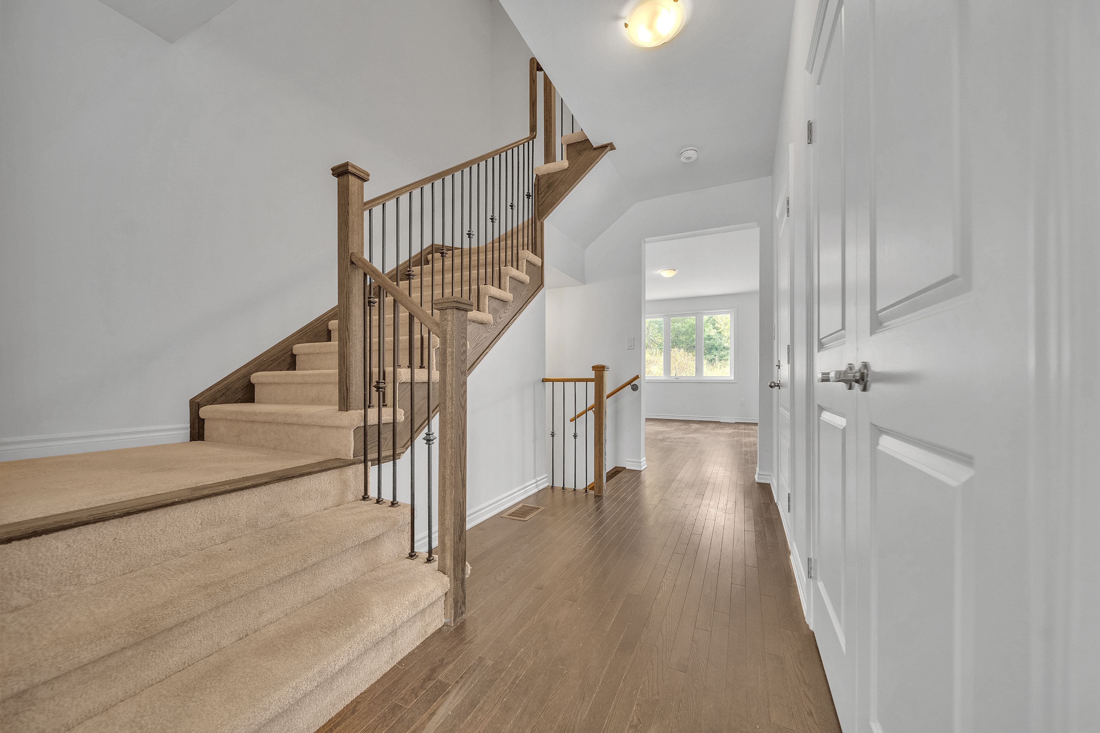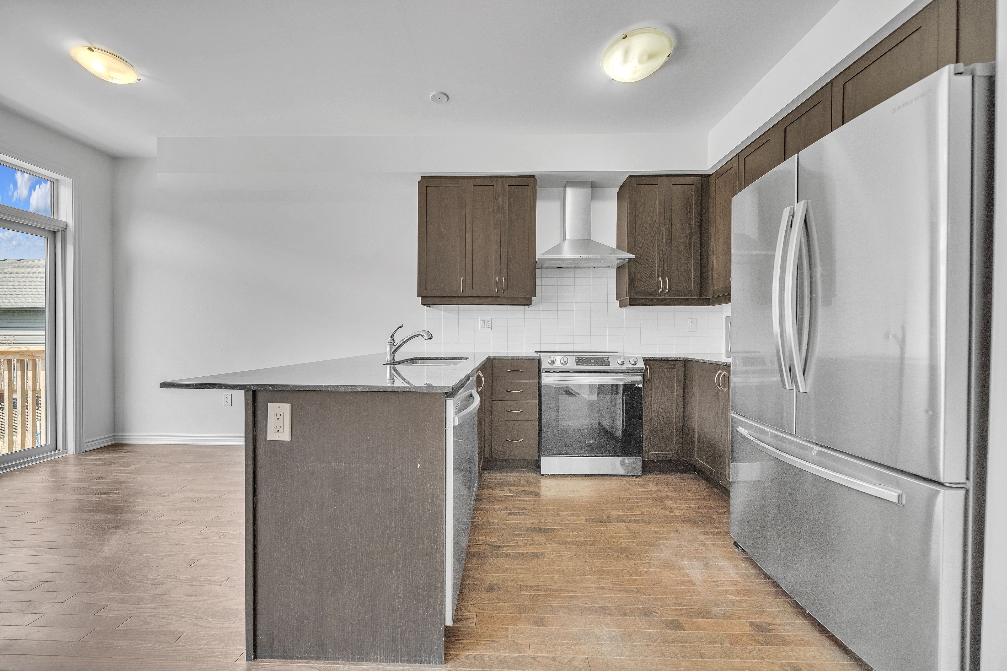 Welcome to the beautiful , immaculate freehold townhouse with no house at back and no sidewalk , just walking distance to all big amenities like walmart (other big stores). This property, which is less than a ten-minute walk from wasaga beach, perfectly combines contemporary luxury and an unbeatable location. When you enter you will be captivated by the open-concept layout and the floor plan which is designed for comfort and entertaining. Hardwood floors on main floor and freshly painted walls give the main floor an absolute fresh feeling. The flush breakfast bar , quartz countertops, a large island, with samsung s/s appliances makes kitchen more appealing . Rarely you will see wide stairs as you go upstairs. Carpet has been recently cleaned by professionals. Primary bedroom with big walk/in closet. Primary bedroom has 4 pc ensuite with vanity, tub and standing shower. Stainless steel washer/dryer on second floor. Bedroom 2&3 are equipped with large windows. Wooden deck for convenience access from family room to backyard. *bonus- backyard access door is directly connected to garage door from inside* don't miss this gem to own it. Sellers are open to any offers.