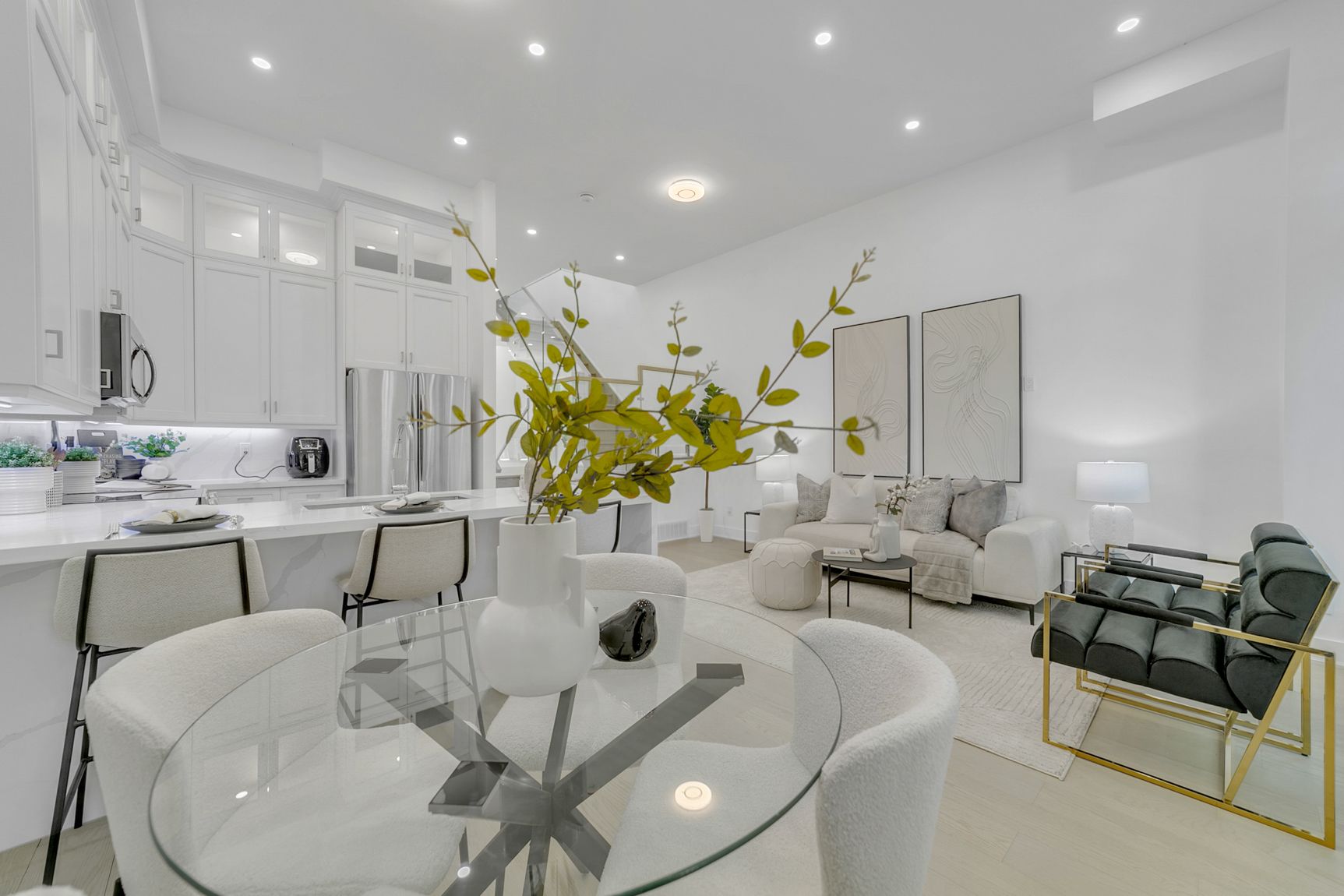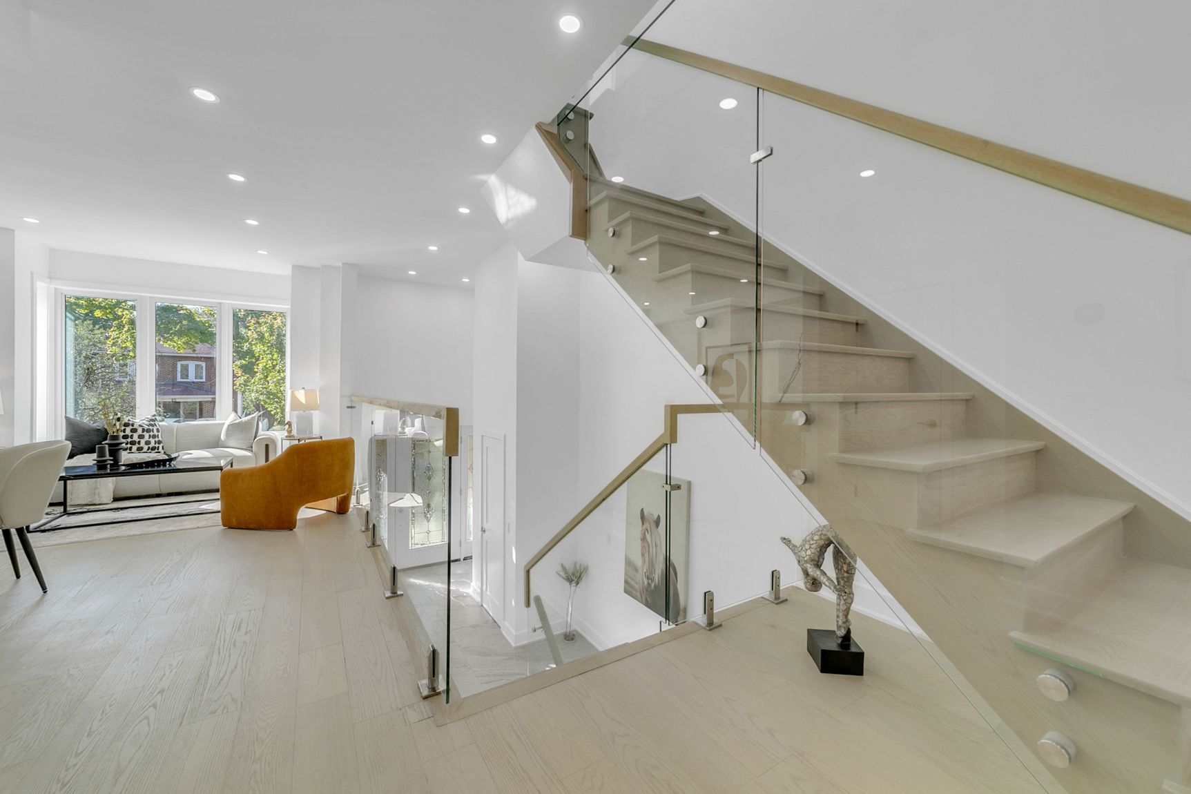 This stunning elevated 3-bedroom home is perfect for design-conscious buyers who value style, space, and natural light. Featuring an open-concept layout with a 14-ft ceiling, hardwood flooring, an upper skylight, and modern glass railing, the living space feels bright and airy, perfect for entertaining. Gourmet kitchen with full-size cabinetry, second-floor laundry, cold cellar, and a thoughtfully designed flow complement the elevated living experience. This designed multi-level home has an exceptional separation of living area, ideal for professionals, creative for those working from home, couples, or active families who appreciate elevated living and a home with personality. Located close to the garden express, close to downtown toronto, a short walk to the lake, schools, library, and amenities, this is a rare opportunity to own a home that combines luxury, convenience and timeless design pictures on the mls reflect when the house was staged. The house is now move-in ready.