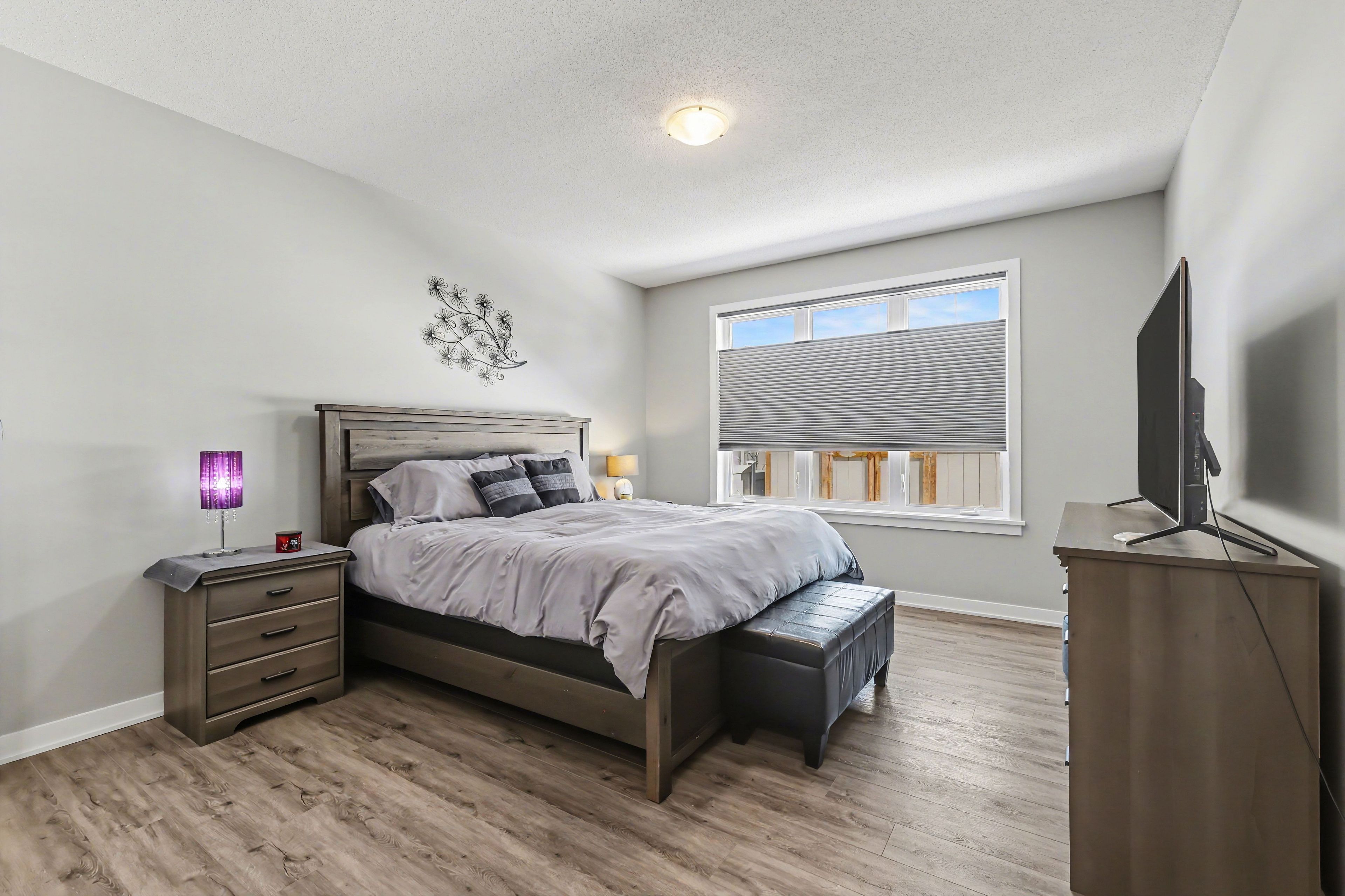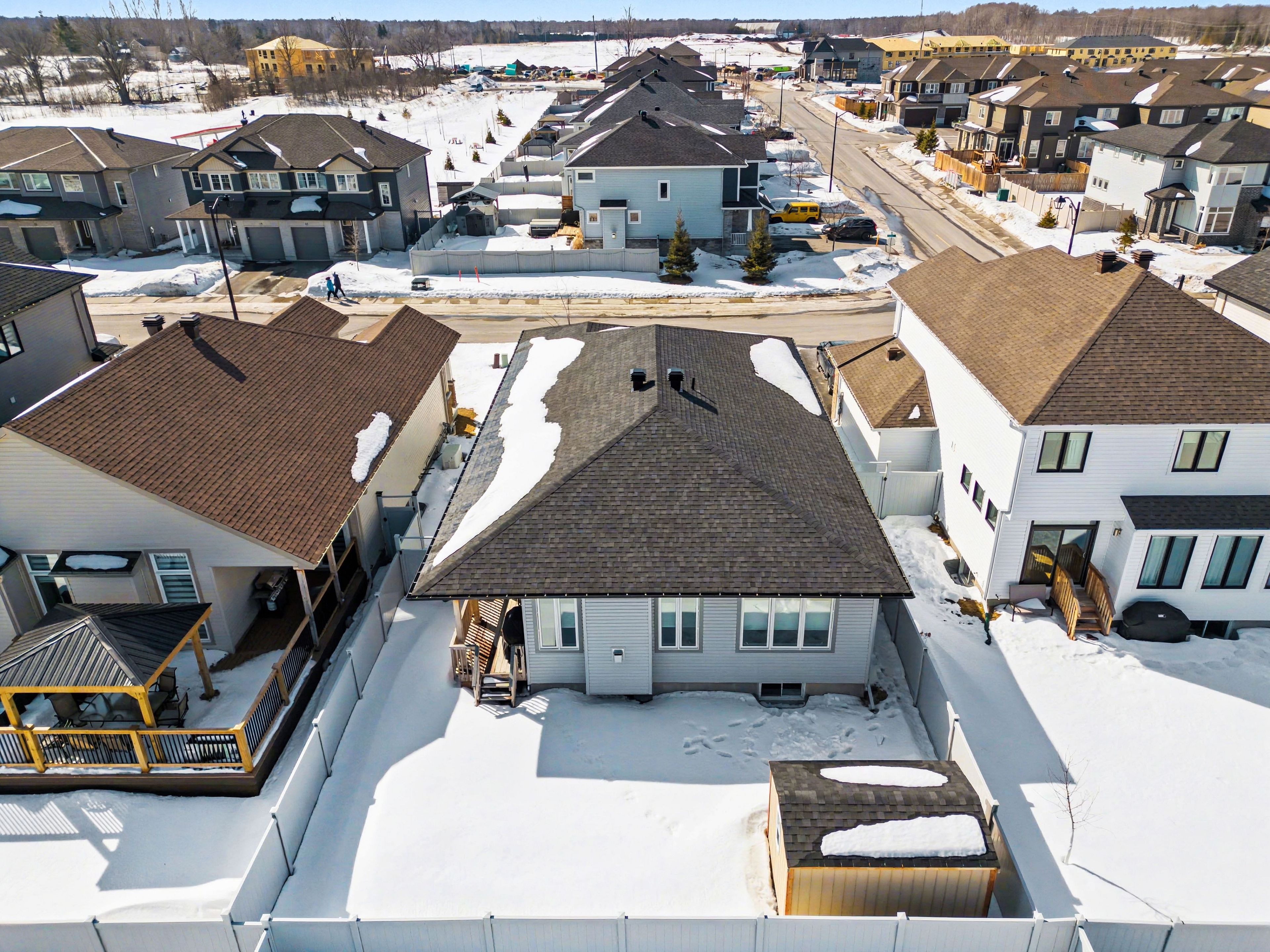 Rare find in miller's crossing! This cardel-built bungalow perfectly balances high-end aesthetics with thoughtful, barrier-free design. Boasting an expansive floor plan with 9ft ceilings and premium luxury vinyl plank (lvp) flooring, the home offers a bright, seamless flow. Designed for ease of movement, the interior features oversized doorways and wide hallways for full accessibility. The oversized front walk in closet is a dream making you wonder, why doesn't every home have this feature! The heart of the home is a sun-drenched kitchen with white quartz counters, upgraded appliances, tile backsplash, and a functional island with breakfast bar. The kitchen flows into a bright dining area with direct access to a covered porch-ideal for year-round barbecuing. The adjacent family room is anchored by a cozy gas fireplace and framed by massive windows. The primary suite is a true sanctuary with remote-controlled blinds, a large accessible walk-in closet, and a spa-like ensuite with a custom tile roll-in shower. A versatile front bedroom with french doors currently serves as a professional home office. The main-floor laundry room provides incredible utility with extensive built-in pantry shelving. The builder-finished lower level significantly expands your space, offering a sprawling recreation room, two additional large bedrooms, and a third full bath. Hobbyists will appreciate the massive storage area and lots of options if you want a workshop space. Home equipped with full house generac generator. The exterior is professionally landscaped, featuring a quaint front stone patio for morning tea and a large stone patio within the fully fenced backyard and convenient storage shed. Ideally situated steps from a large park, outdoor rink, and splash pad. Enjoy the best of carleton place: a vibrant downtown with boutique shops, award-winning dining, scenic river trails, and an easy commute to ottawa. This is more than a home; it's a lifestyle of comfort and convenience.