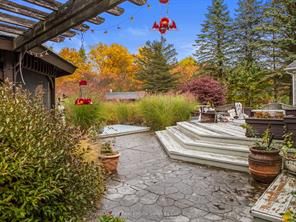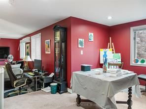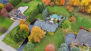 Welcome to 47 fox run drive, an amazing over 4000 sq ft 'bungaloft' nestled on a treed and landscaped over 1 acre lot backing onto a protected forest area. An easy flowing design with 4 bedrooms and 5 bathrooms a winding walkway leads to the custom double door entry to the spacious foyer. To the left is the separate dining room and to the right the main floor family room. Straight ahead is the beautiful living room with tall cathedral ceiling and gas fireplace that overlooks the massive garden with salt water pool, screened in gazebo and cabana and covered deck. The gleaming white kitchen features granite counters, centre island, eating area and walkout to covered deck. Tall ceilings continue into the primary bedroom which is located at the back of the house also overlooking the gardens with another walkout and a 4 piece ensuite bathroom. There are an additional bedroom (currently used as office) on the main level as well as a 4 piece semi-ensuite bathroom. The main surprise is the separate entrance to an in-law/nanny suite/area which has a 3 piece bathroom, two bedrooms, office and sitting area.. All necessities are a short drive away and major highways are close. This is a 'must see' home waiting for your visit.