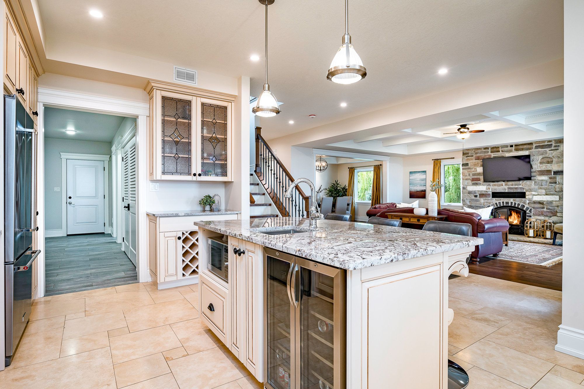 • Spacious open floor plan featuring a chef's kitchen and oversized island.