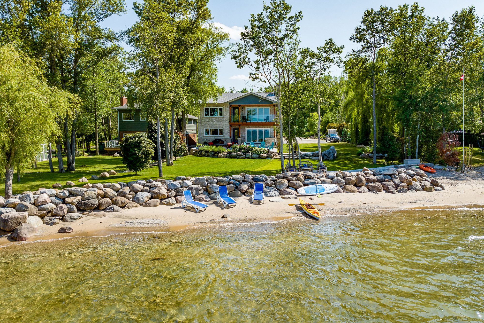 Outstanding waterfront residence in collingwood! Spectacular panoramic waterfront views from this custom-built home close to the finest amenities this 4 season area has to offer. The owners have a vacant lot abutting this property that can also be purchased together with the house giving you approx. 100 ft of waterfront with the 2 properties together. See mls s12905050 listed at $900,000. Ideal for backyard entertaining with family and friends and dining al fresco while listening to the waves lapping up on shore. Featuring a sandy beach for children to play and crystal-clear waters for kayaking, paddle-boarding and swimming. This 3,039 sq. Ft. Home has an array of stunning features on the main floor; open floor plan living with a chef's kitchen & oversized island, high efficiency wood burning fireplace in the living room and a spacious dining room with coffered ceiling. There is a main floor primary bedroom with ensuite, laundry/mudroom, 3 pc bathroom and inside access to the single car garage. The second floor features 2 spacious bedrooms, one with a large deck and glass railings overlooking the water, an office, family room and 4 pc bathroom. The basement is a 5'10" high crawlspace with plenty of room for storage, high efficiency furnace and hot water on demand. A large detached garage/workshop (29'6" x 25'6") sits at the front of the property for the handyman or car enthusiast. There is parking for about 6 cars on the driveway, a concrete pad at the front of the home and beautiful perennial gardens throughout the property. Enjoy the sun and a glass of wine from your rooftop deck accessed from the second floor and morning sunrises from the waterside terrace. The location is easy access and a short drive to downtown collingwood, wasaga beach and all the 4-season activities like golf, skiing, hiking, biking and boating. A wonderful atmosphere for your home away from home or full-time living in natures playground.