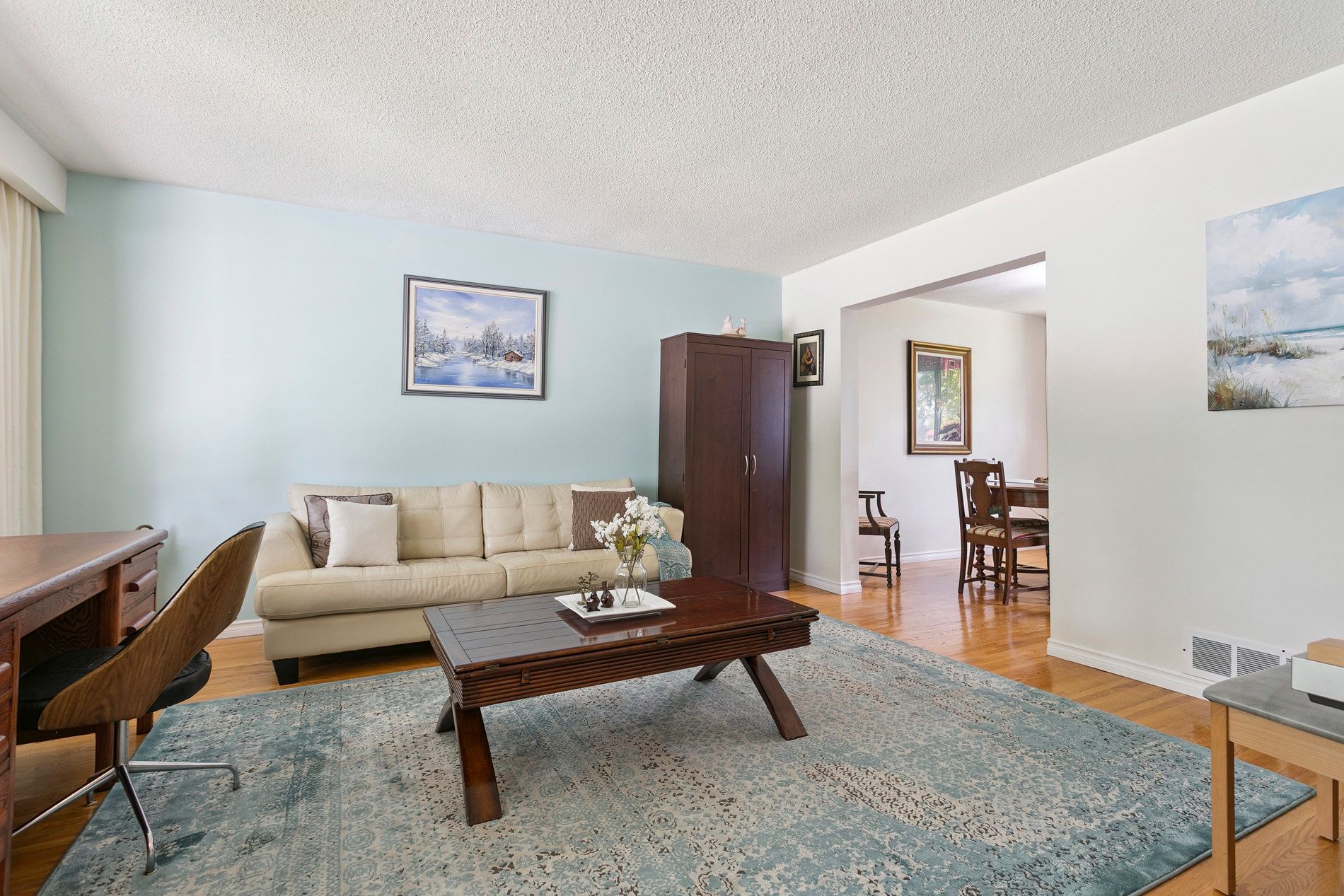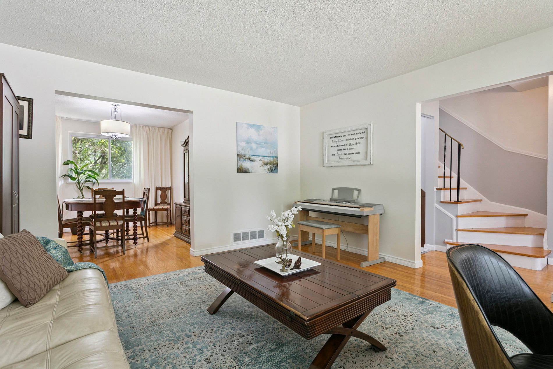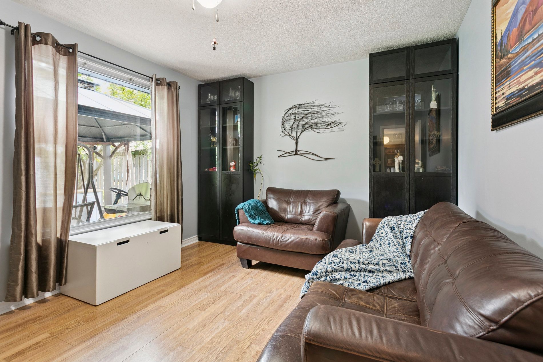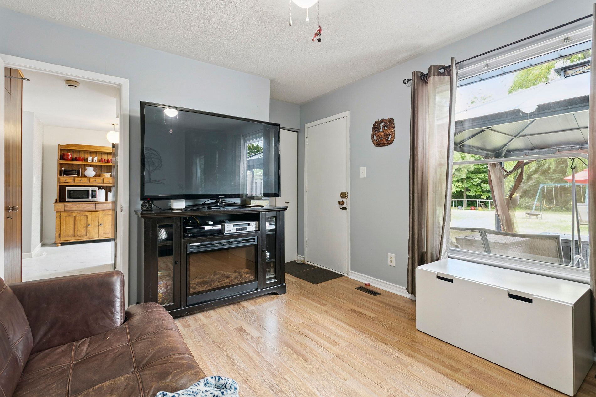 • Cozy family room with a picture window and private backyard access.