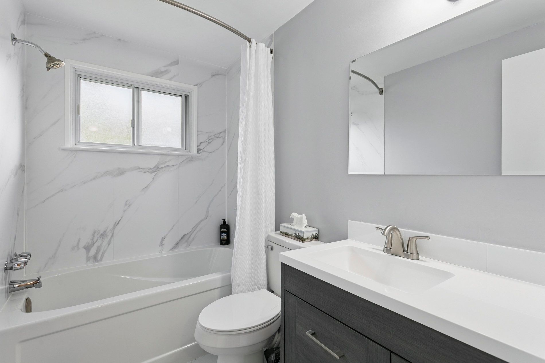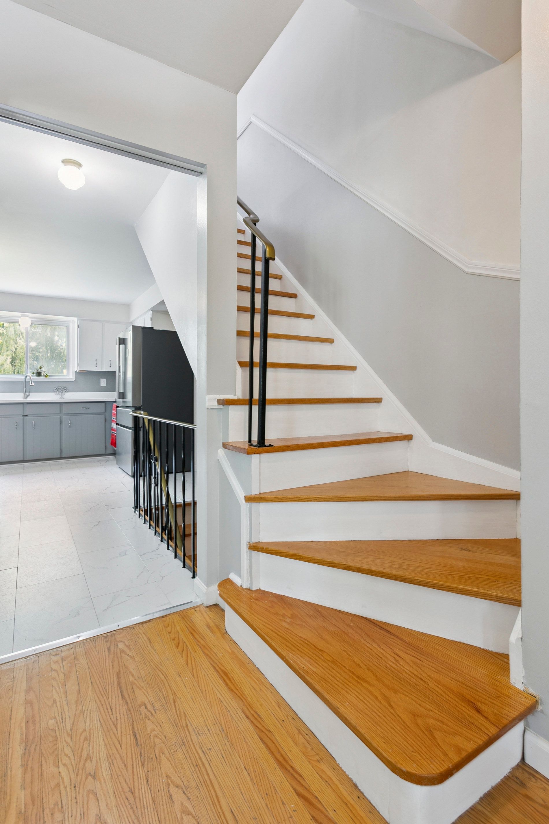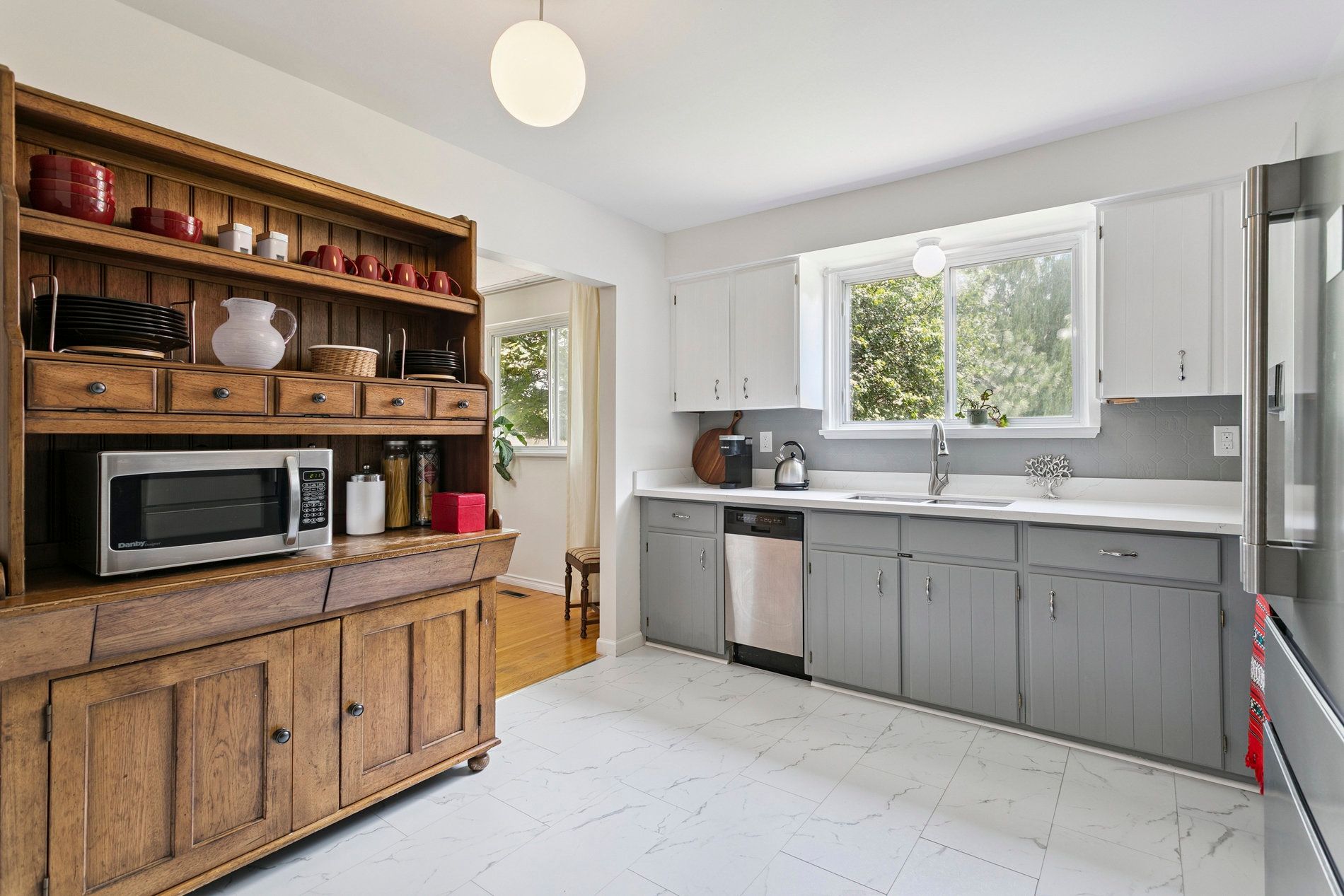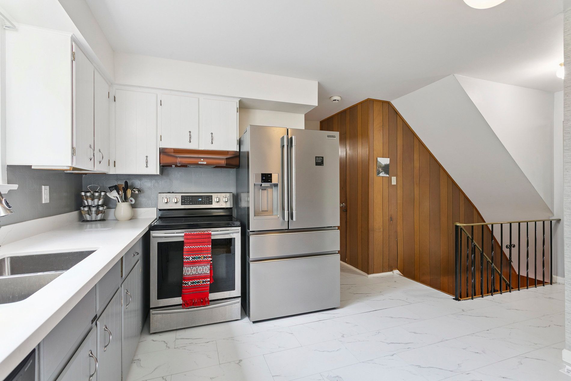 • Renovated kitchen with quartz countertop and modern amenities.