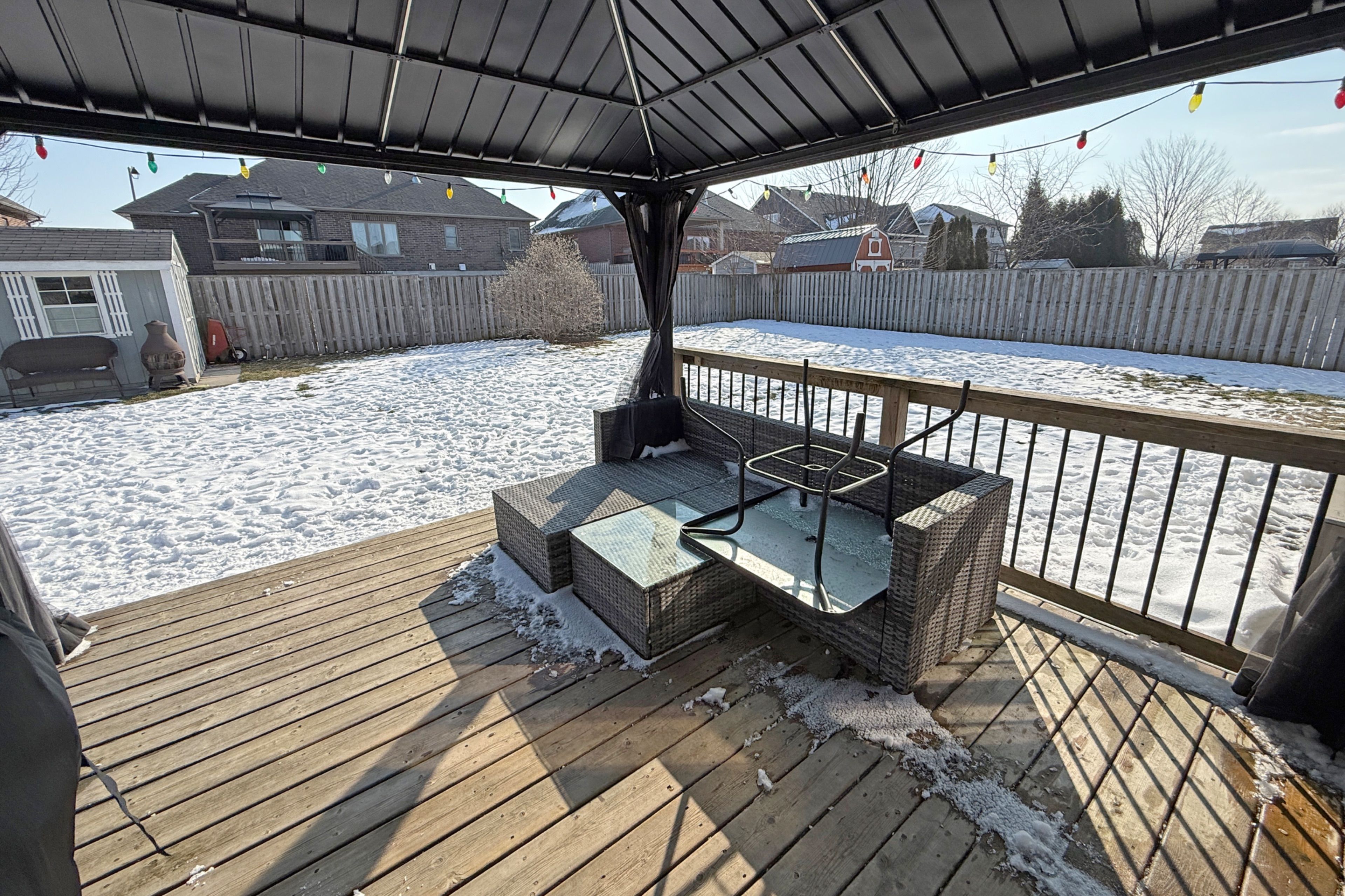 • Fully fenced yard with deck, garden shed, and ample parking.
