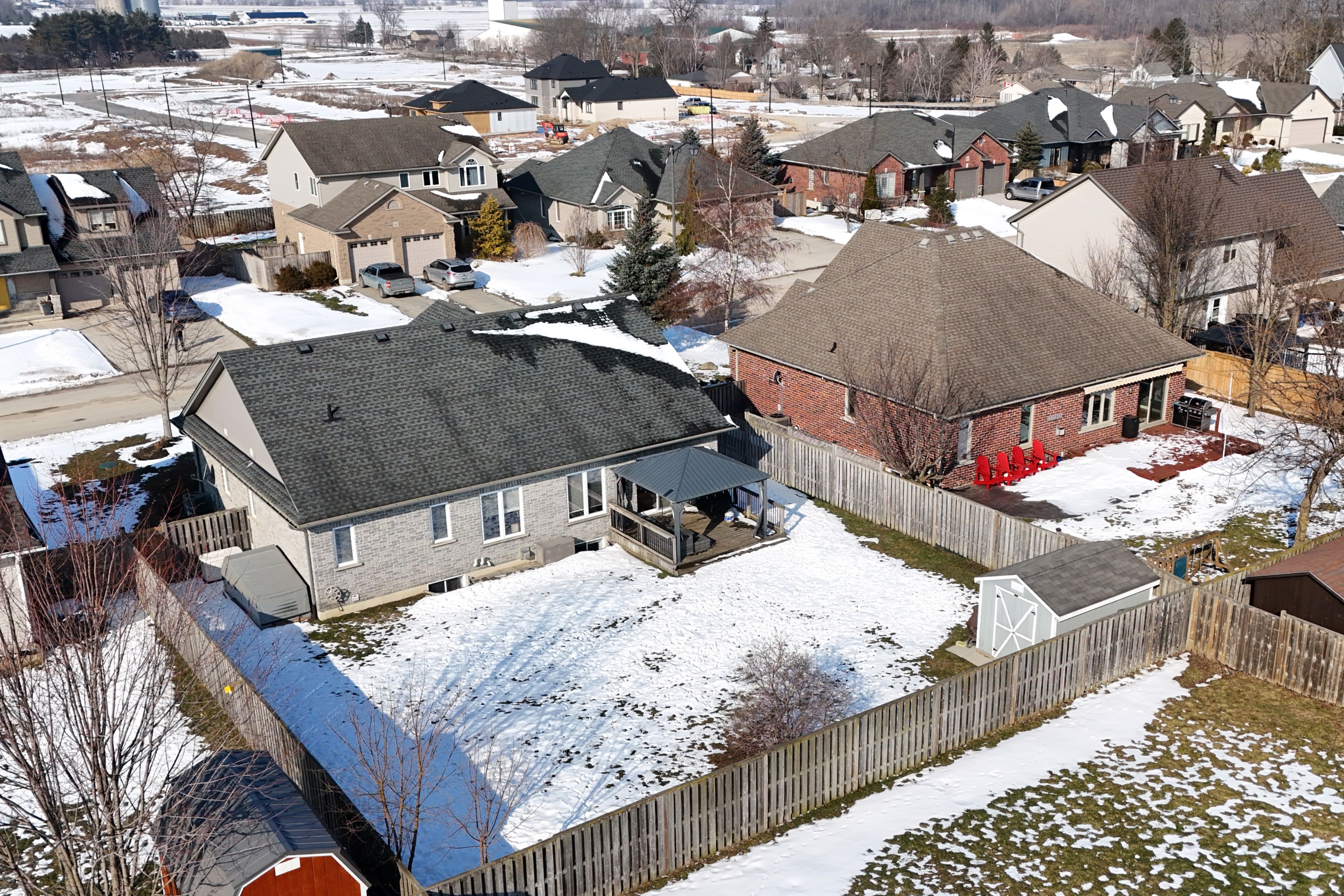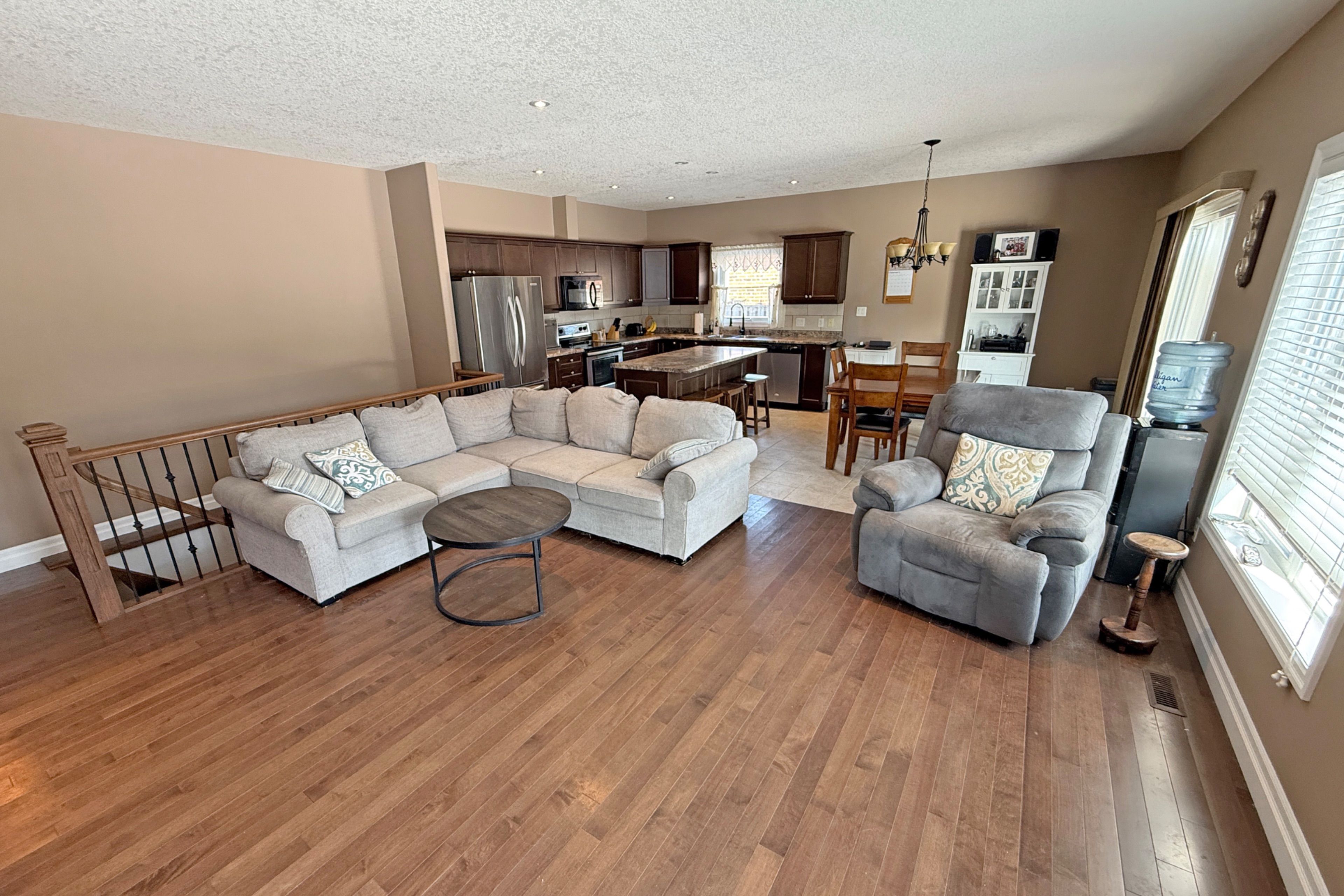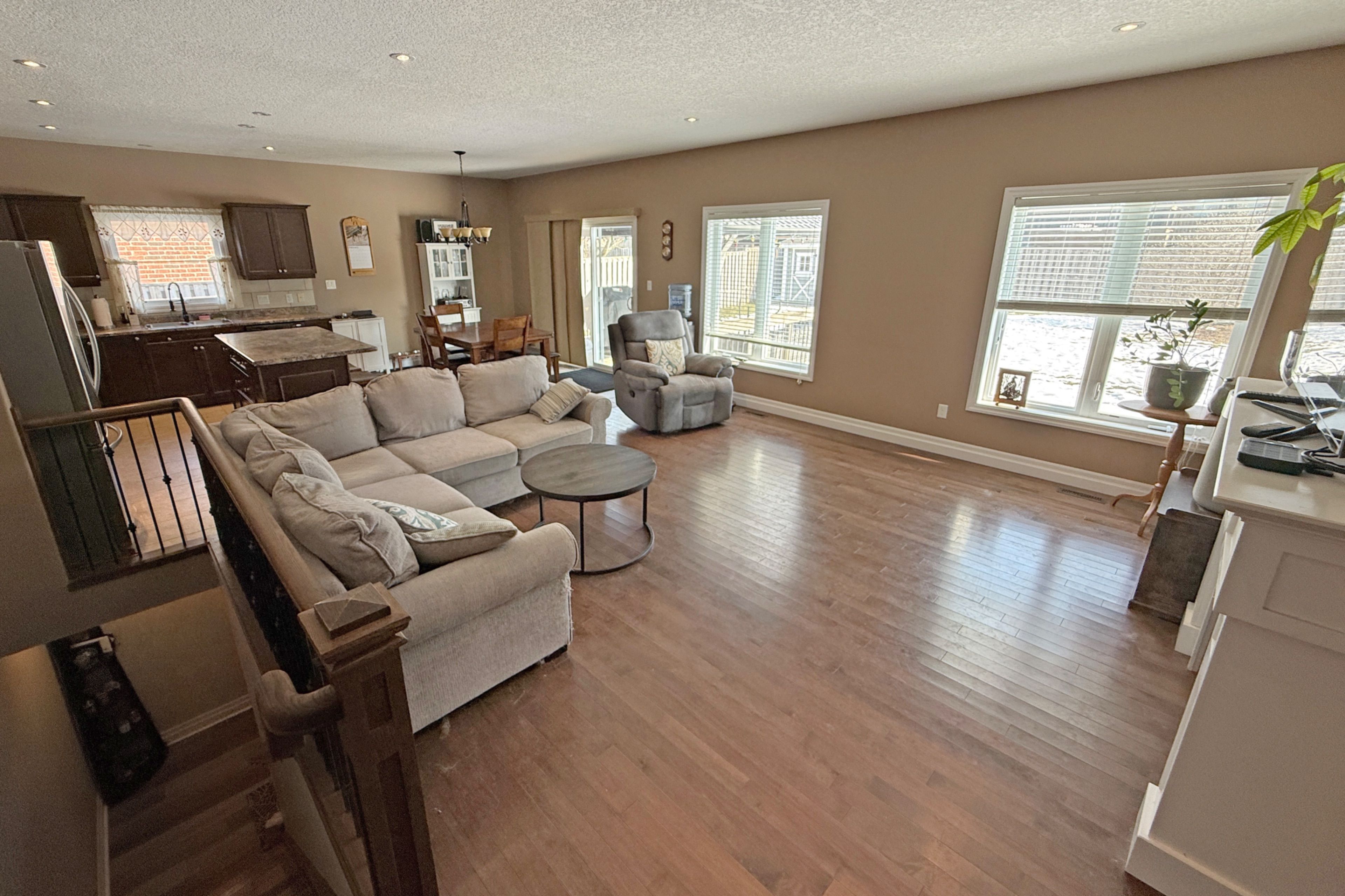 Welcome home to mount elgin! This spacious 4-bedroom bungalow offers the space and features you've been looking for. A large foyer leads to the bright, open-concept living area at the rear of the home, where sun-filled living and dining spaces overlook the backyard and flow into the kitchen-perfect for entertaining-with an oversized island and electric fireplace adding warmth and function. The primary suite includes a walk-in closet and 3-piece ensuite, while a second bedroom or office with a large front window and an additional full bath complete the main level. Downstairs, you'll find a separate living area featuring a family room with gas fireplace, a spacious third bedroom, a 3-piece bath, and a fourth bedroom, offering excellent in-law suite potential. The fully fenced yard includes a deck off the dining area and a garden shed, while the concrete driveway provides parking for six vehicles plus two in the garage. A full generac natural gas generator ensures reliable power, and all major appliances are included.