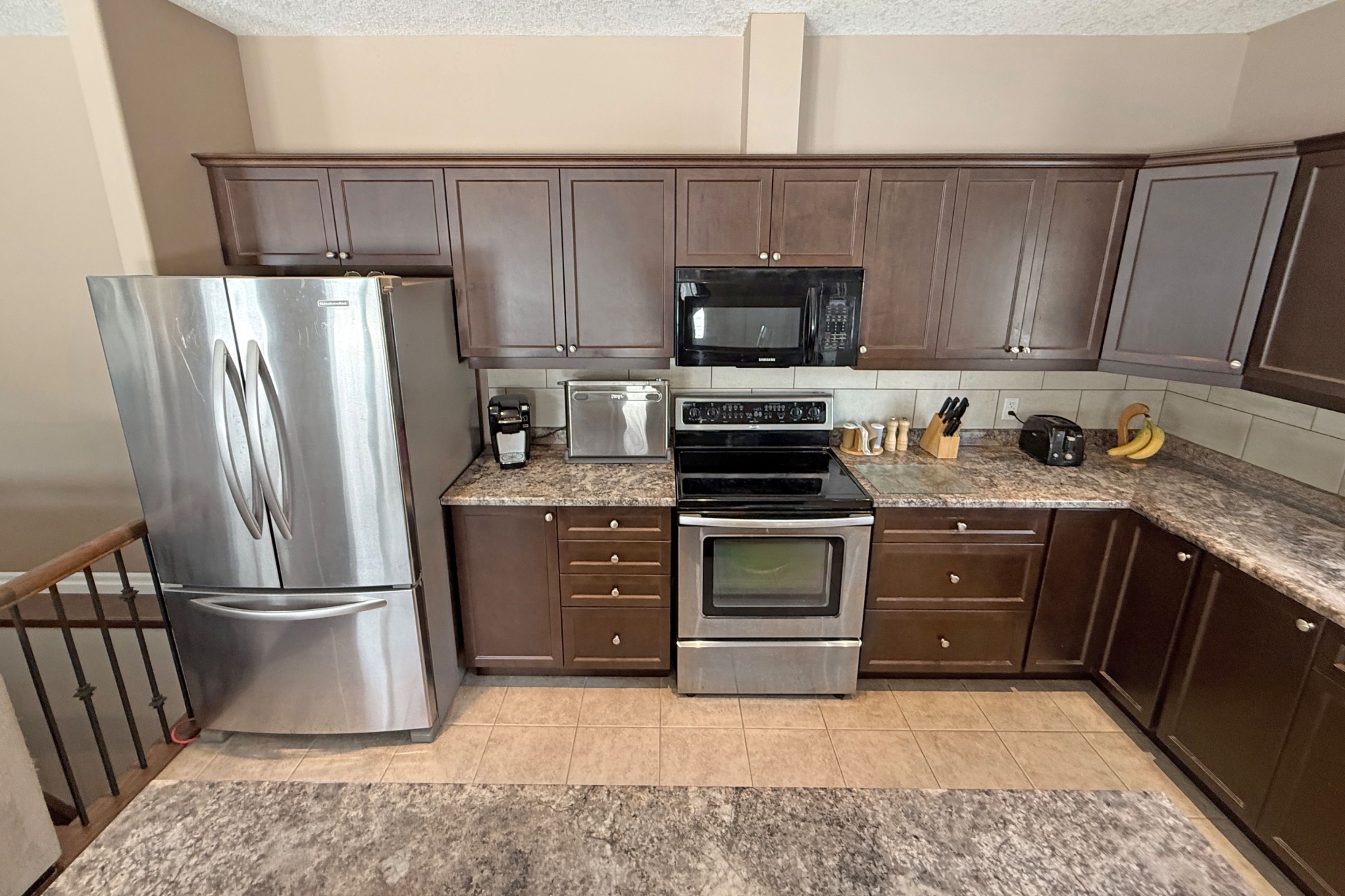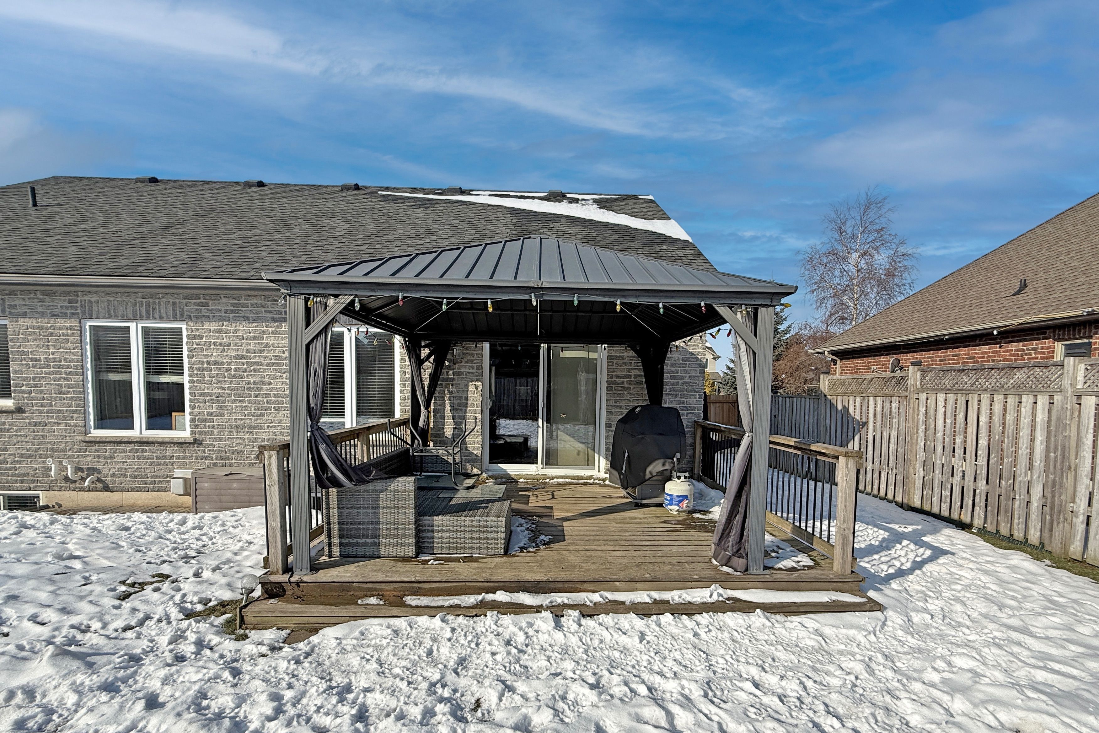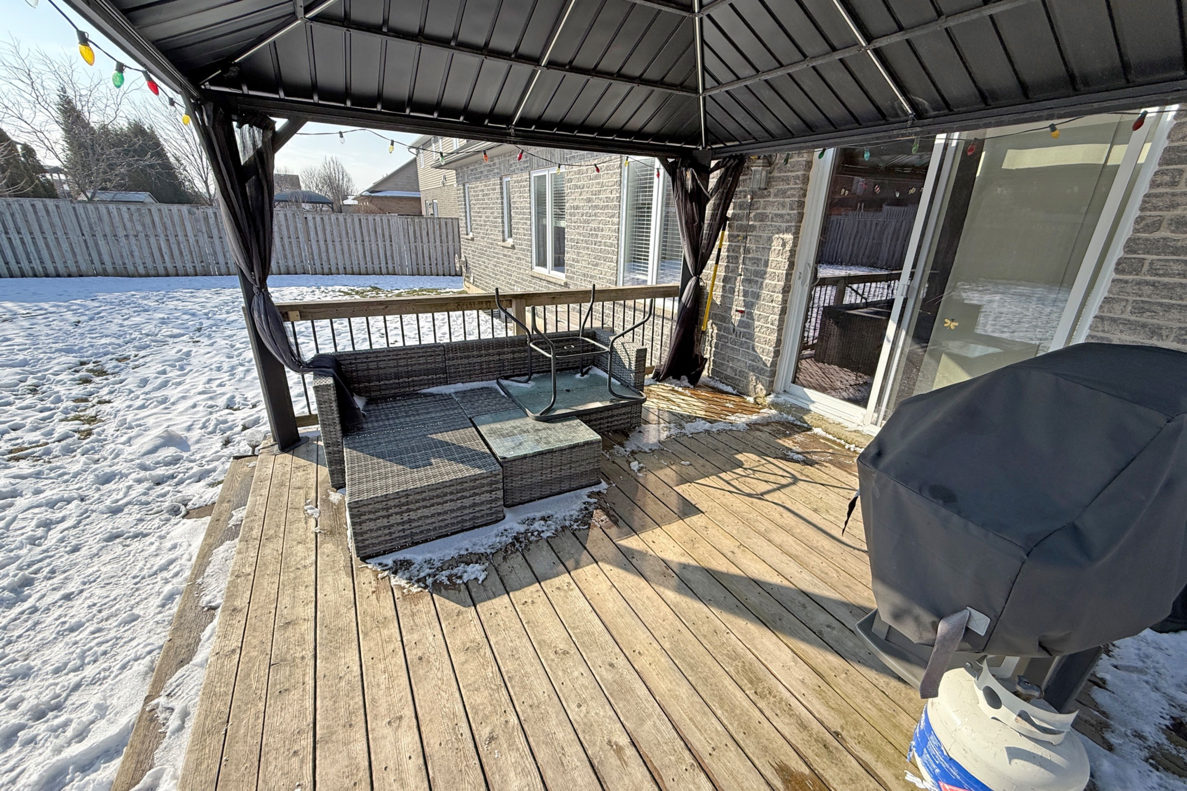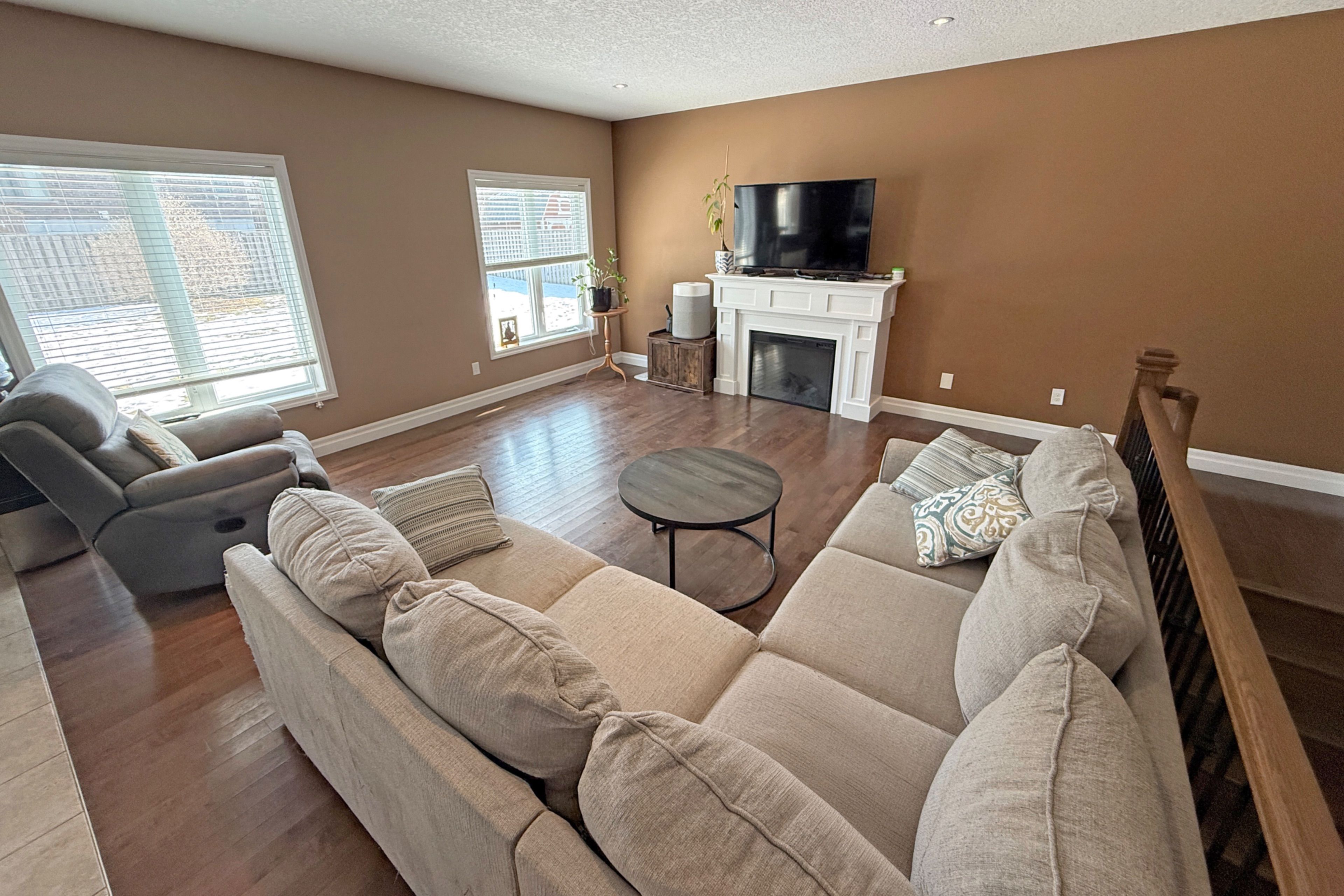 Welcome home to mount elgin! This spacious 4-bedroom bungalow offers the space and features you've been looking for. A large foyer leads to the bright, open-concept living area at the rear of the home, where sun-filled living and dining spaces overlook the backyard and flow into the kitchen-perfect for entertaining-with an oversized island and electric fireplace adding warmth and function. The primary suite includes a walk-in closet and 3-piece ensuite, while a second bedroom or office with a large front window and an additional full bath complete the main level. Downstairs, you'll find a separate living area featuring a family room with gas fireplace, a spacious third bedroom, a 3-piece bath, and a fourth bedroom, offering excellent in-law suite potential. The fully fenced yard includes a deck off the dining area and a garden shed, while the concrete driveway provides parking for six vehicles plus two in the garage. A full generac natural gas generator ensures reliable power, and all major appliances are included.