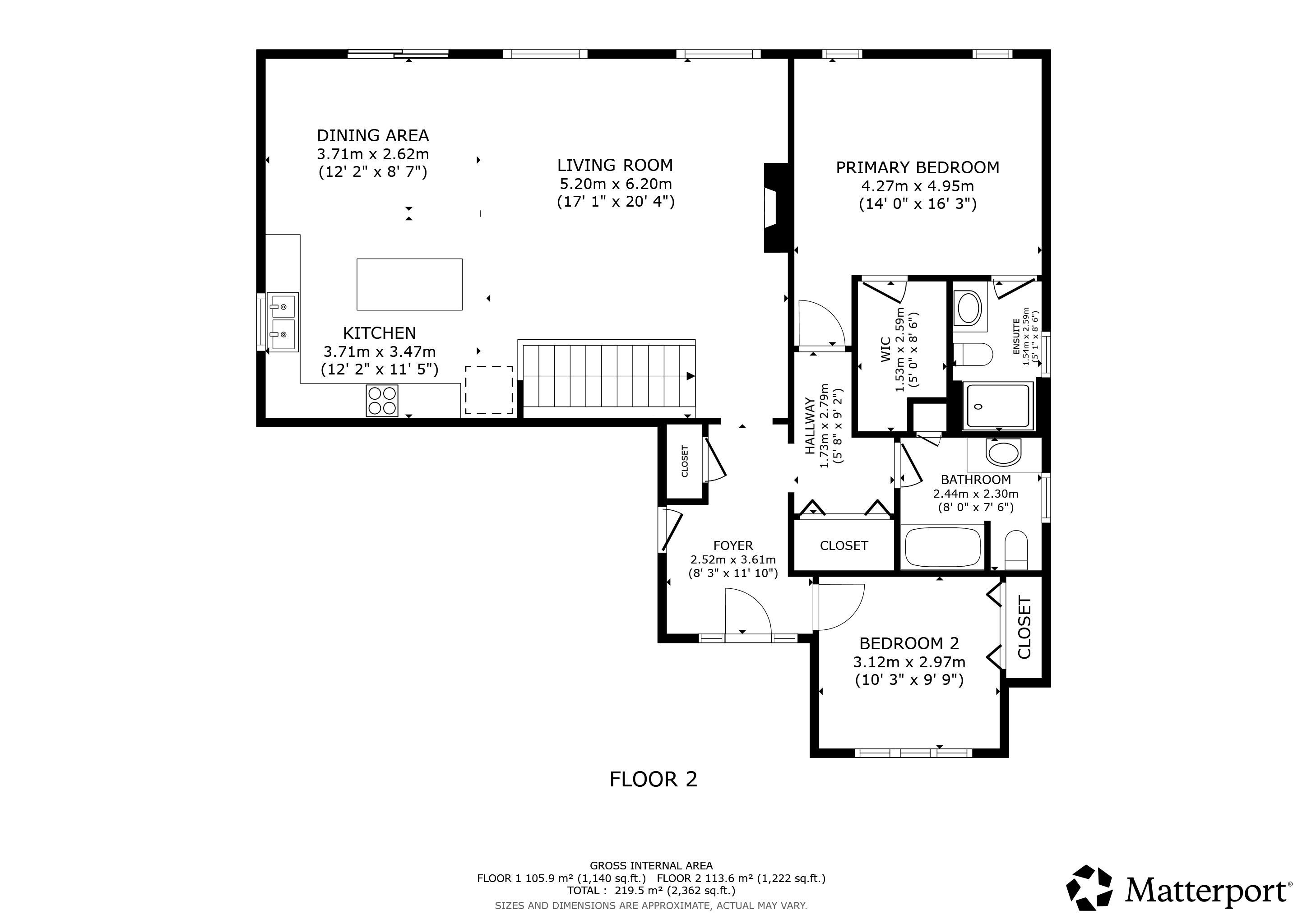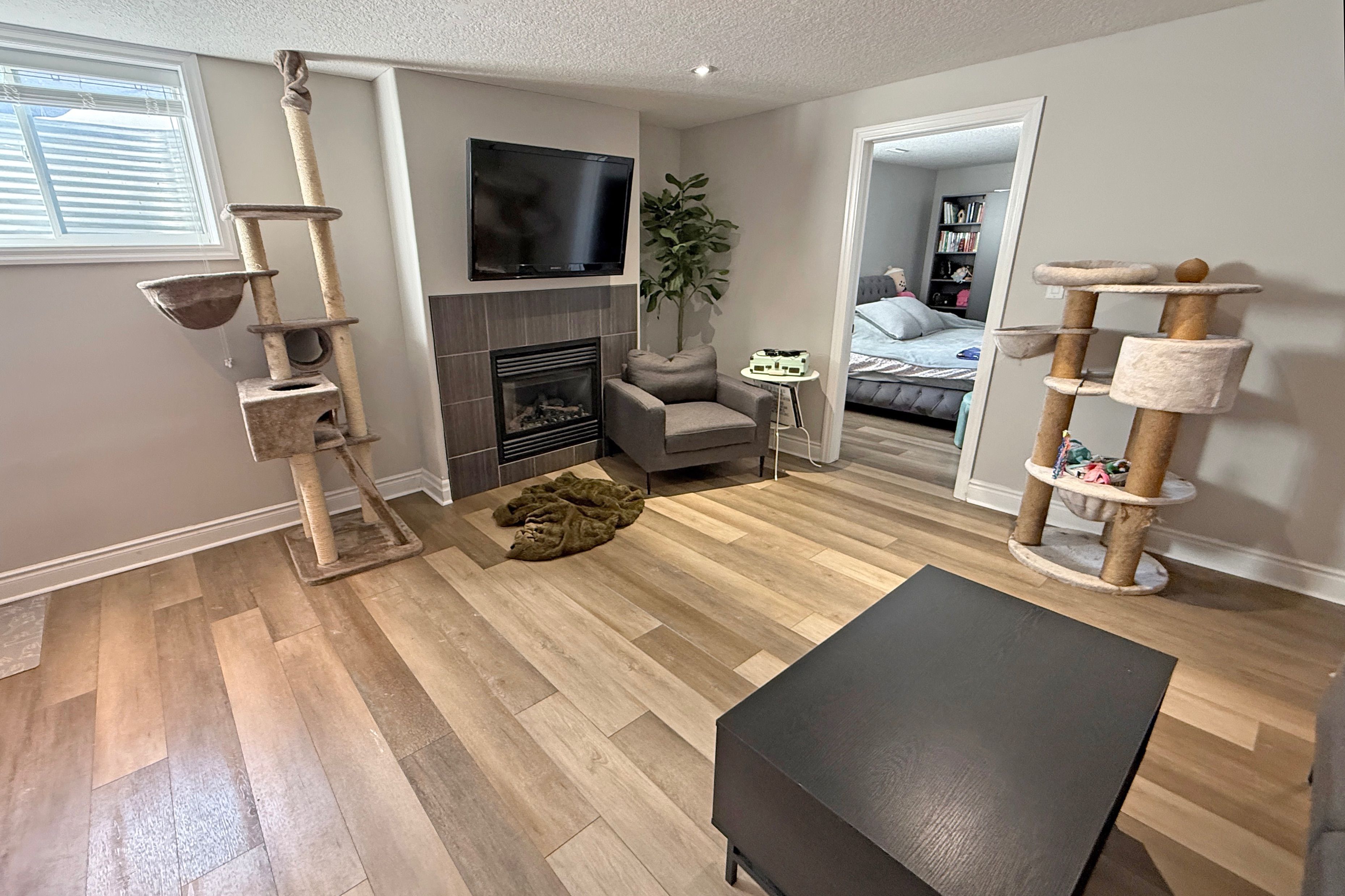 • Oversized kitchen island and electric fireplace for entertaining ease.
