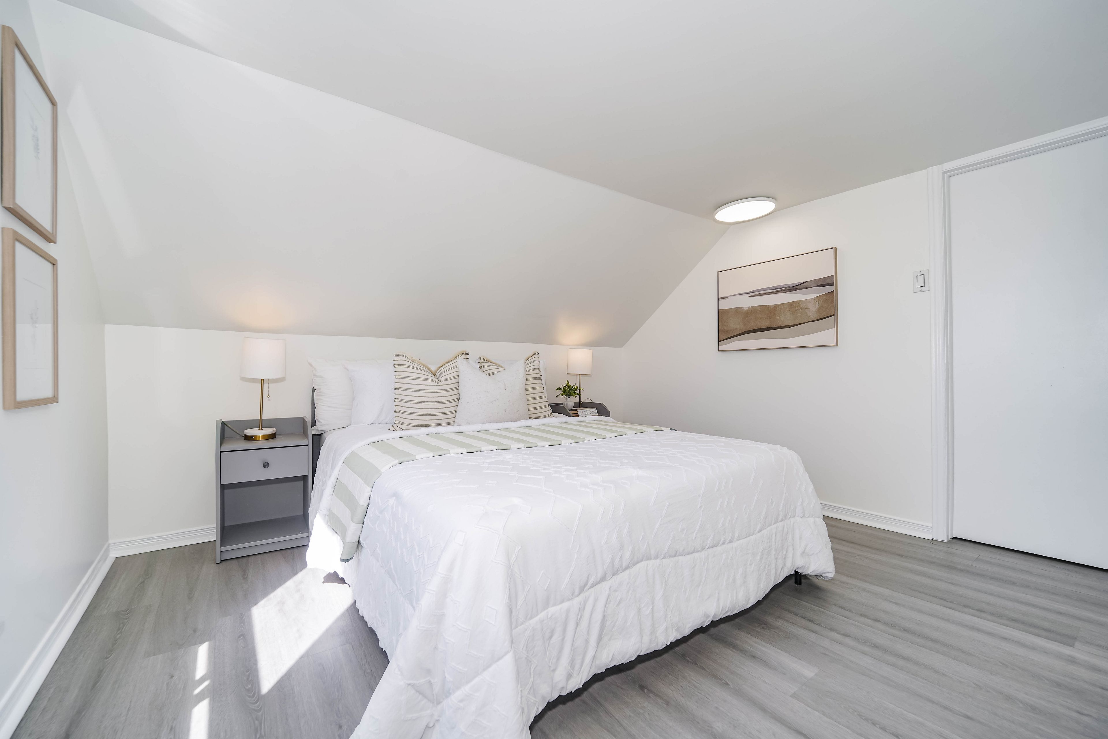 Entire freshly paint and newly renovated two bedrooms can be potentially converted to three bedrooms in a desired area! Rental term can be flexible with long or short term. Conveniently located at junction area and fully furnished two-bedroom upper-level unit with a private separate entrance, offering comfort and privacy in a family friendly toronto neighborhood. Ideally located just steps from the mount dennis transit hub, with convenient access to the eglinton lrt, up express, ttc buses, and go transit's kitchener line, this home offers unmatched connectivity. This bright and spacious home comes move-in ready with two sets of queen-size bed, dining table with four chairs, love seat and single sofa with coffee table, and a tv with tv bench. Enjoy the convenience of your own in-unit laundry(no sharing) and share only 65% of utility bills. Situated on a quiet, family-friendly street just steps from parks, this unit is close to ttc bus routes, stockyards mall, shops, banks, restaurants, the junction, high park, and bloor west village. Ideal for young professionals, small families, or newcomers seeking a clean, well-maintained, and fully furnished home in an excellent location. Must see and experience comfortable living in the heart of toronto!