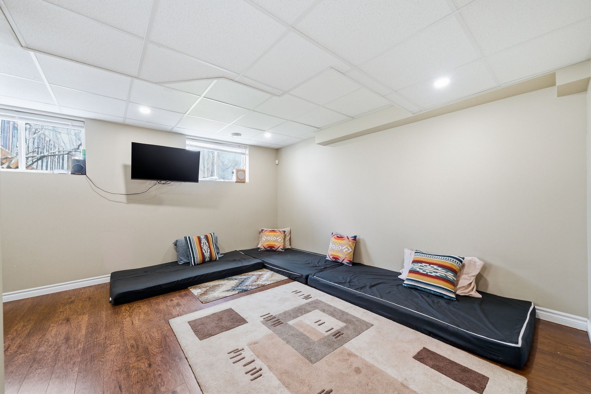 • Finished lower level offers versatile options like movie nights or a home office.