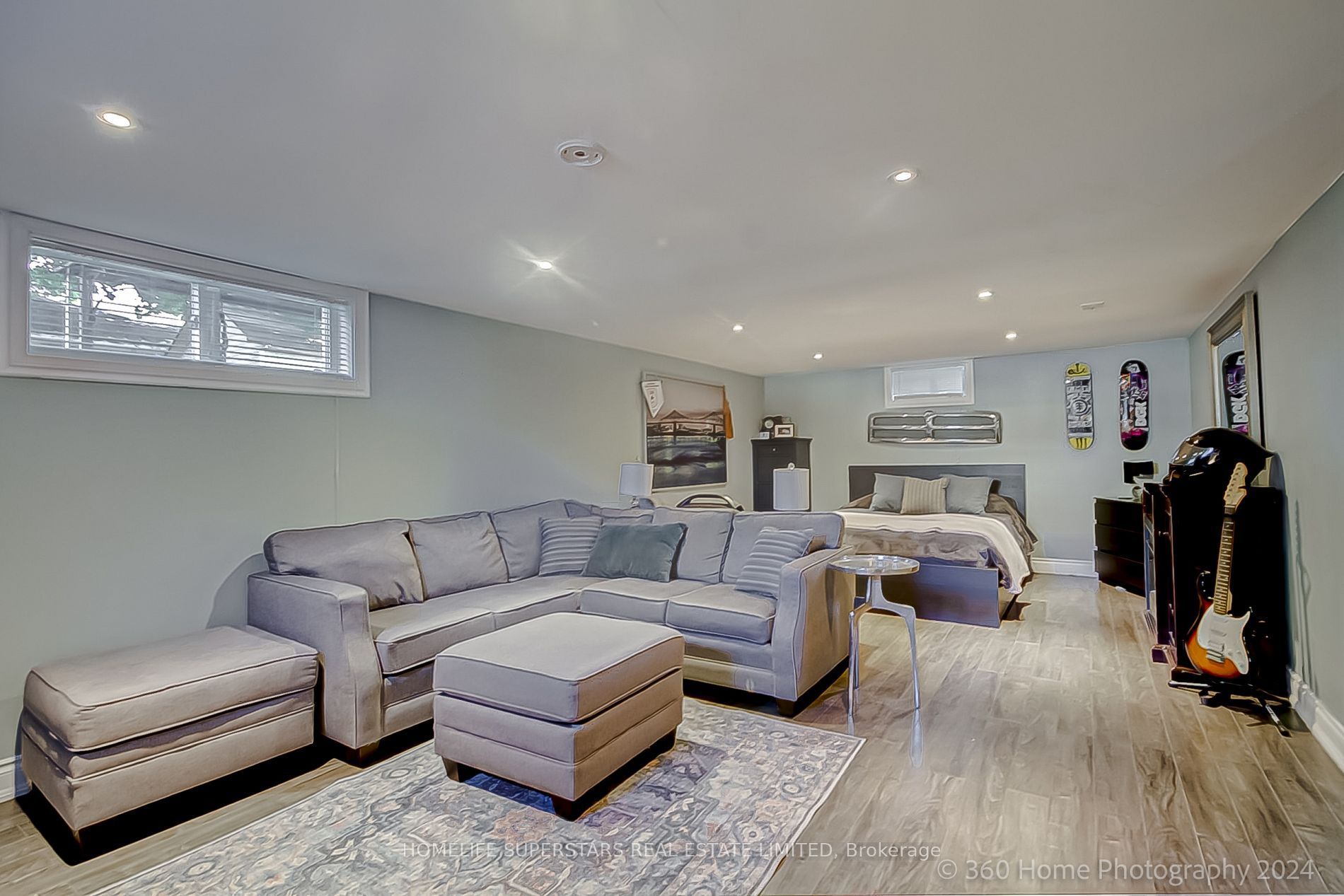 • Finished basement with living room, bedroom, and bath.