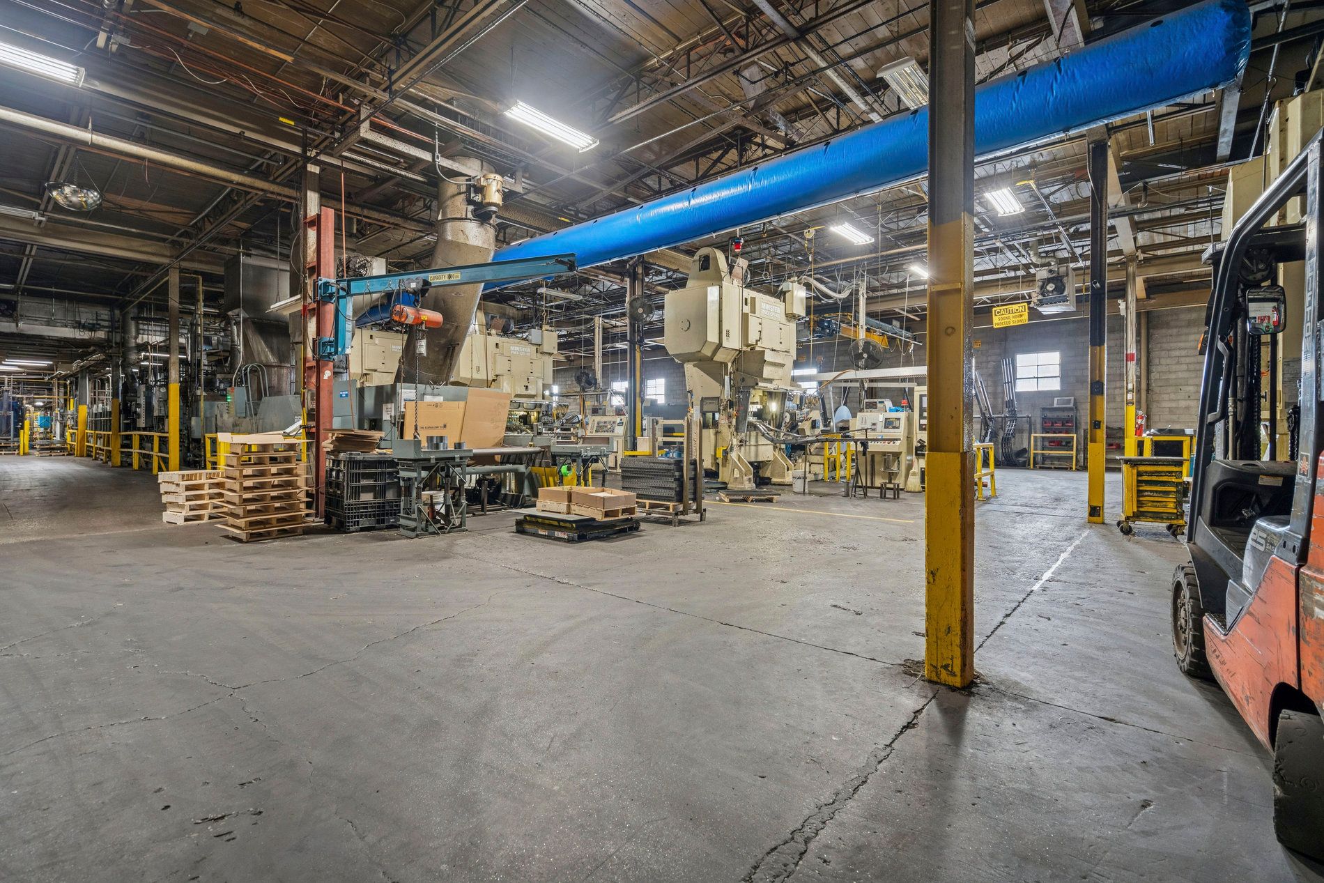 Opportunity to acqiure a 87,395 sf manufacturing facility situated on 4. 15 acres. Features include 18' clear heights, 1,600 amps, and two cranes (5-ton and 2-ton). The building is fully sprinklered and includes a larger power coating and painting booth area. Ideal for end-users seeking a well-serviced manufacturing facility. Structural mezzanine area in addition.