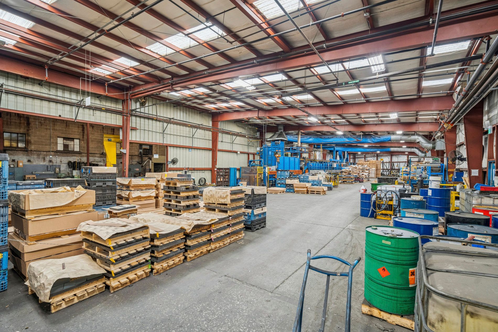 • Fully sprinklered building with a large coating and painting booth area.