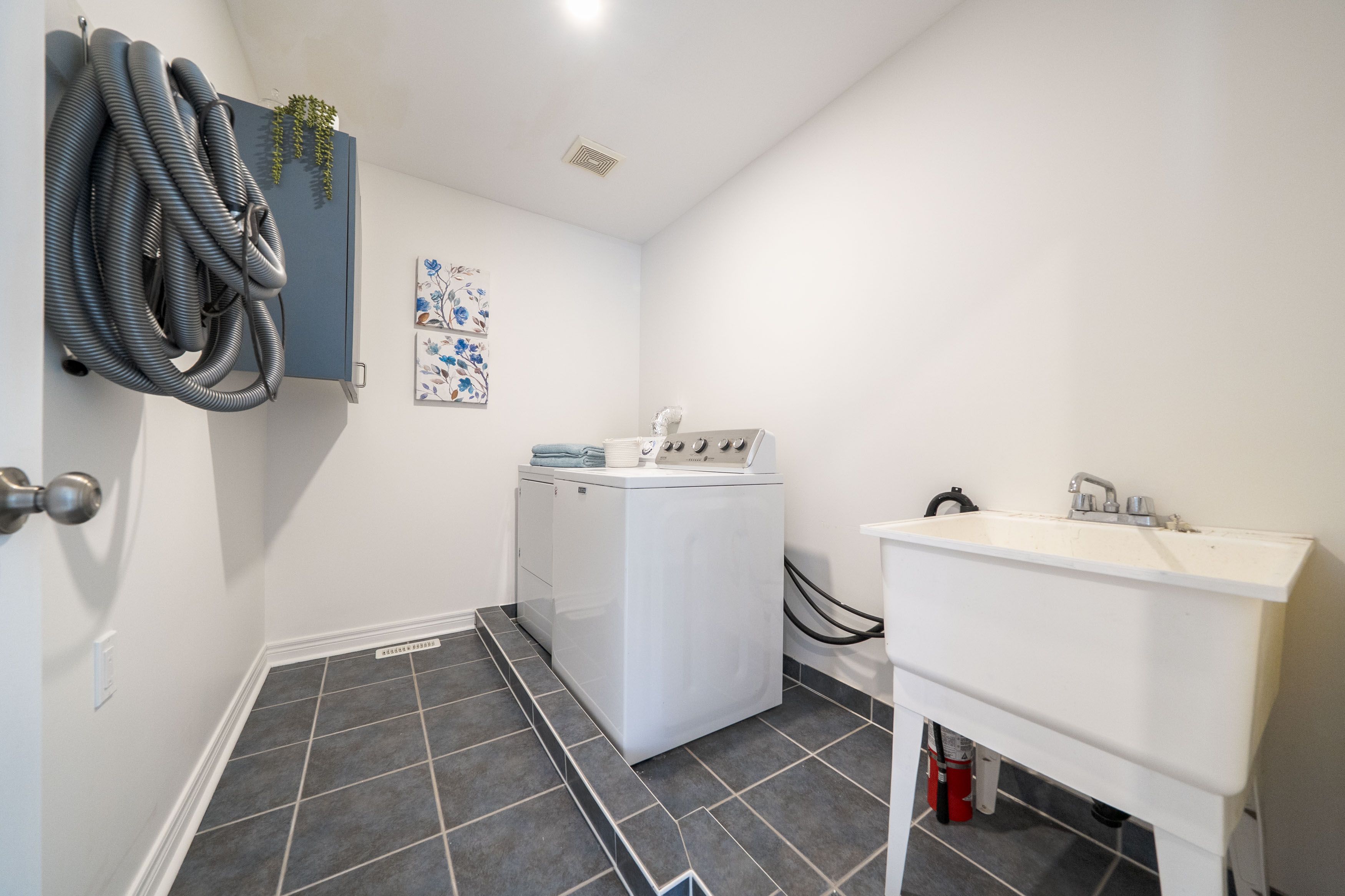 • Convenient upper-level laundry room and finished walk-out basement for extra space.