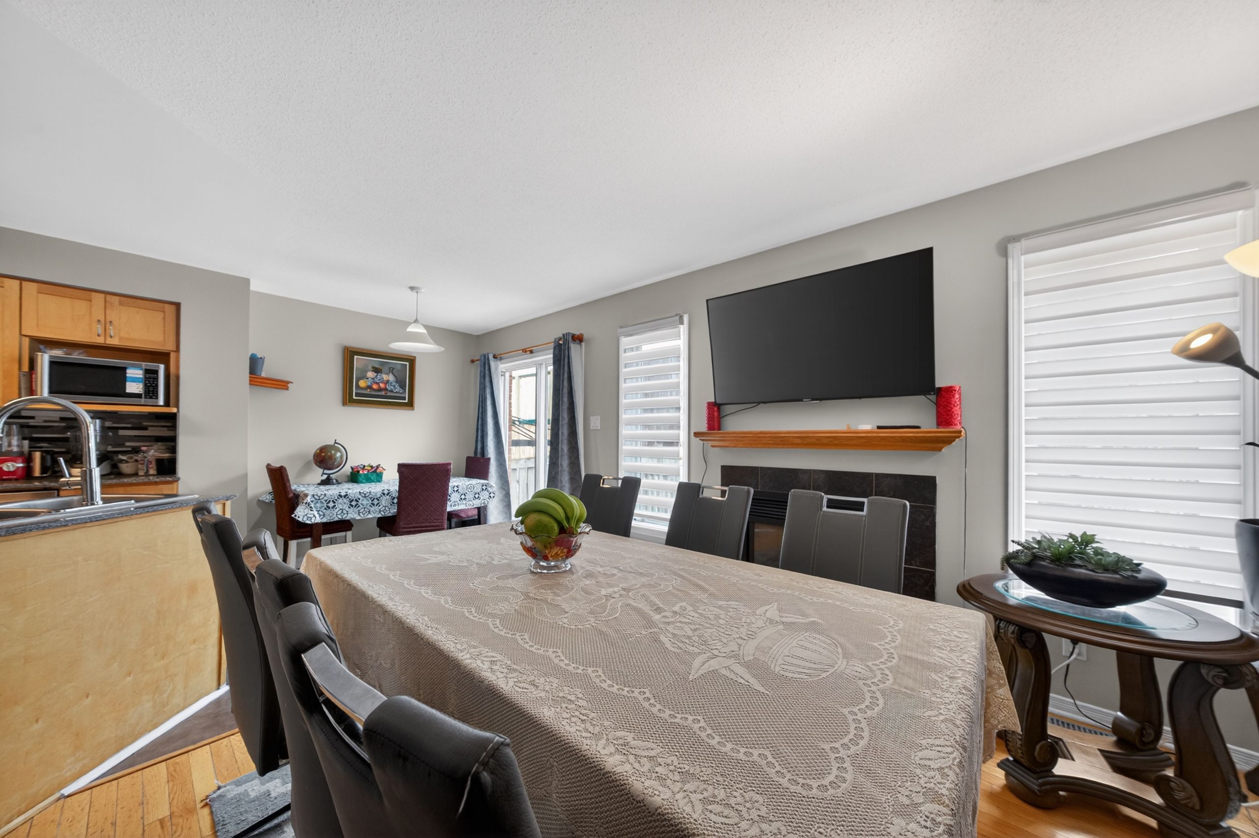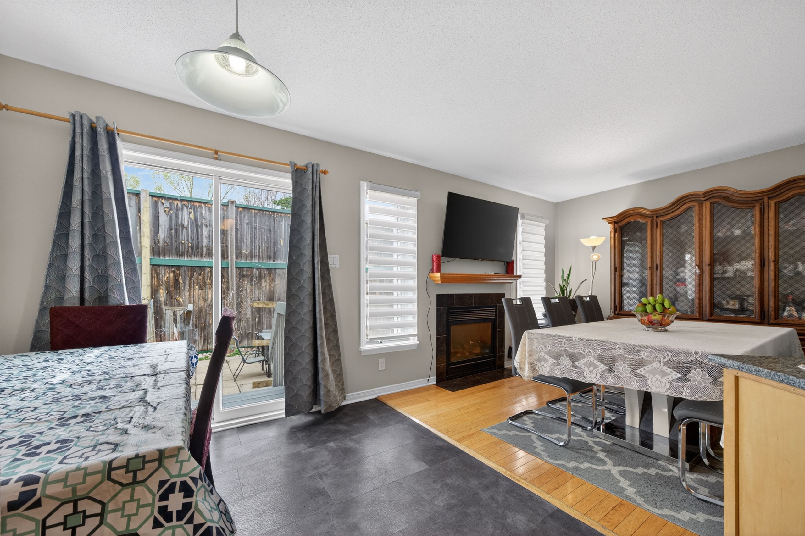 • Cozy family room featuring a gas fireplace for warmth.
