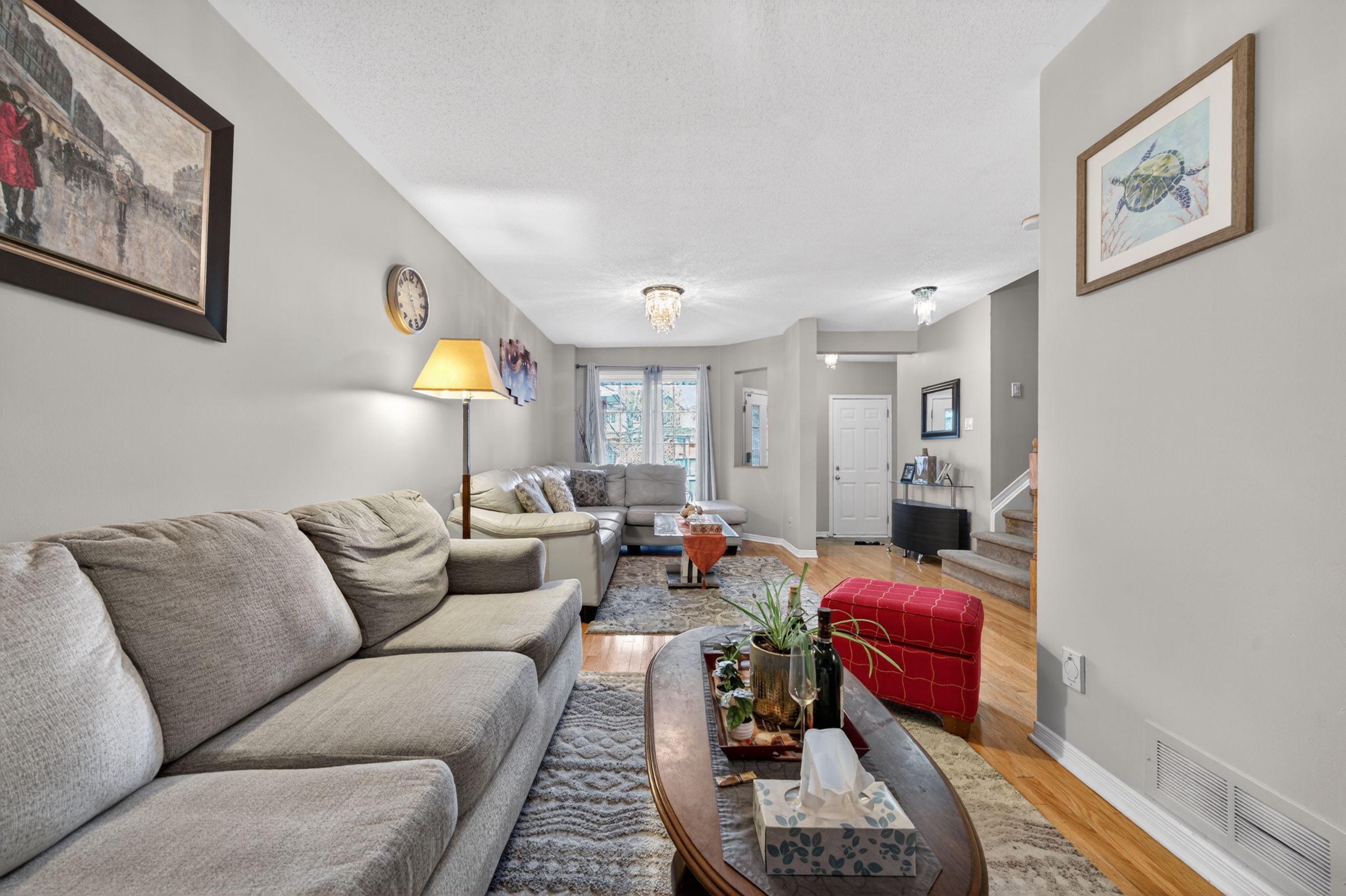 Beautifully upgraded richcraft townhome with no rear neighbors, offering privacy and comfort in a family-friendly setting. This move in ready home features hardwood flooring on the main level, a renovated kitchen with granite countertops and a stylish backsplash, and a cozy family room with a gas fireplace. The second floor offers three spacious bedrooms, including a primary suite with a walk-in closet and private ensuite. The finished basement provides additional living space and storage. Enjoy a fully fenced and landscaped backyard, plus parking for up to four vehicles with an interlock front walkway. A perfect home for families or first time buyers!