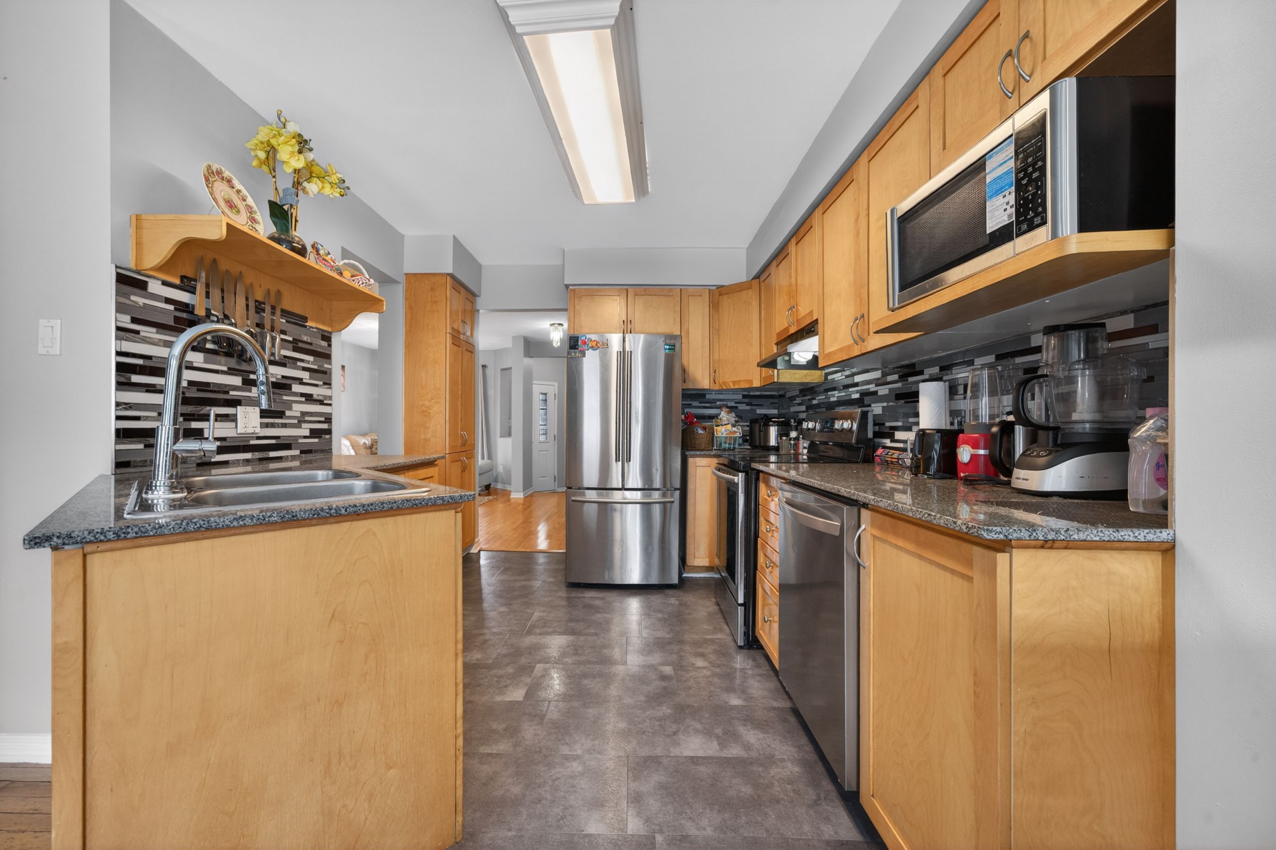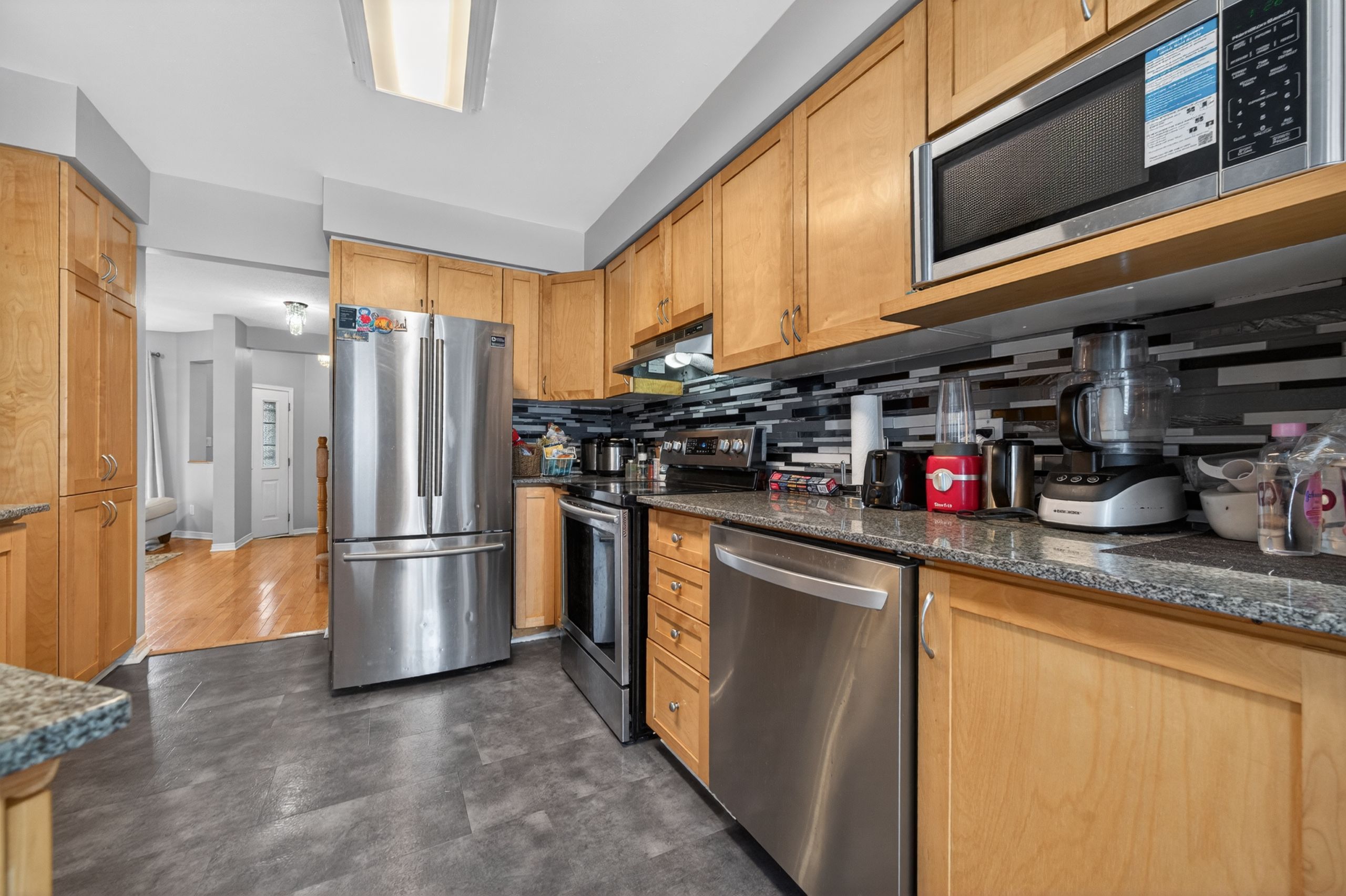 • Hardwood flooring and renovated kitchen with granite countertops.