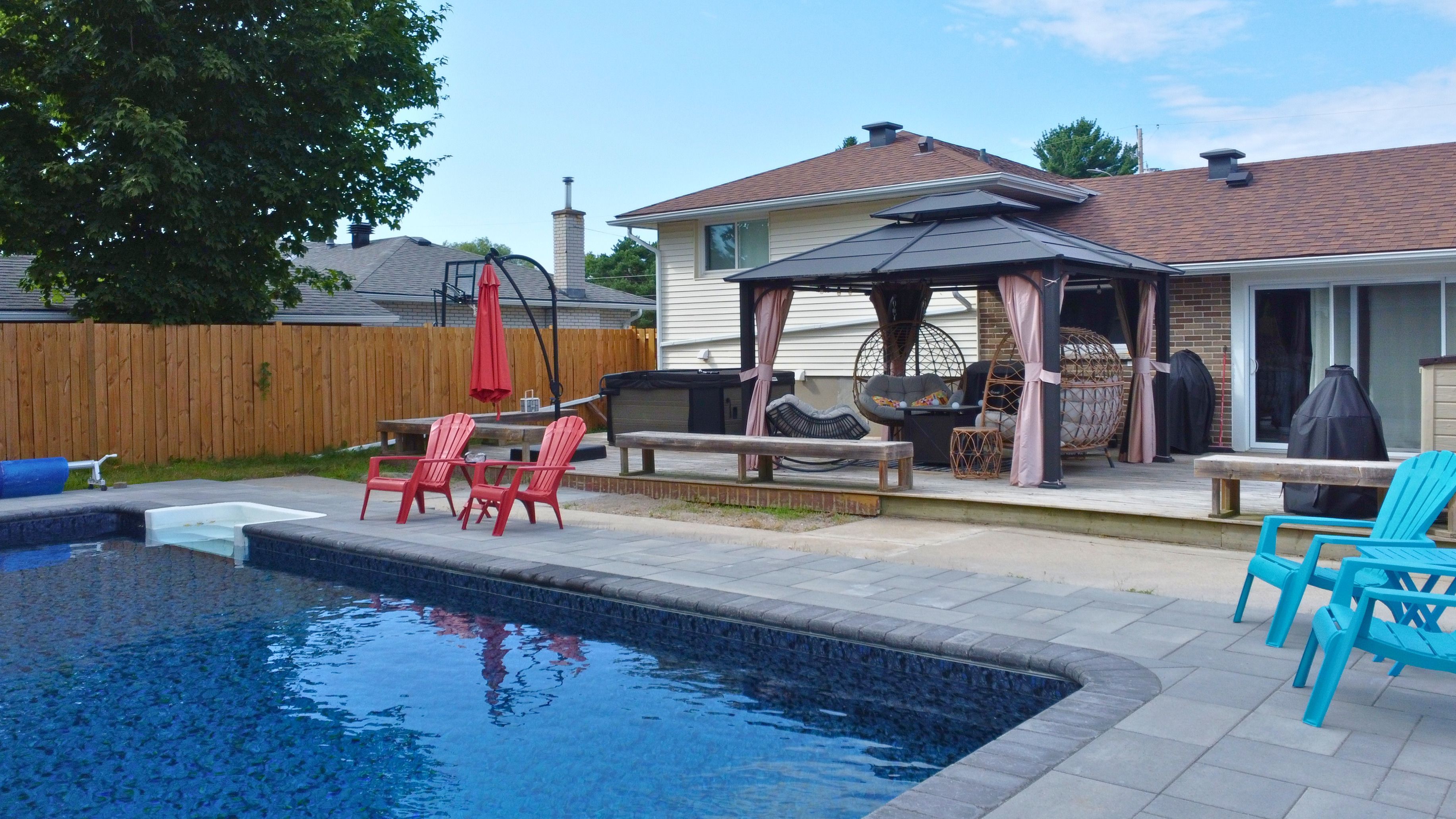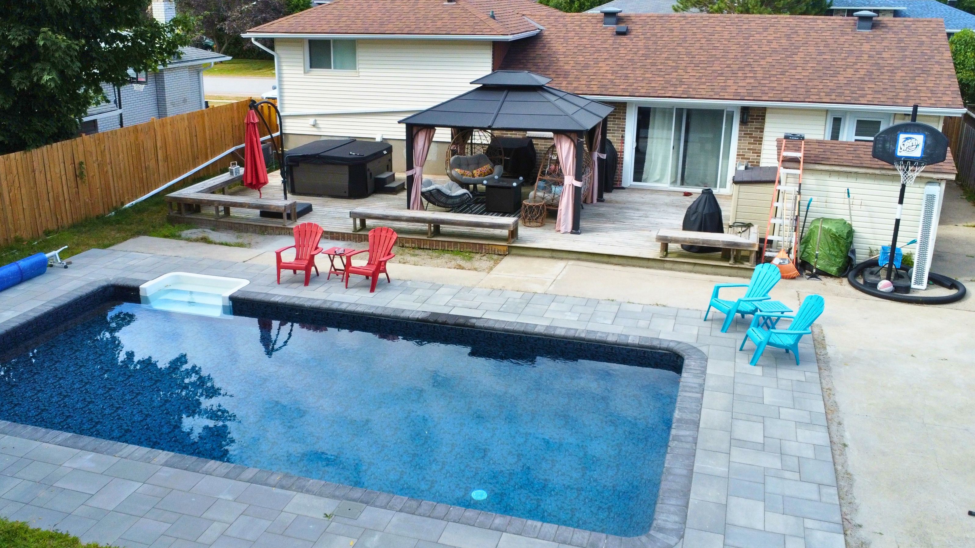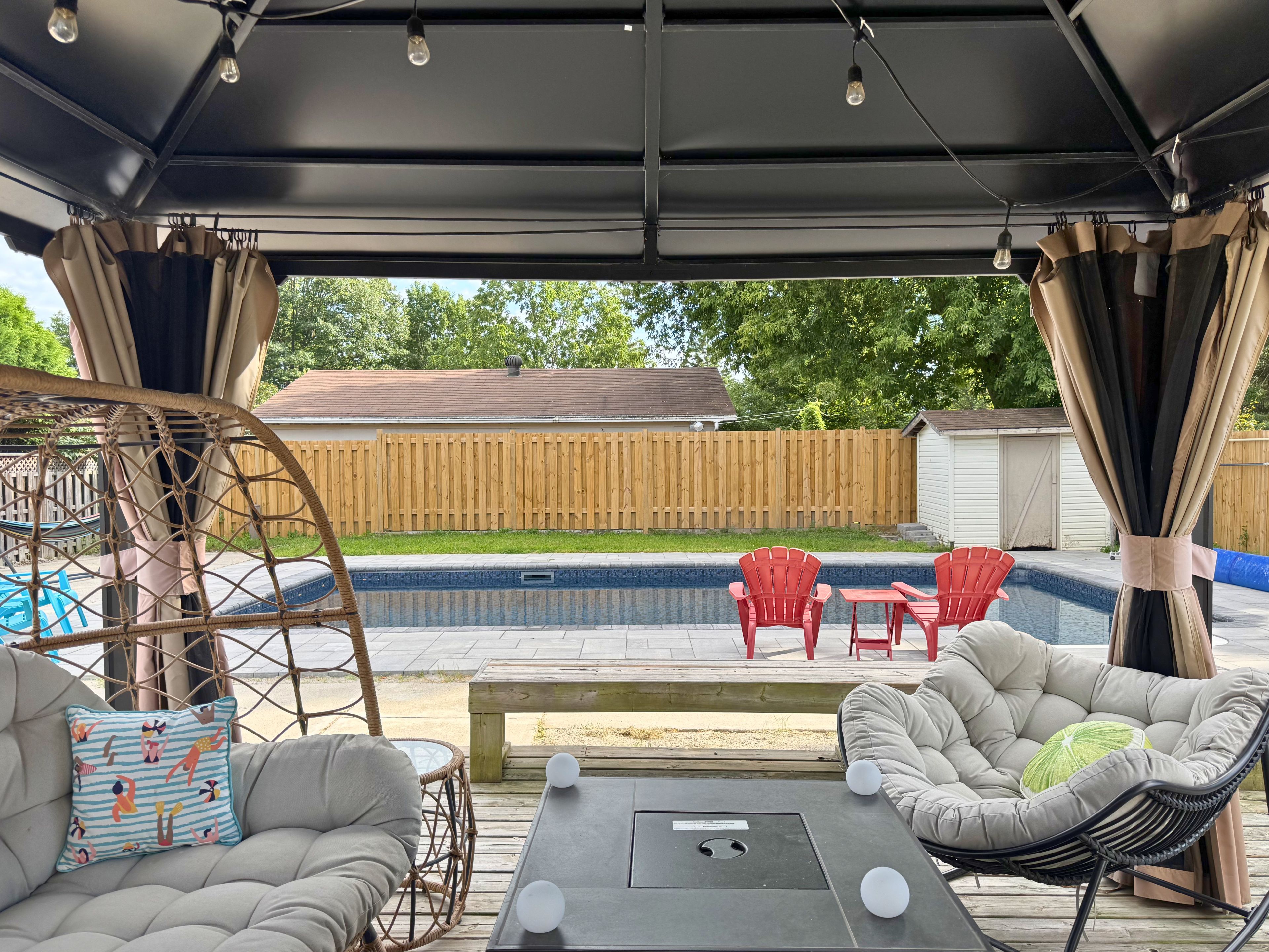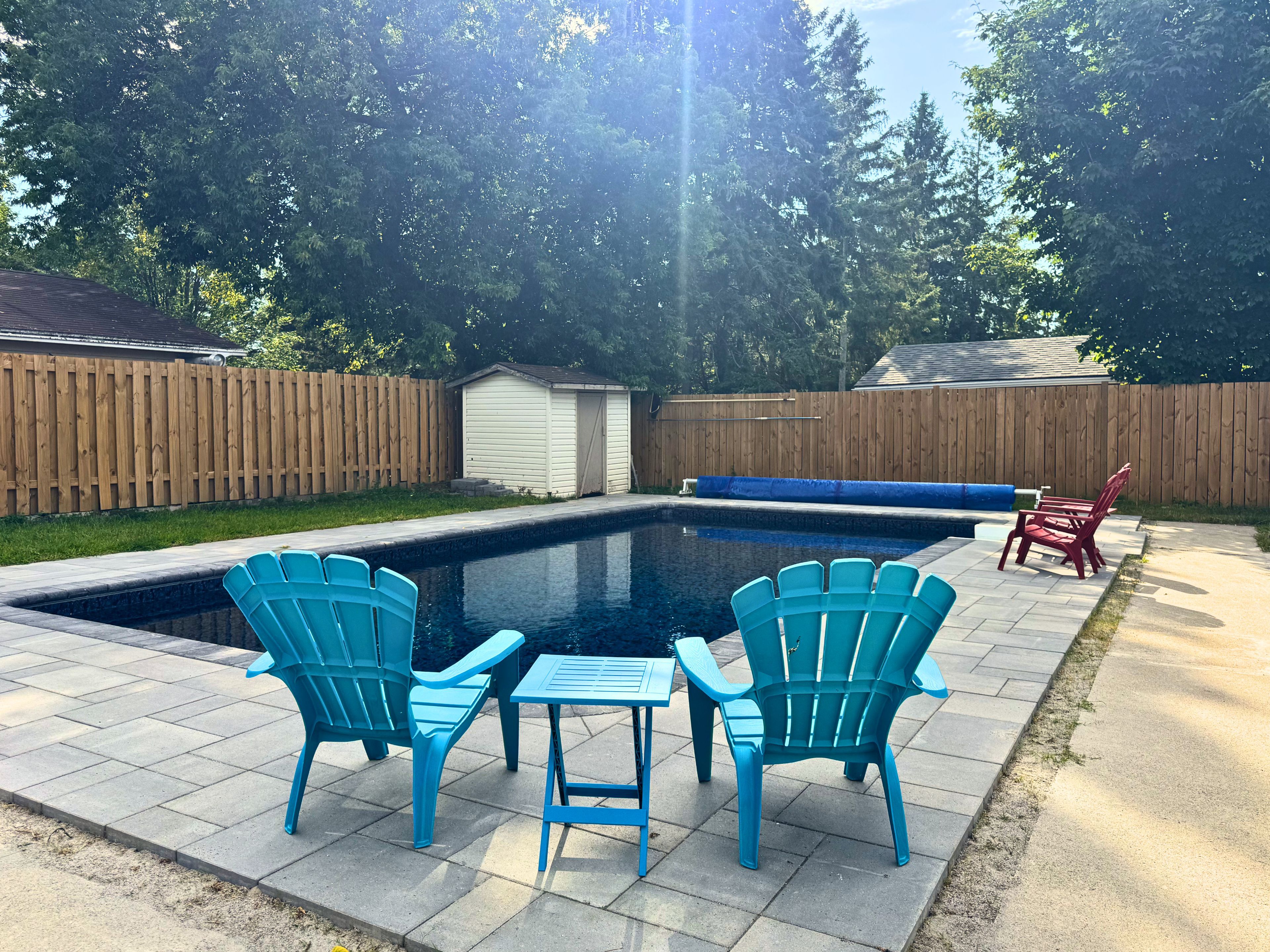 • Private backyard oasis featuring a pool, perfect for summer relaxation.