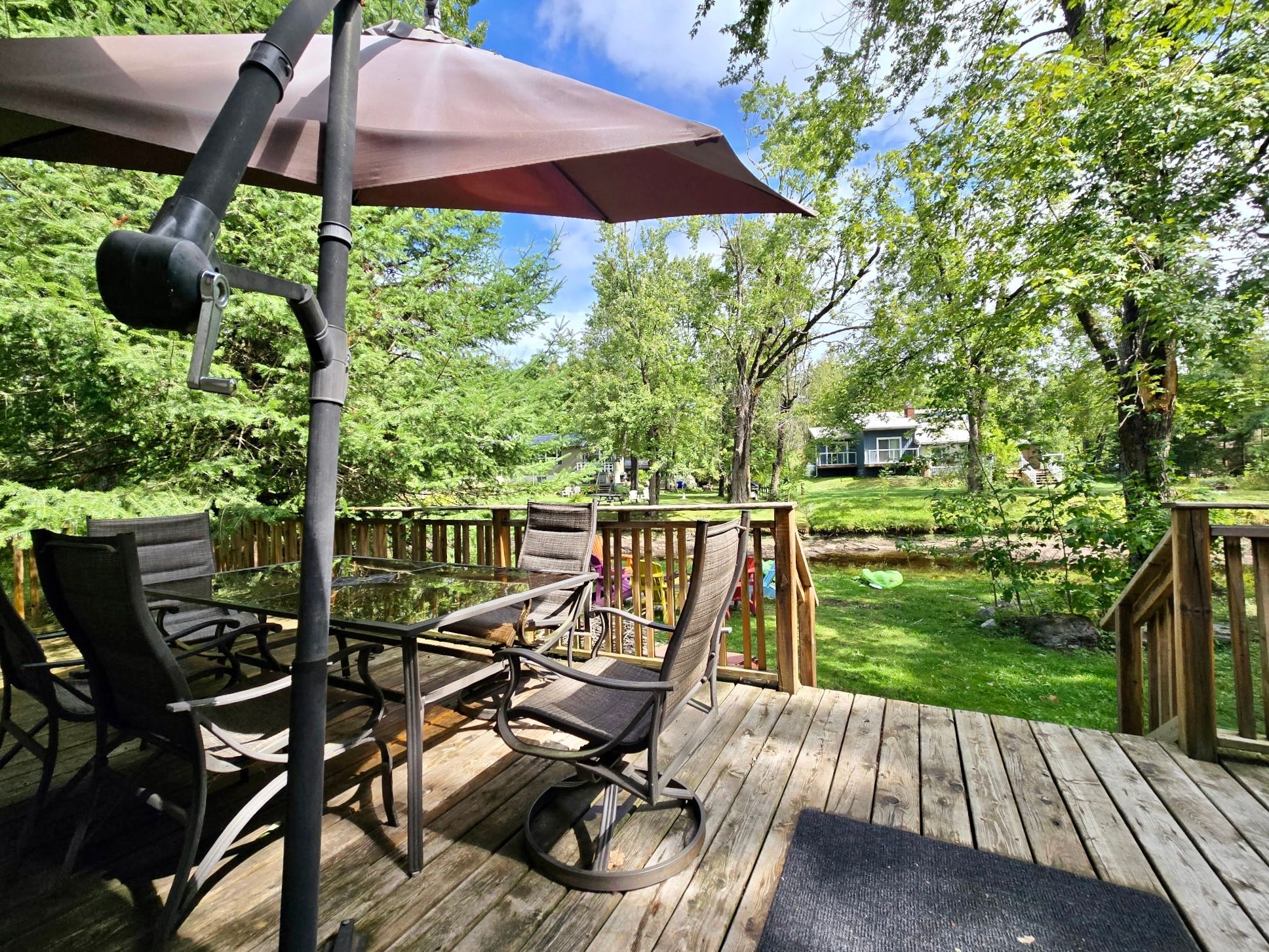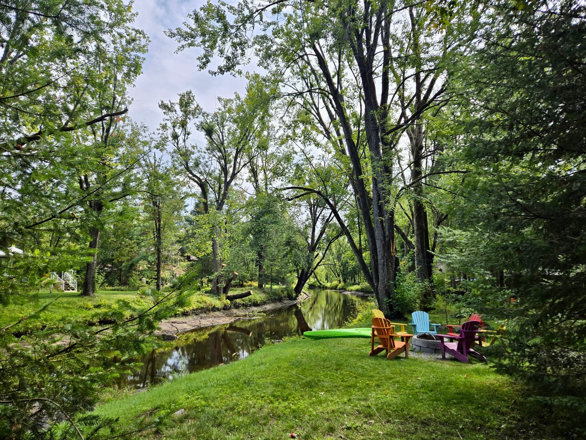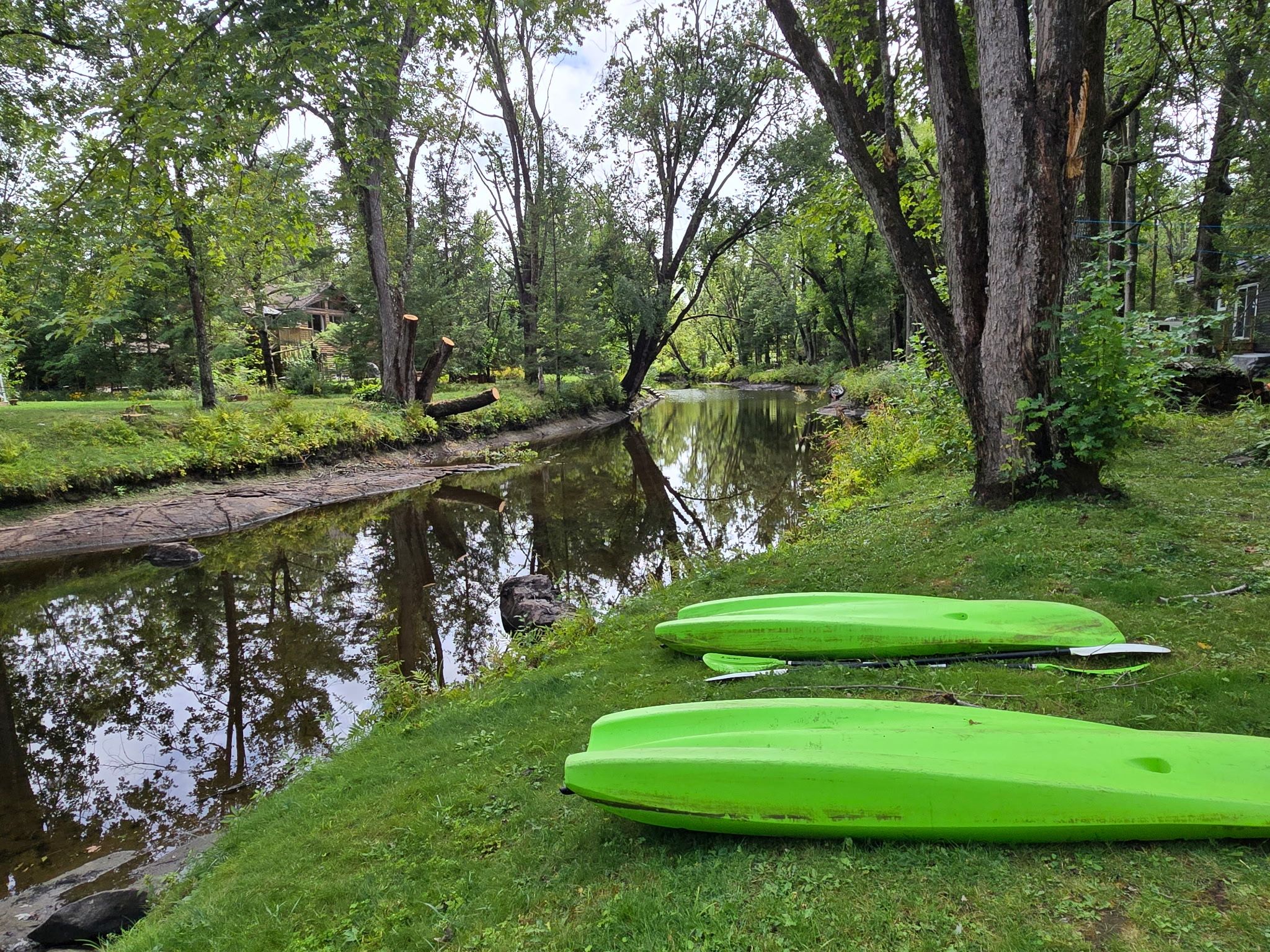• Direct river frontage for kayaking, swimming, and fishing.
