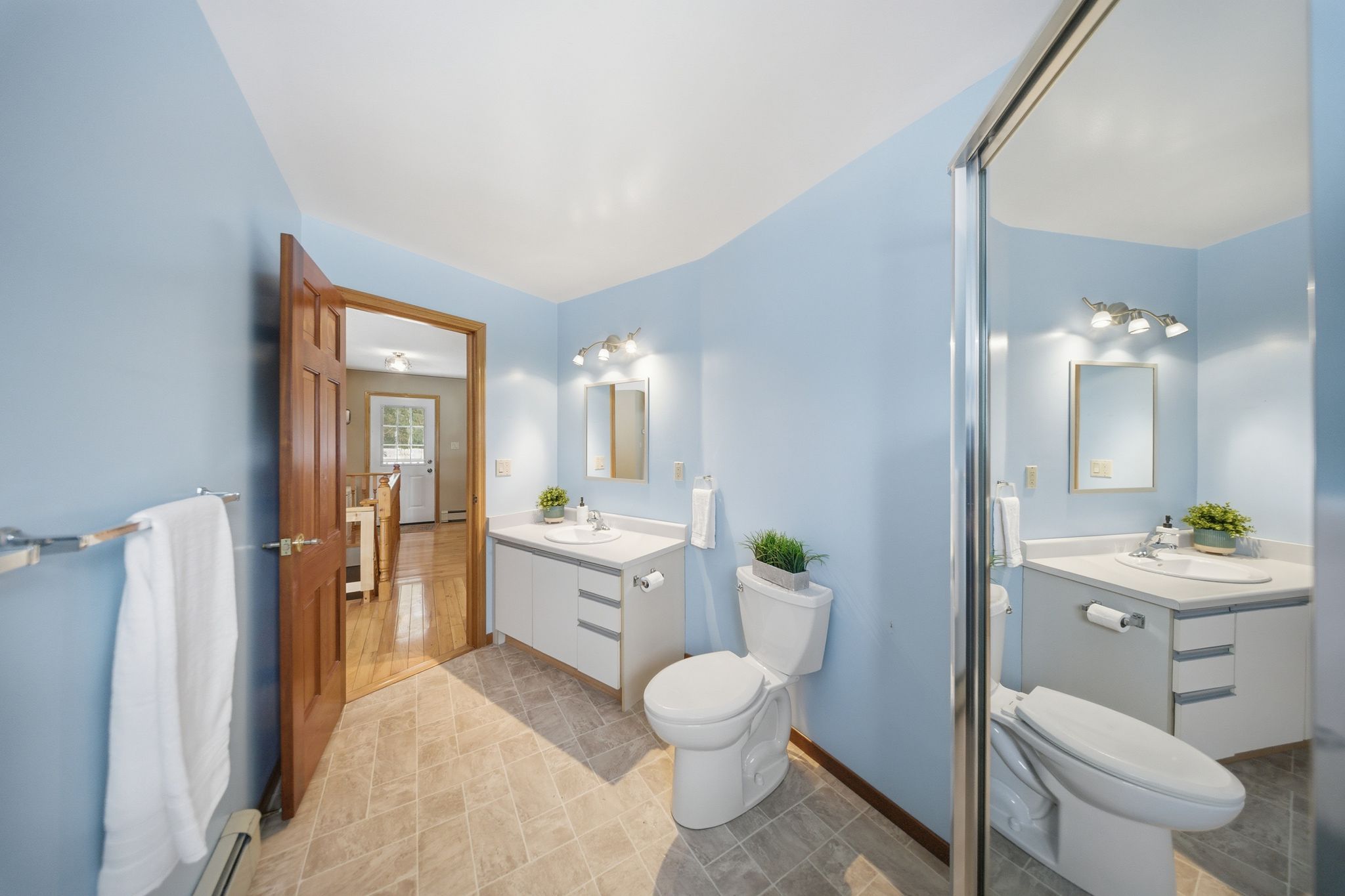 • Attached double car garage and spacious mudroom for convenience.