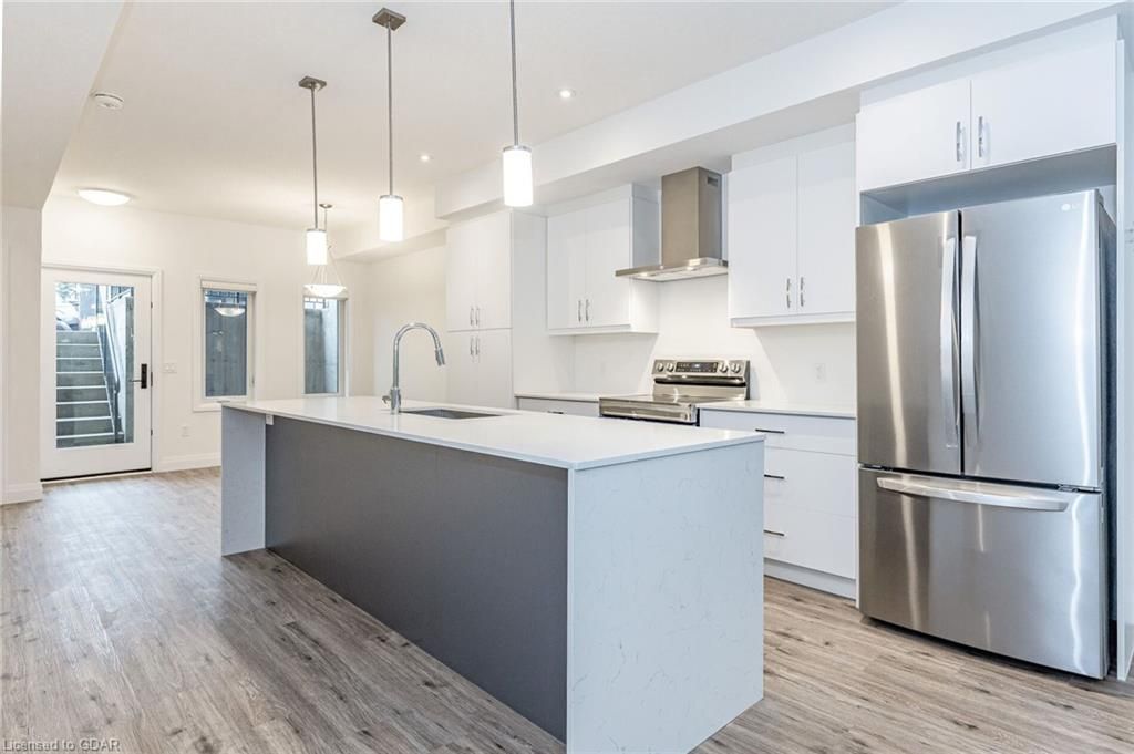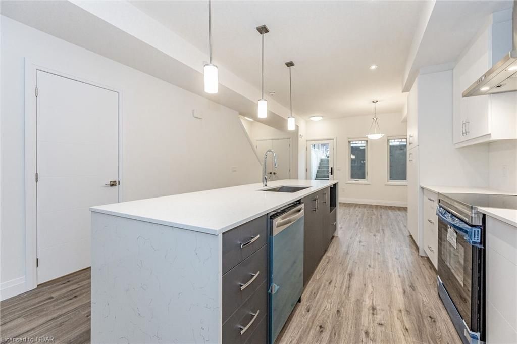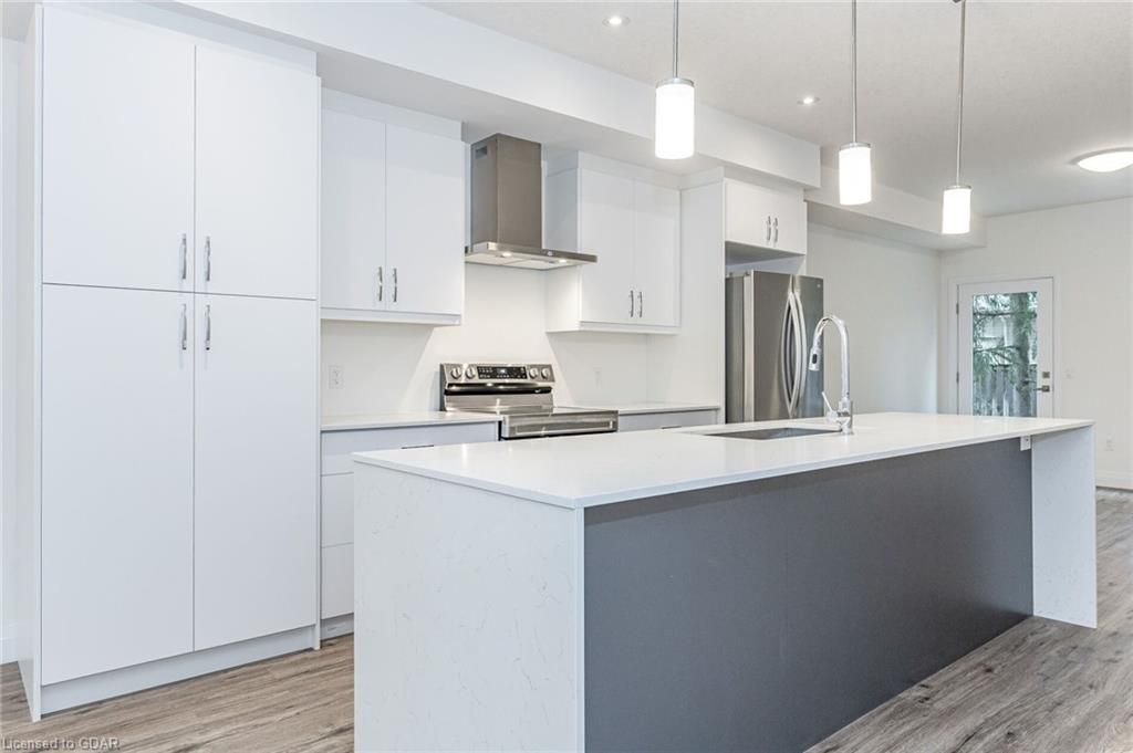 Location ! Location, location ! Walking distance to all south end amenities, close to multiple parks, schools and easy access to hwy 6 and the 401! Only 2. 5 years old luxury pulse townhouse situated in guelph's south end - over $33,000 in upgrades have been added to this gorgeous townhouse! Enjoy an open concept floorplan filled with high quality finishes throughout - 9' ceilings, premium appliance package, oversized kitchen island and more! Offering 1427 sqf total square feet, the main floor is bright and spacious, boasting a beautifully finished eat-in kitchen with high end stainless steel appliances, pendant lighting, waterfall island and plenty of cupboard space. A spacious living room with large windows, a 2pc bathroom and walkout to the backyard space . Upstairs consists in 3 large bedrooms, a 3piece bathroom and a master bedroom with ensuite for your convenience. Additional features include low maintenance fees, brand new stacked washer/dryer combo and 1 parking space! . Property is tenanted for $3200 a month plus utilities and tenants are willing to stay . Book your showing as soon as possible