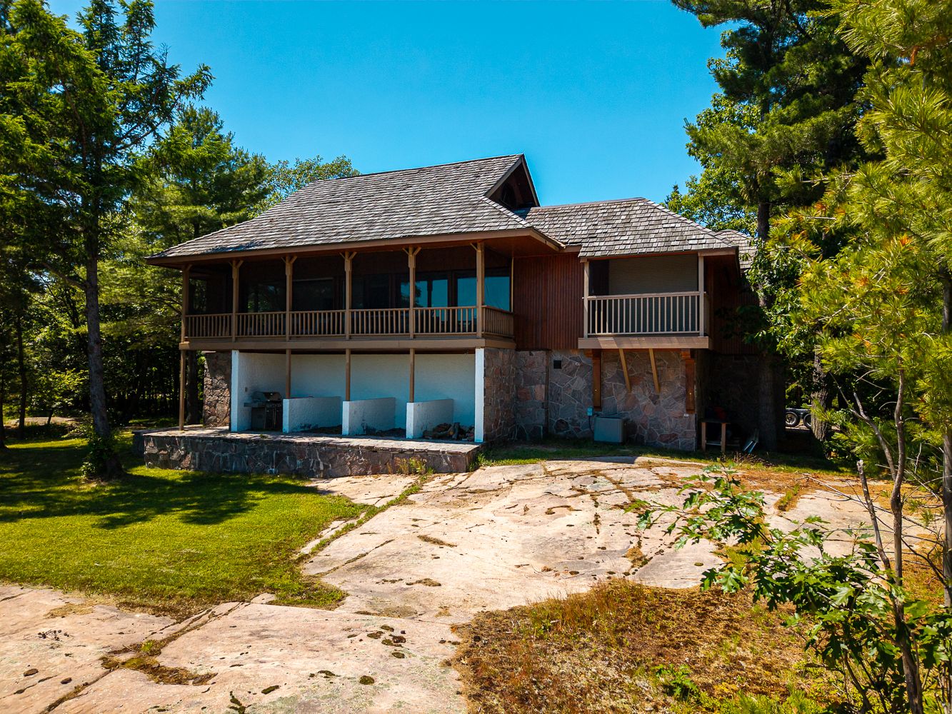 This is the kind of georgian bay property people wait years to find. Set on over 2 acres of wooded land directly beside the protected forest and pristine shoreline of killbear provincial park, this private retreat offers 196 feet of south-facing shoreline, a natural sand beach, and a gently sloping waterfront that is easy to enjoy . The fully winterized cottage has been nicely modernized with updated bathrooms and a new kitchen, while still keeping the warm cottage feel you want on the bay. Vaulted ceilings, hardwood floors, and a screened-in porch all add to the easy, relaxed character of the main cottage. Closer to the water, two separate waterside cabins create the feel of a true family compound. One has recently been updated with a beautiful cottage finish, a wood-burning fireplace, a new bathroom, vaulted ceilings, and outstanding water views. The second is ready for your finishing touches and already includes a cedar-lined sauna, bathroom, and plenty of storage. With privacy, southern exposure, usable shoreline, and a classic georgian bay setting beside killbear, this is a rare opportunity to create lasting family memories in one of the area's most sought-after locations.