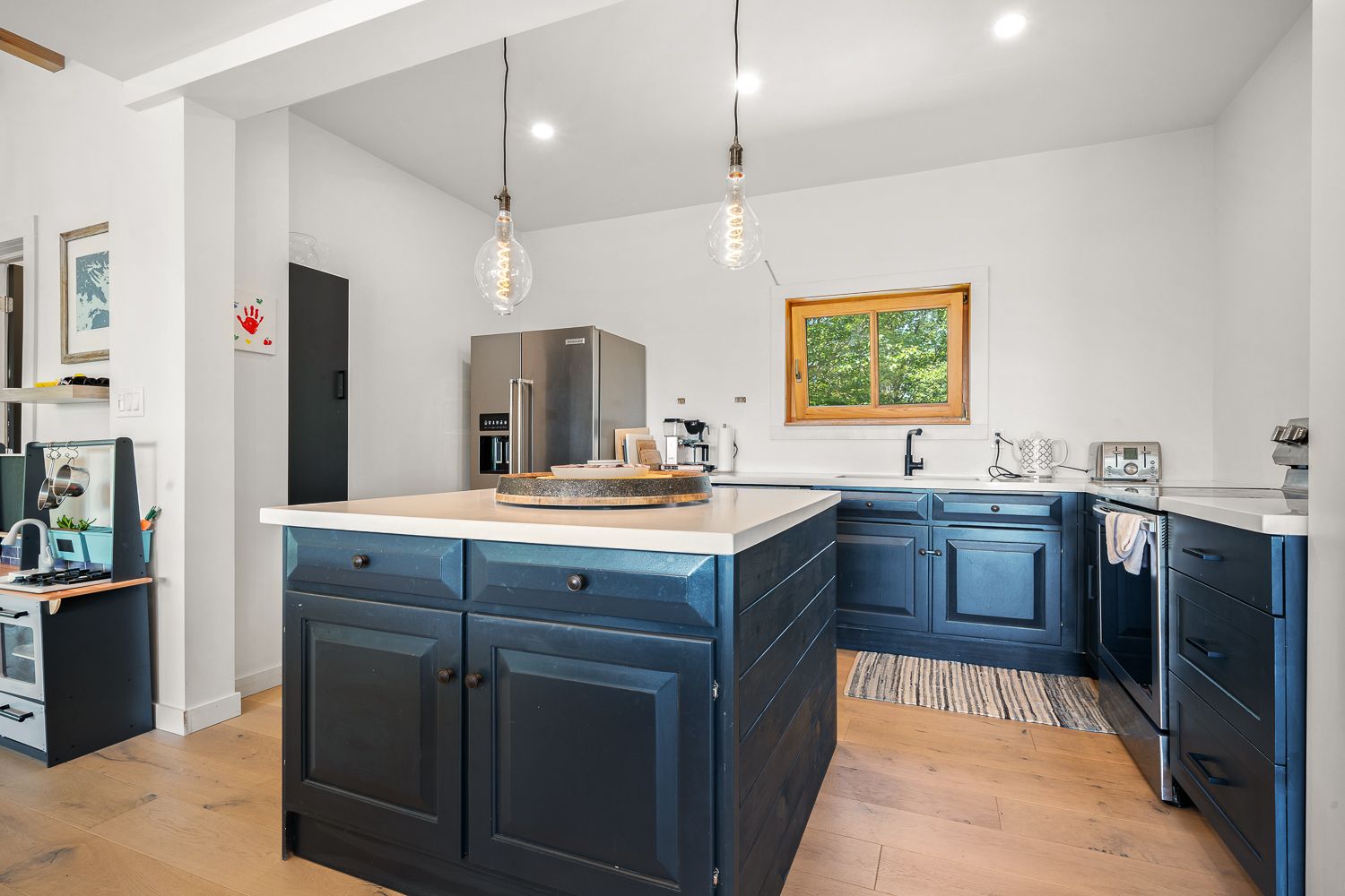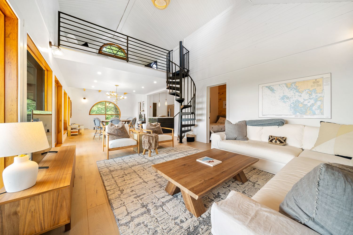 • Updated main cottage with modern kitchen and cozy features.