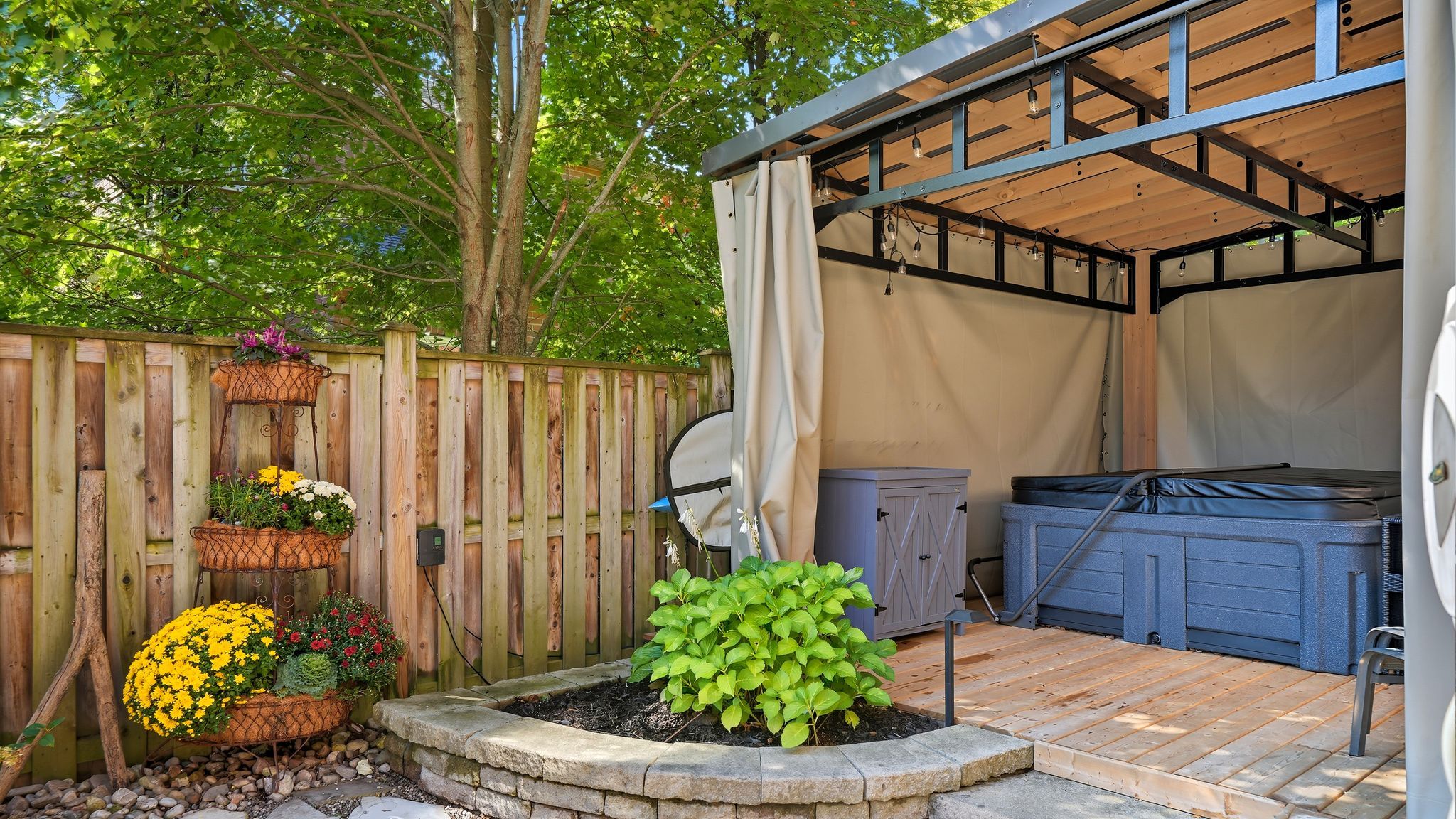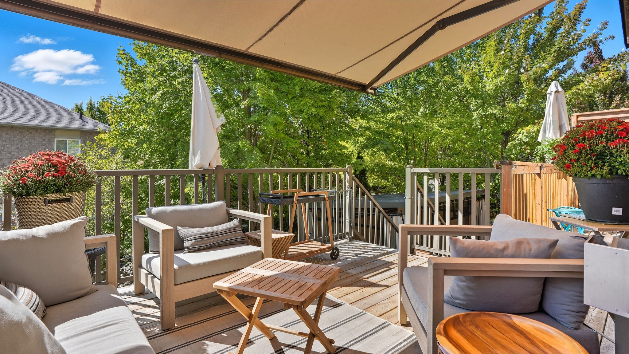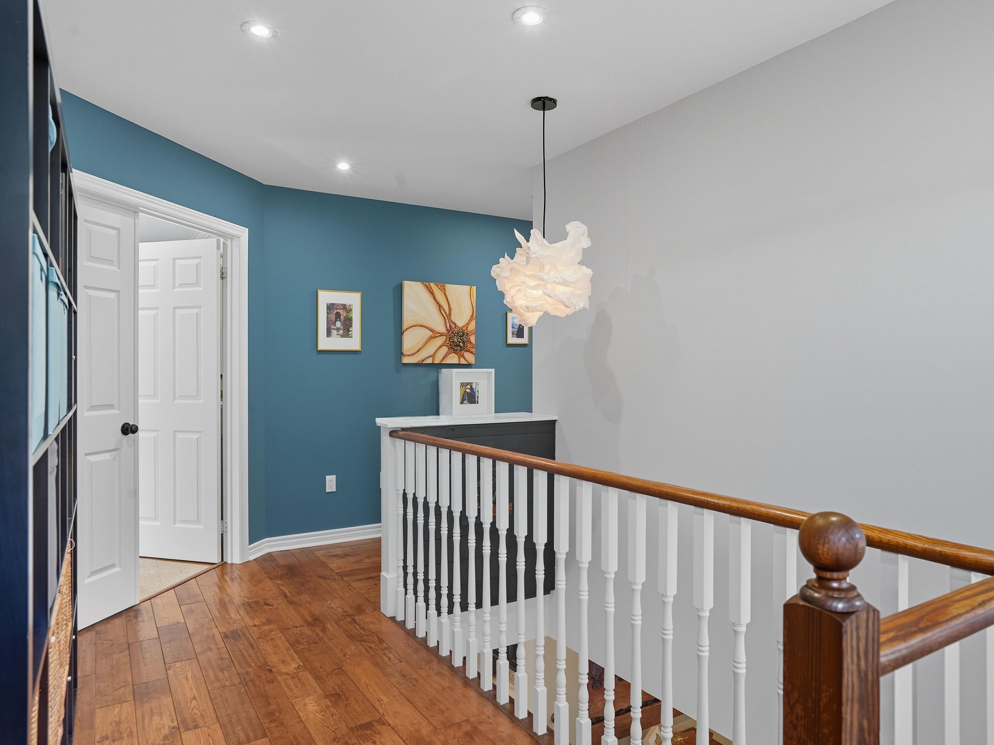 Modern, open concept living at the doorstep of historic dundas this thoughtfully renovated original owner home offers a spacious, open-concept main level with hand-scraped hardwood floors, 9-ft ceilings with crown moulding, and numerous pot lights. The gourmet kitchen is a true showstopper, featuring extended cabinetry with pantry and pot drawers, a coffee bar, quartz countertops, a dramatic 10+ ft waterfall island with breakfast bar, and stainless-steel appliances. A sunlit breakfast area walks out to a large deck with an awning, while the family room showcases a gas fireplace with a sleek new surround. A separate dining room and updated powder room complete this level. Upstairs, the primary suite features a custom walk-in closet with organizer and a spa-inspired ensuite with double sinks, a freestanding soaking tub, and a glass-enclosed barrier free shower. Three additional bedrooms and a small study area share an updated 5-piece bathroom. The finished walkout basement offers a spacious rec room, kitchenette, bedroom, 3-piece bathroom, and second laundry, making it ideal for a nanny or in-law suite. Outdoor living is exceptional with an upper deck, lower deck, and a covered hot tub with gazebo and privacy drapes. Additional features include a beautifully renovated main-floor laundry with garage access, a spacious double-car garage, and a prime location directly across from a park. Just minutes away, downtown dundas offers a vibrant arts and culture scene, charming boutiques and cafés, plus award winning restaurants. Known for its historic character and natural beauty, dundas is surrounded by scenic waterfalls, dramatic escarpment views, and the dundas valley conservation area, where residents enjoy hiking, biking, and year-round outdoor adventures.