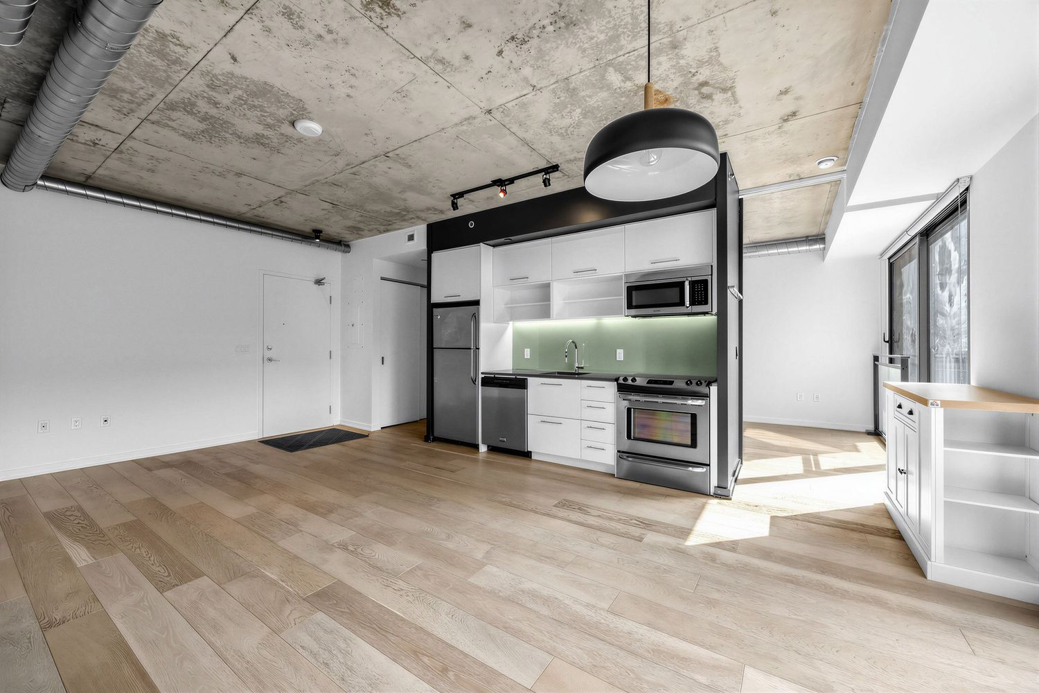 • Expansive floor-to-ceiling windows provide ample natural light throughout.