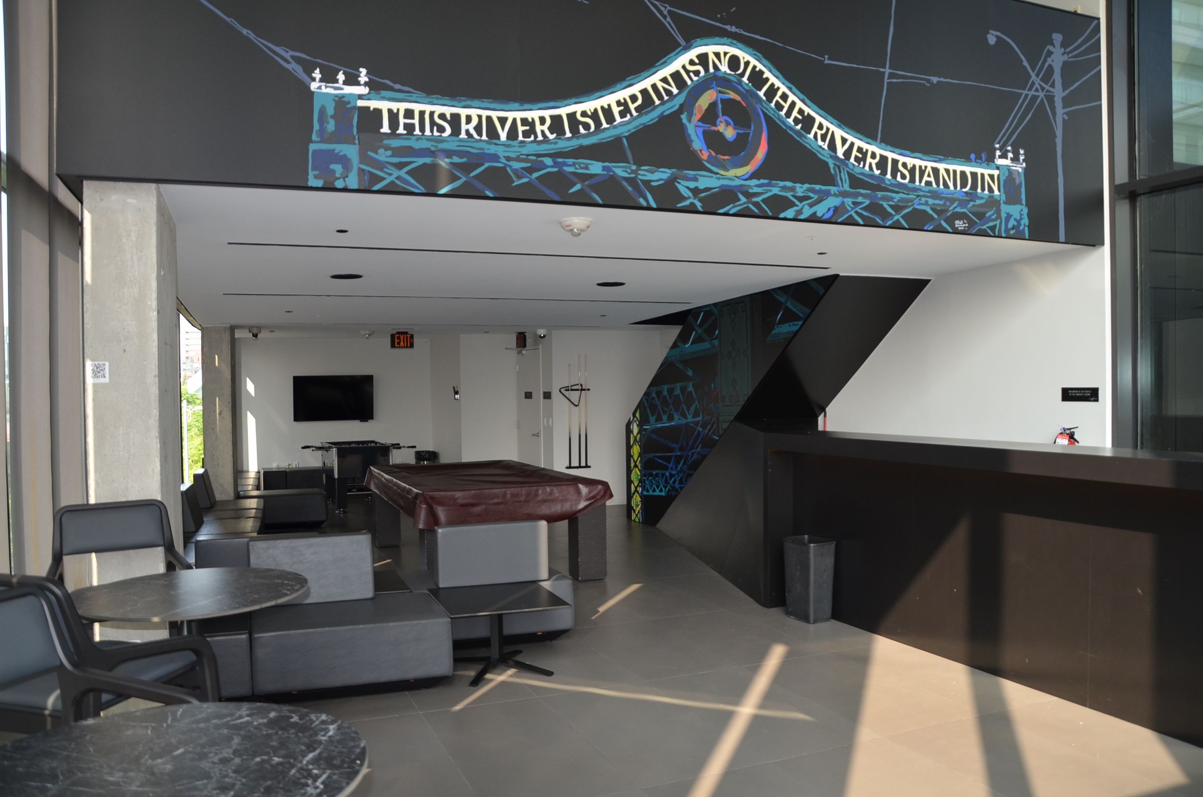 Jr. 1 bedroom + study unit with 9' concrete exposed ceiling, floor to ceiling windows/glass doors. Engineered hardwood floor, modern designer kitchen features s/s appliances and quartz counter in award winning and fast growing river city community. 23 acres of public parks incl 19 acres don river park and trails. Walk to distillery district, corktown, st. Lawrence market and many amenities. Easy access to hwy, minutes to ttc rides to downtown core.