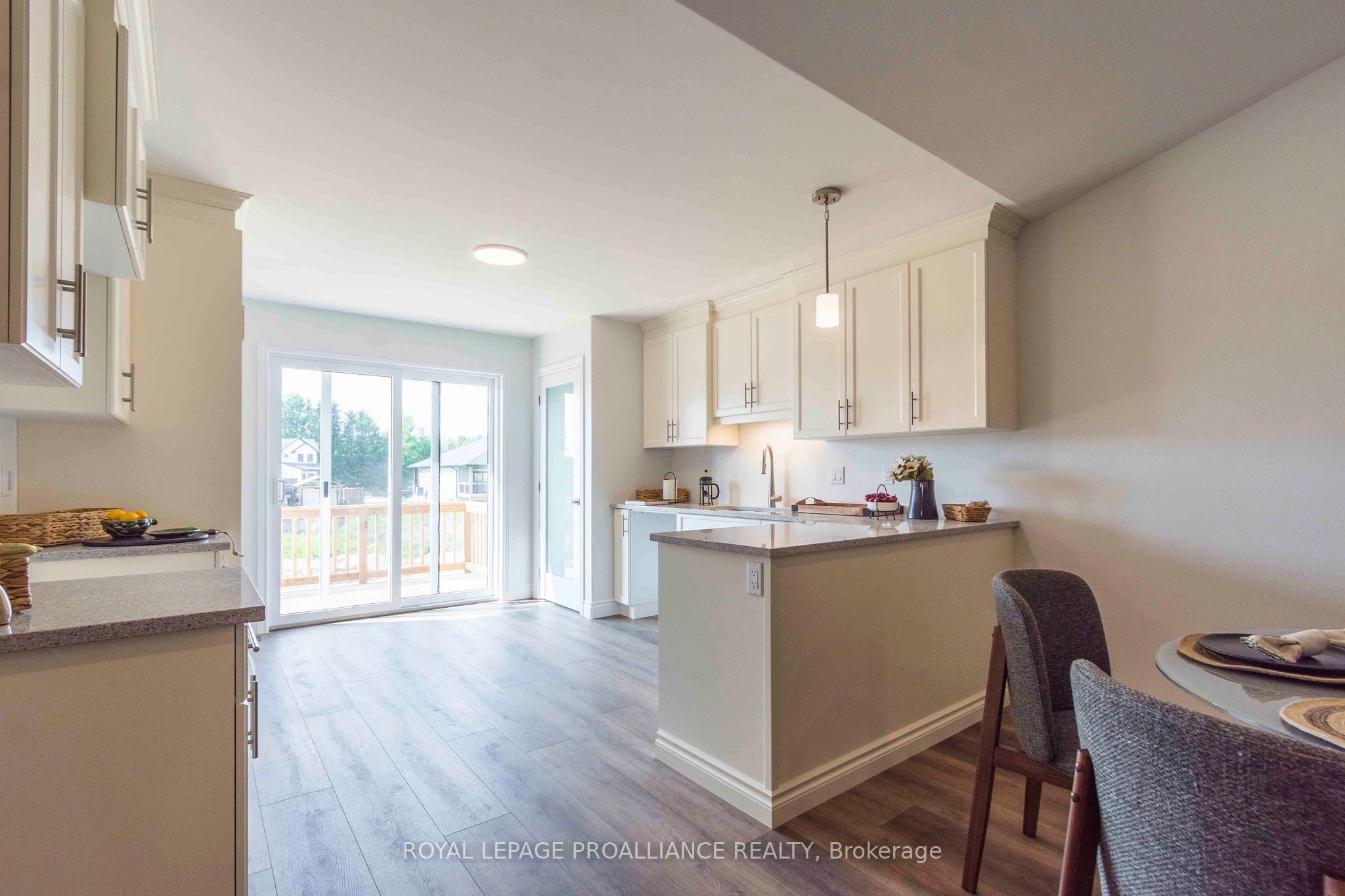 • Custom kitchen with quartz countertops and walkout to a back deck.