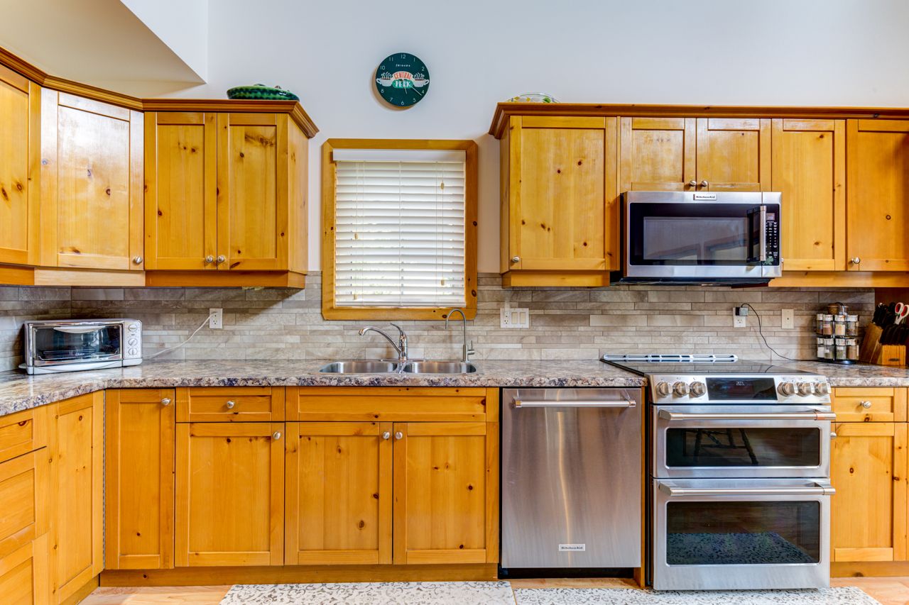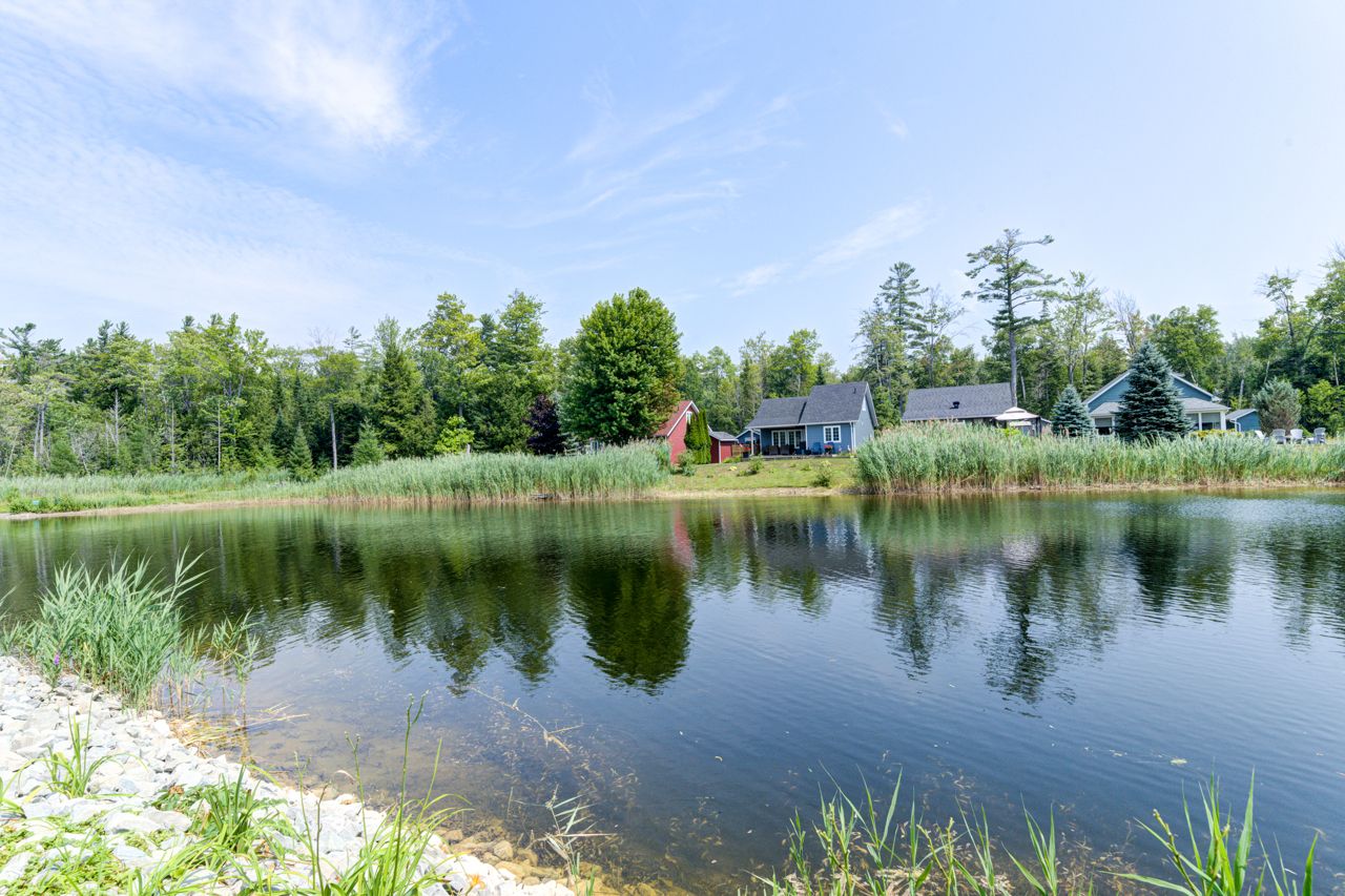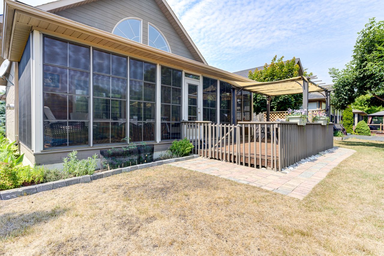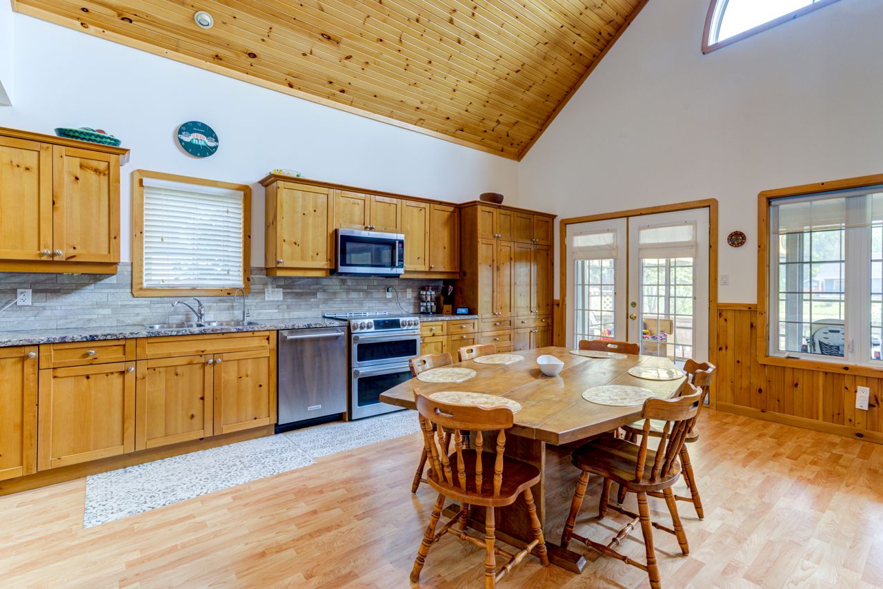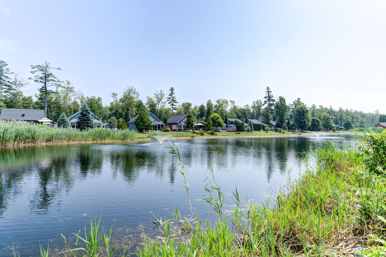 Quite possibly one of the finest 'muskoka' models you'll find in the sought-after, gated family community of wasaga countrylife. This beautifully updated 1. 5-storey, four-season wood chalet offers 1,635 sq/ft, including bonus sunroom with 278 sq/ft of luxurious living space backing onto scenic lake wasaga, providing peaceful water views. Located just a short walk to the shores of georgian bay, this 3-bedroom, 2-bathroom retreat features vaulted tongue-and-groove pine ceilings and an open-concept kitchen, dining, and living area anchored by a cozy gas fireplace. Enjoy the spacious 10' x 27' sunroom and adjoining sun deck both perfect for relaxing or entertaining while overlooking the pond. Tastefully updated since its original 2006 build, this home includes newer appliances (including an induction stove with double oven), wood laminate flooring, central air, a paved driveway, and extensive landscaping. As part of the resort community, residents have access to a wide range of amenities including indoor and outdoor pools, a splash pad, pickleball and tennis courts, a sandy beach area, and play grounds all nestled in a beautifully treed, secure setting.