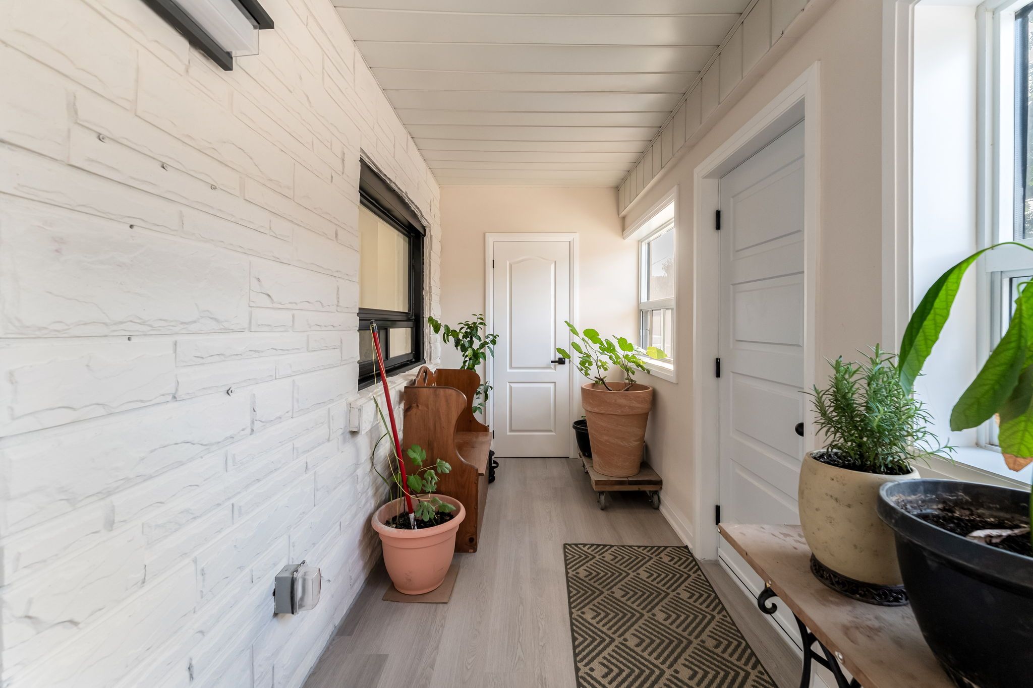 • Bright main floor includes open concept living area and enclosed veranda.
