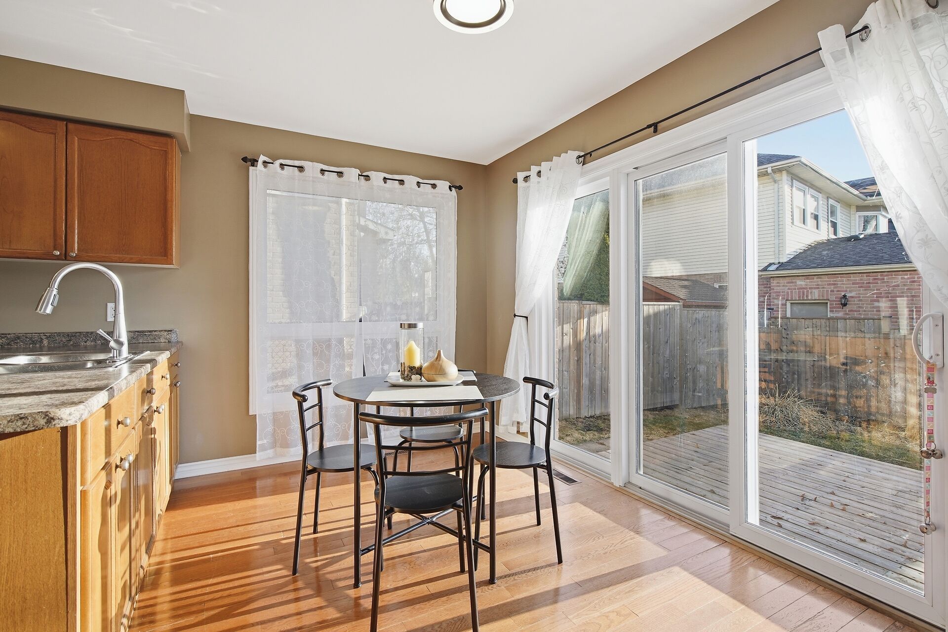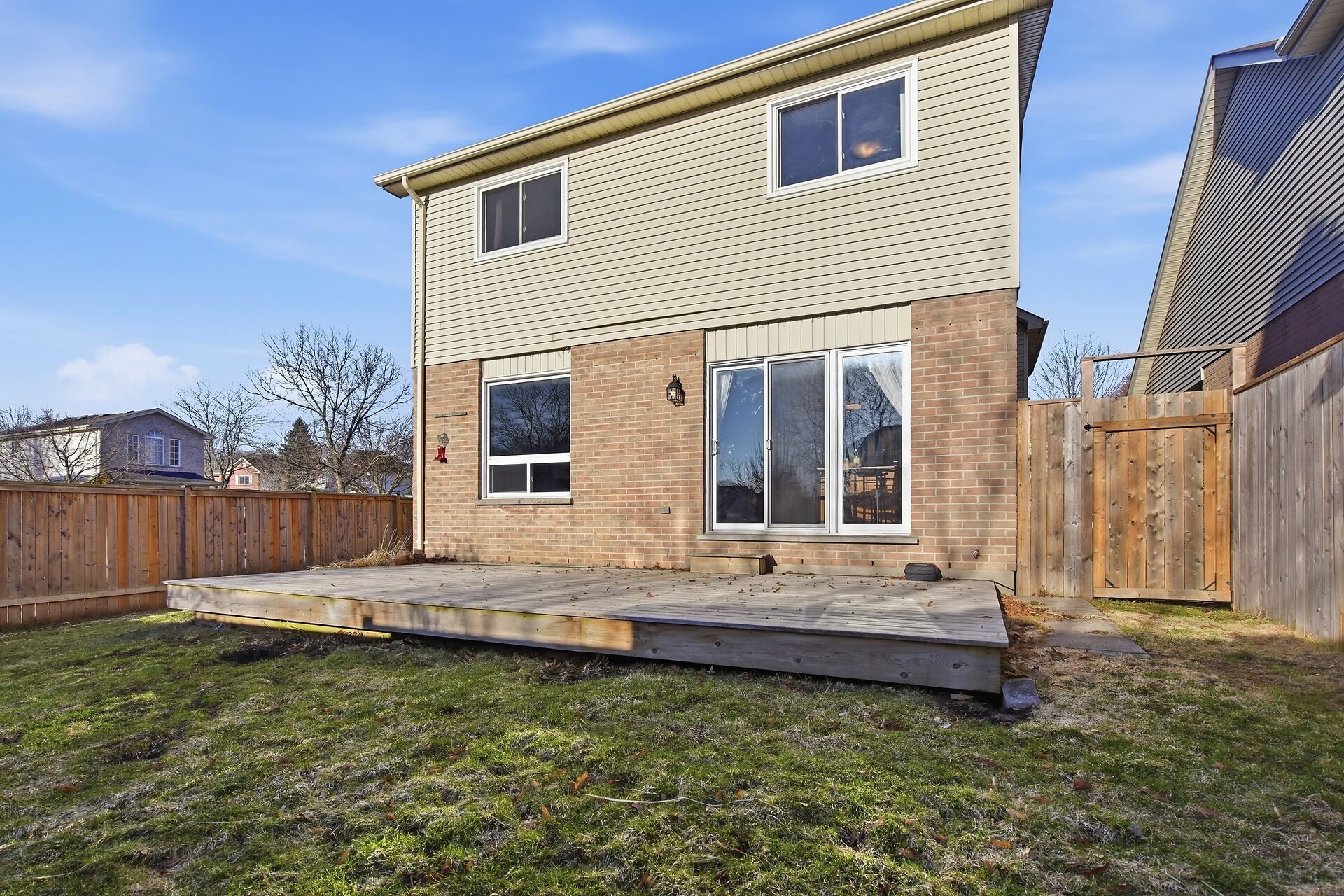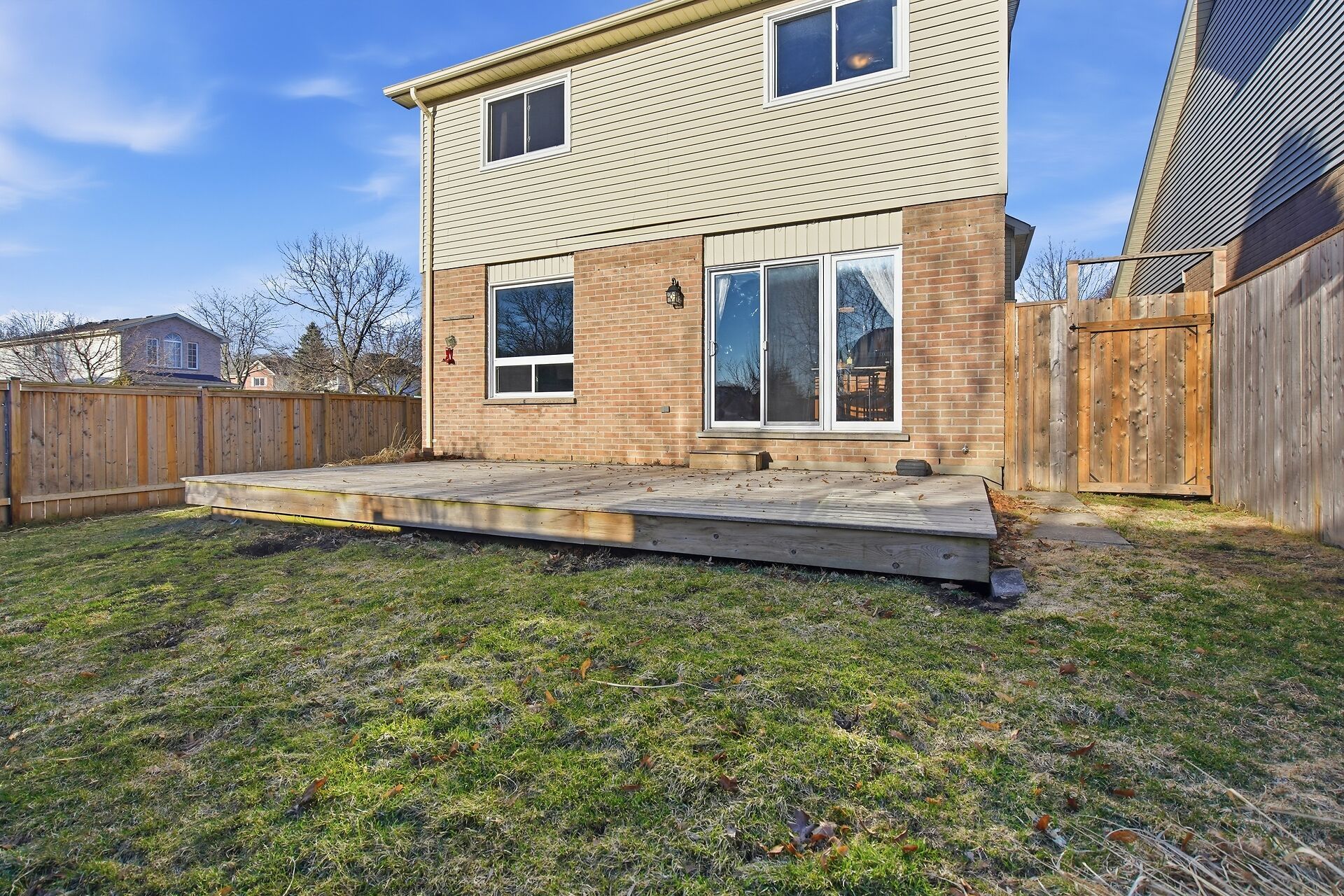 • Private backyard with a deck, perfect for family gatherings.
