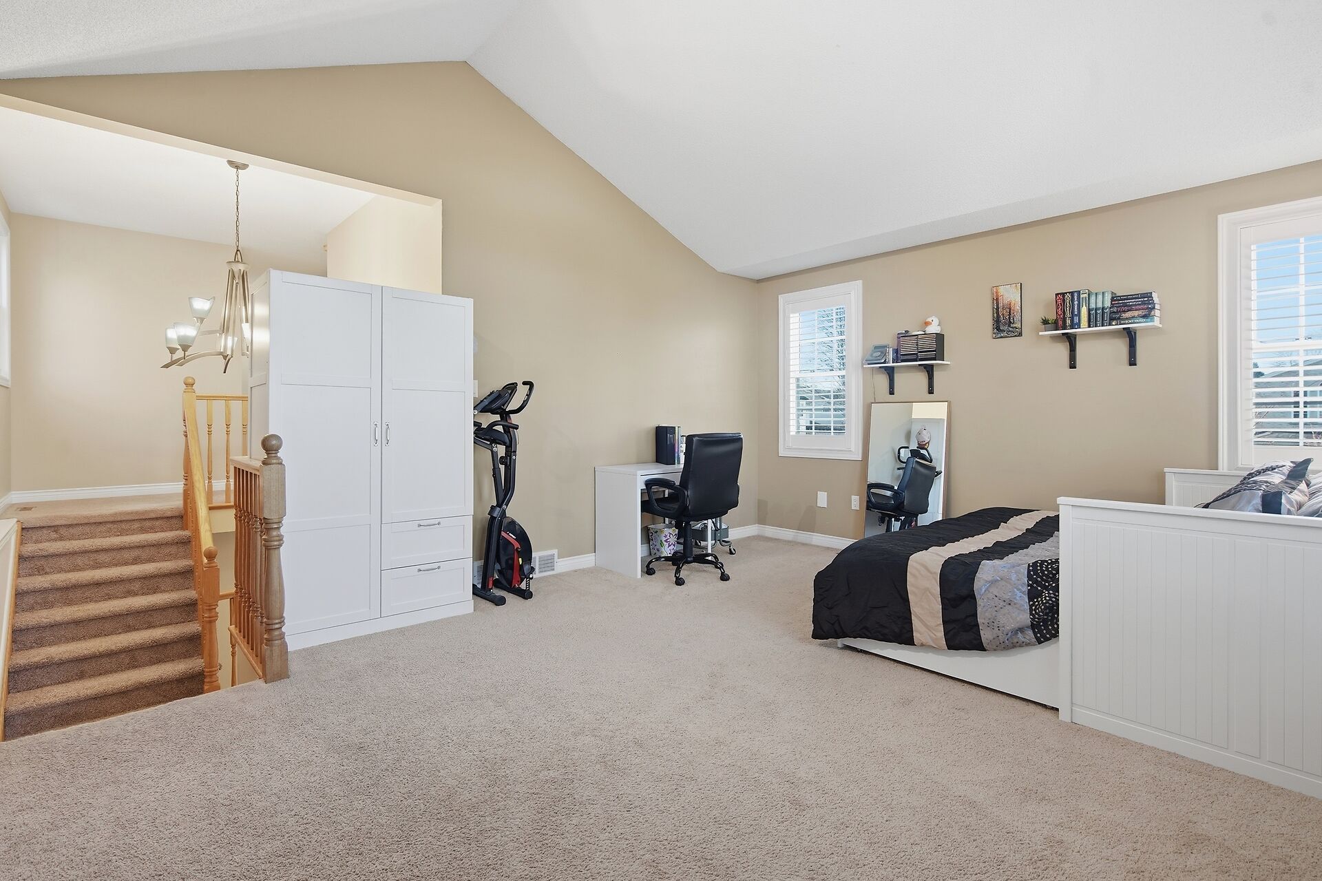 • Second floor features a loft area and three spacious bedrooms.