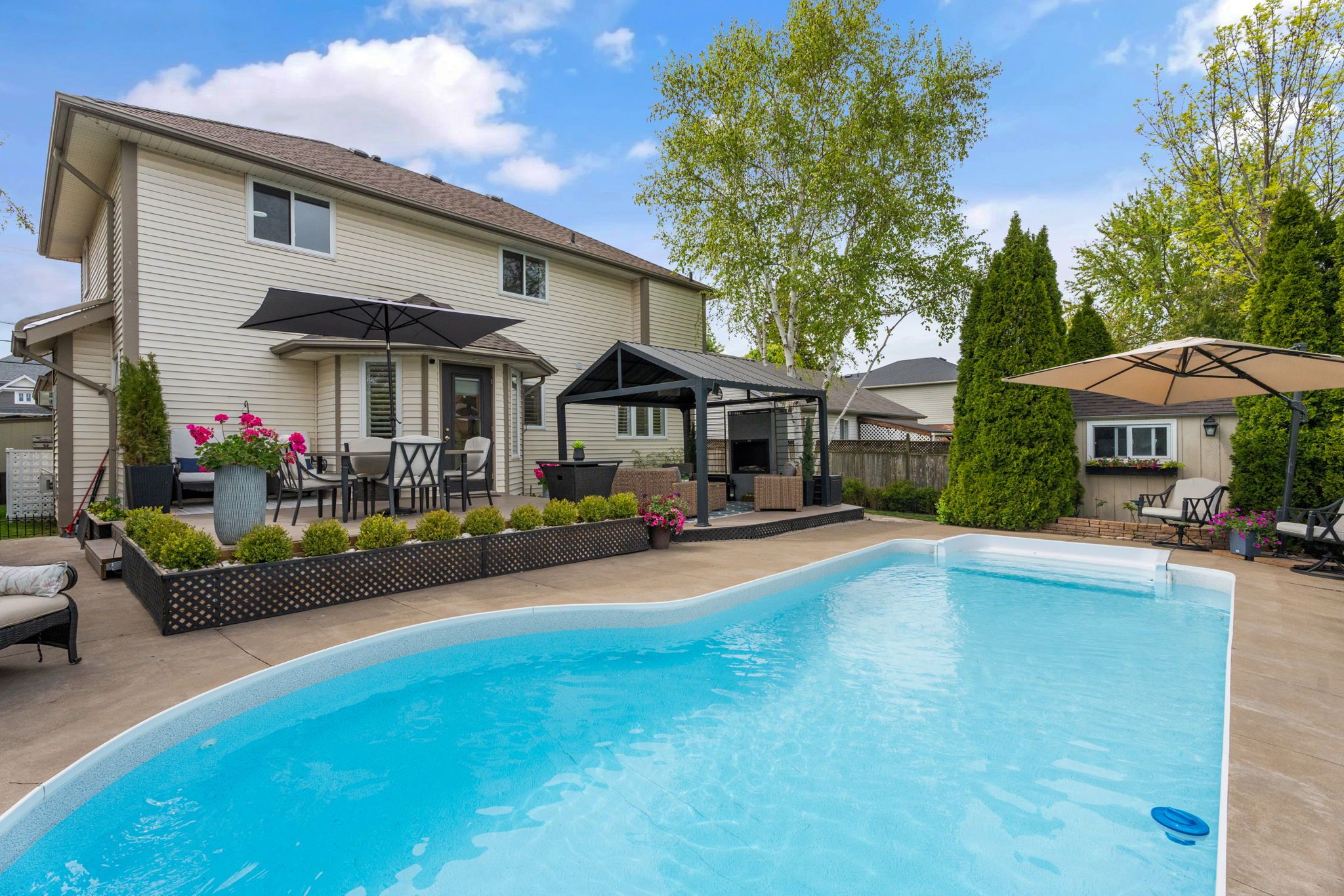 • Backyard provides both patio and green space for relaxation.