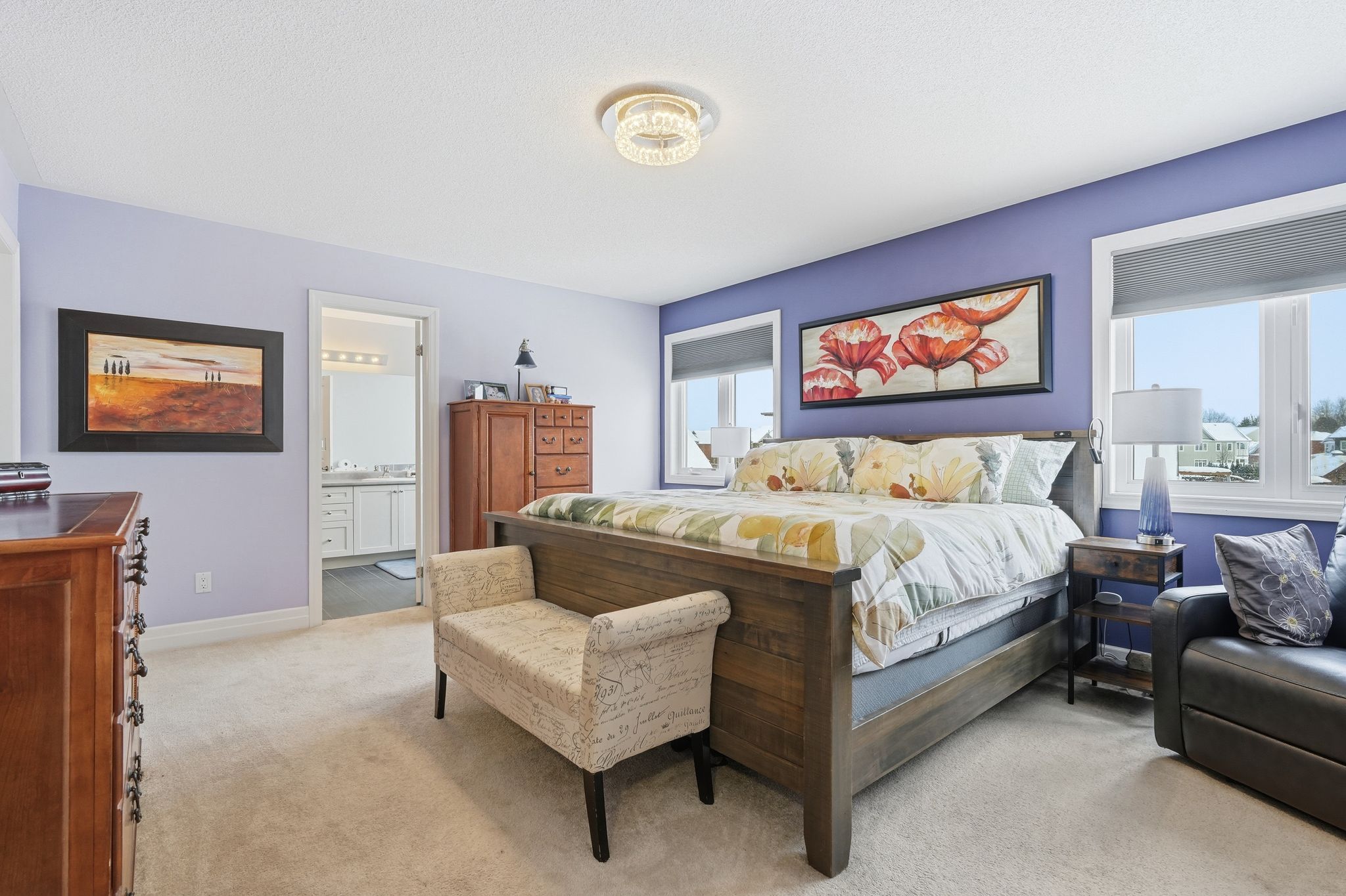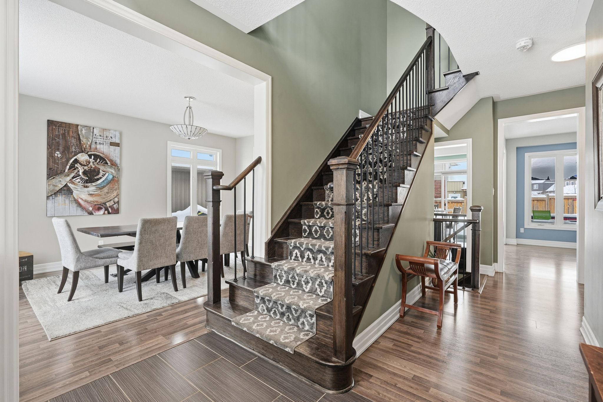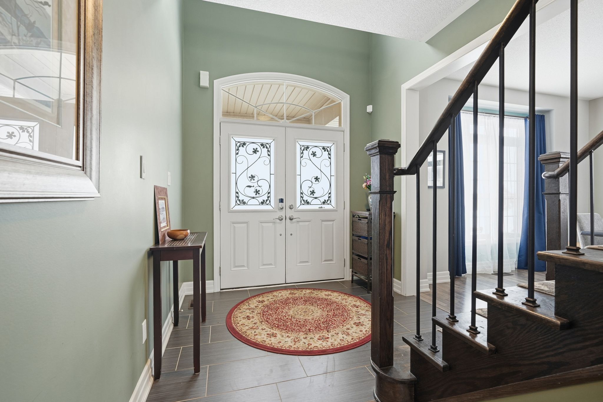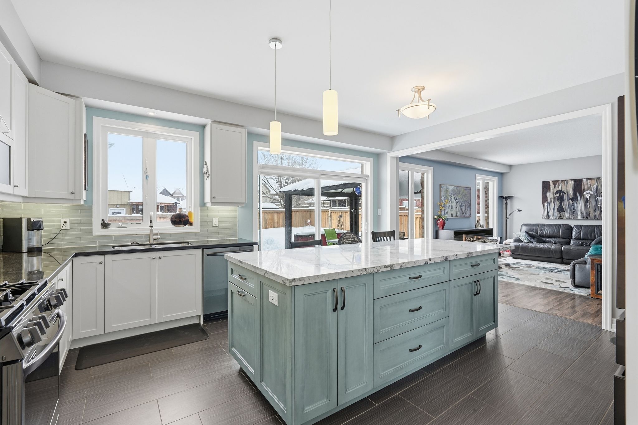 Meticulously maintained executive 4+1 bed home with lovely finishes and upgrades throughout. The main floor features a stunning kitchen with granite counters, glass backsplash, and large custom island. The convenient inside entry from the garage is set up as a mud room with washer/dryer hookup behind if preferred. From the large foyer, a hardwood staircase leads to the upper level which features a large primary bedroom with 5-piece ensuite bath and 3 other good sized bedrooms and a juliette balcony. Fully finished basement with rec room and bedroom, 3-piece bathroom and laundry/utility room. Backyard oasis with heated fibreglass saltwater pool, interlocking stone, outdoor kitchen, gas fire pit, new natural gas bbq (lifetime warranty), expansive deck, lawn irrigation, and custom garden shed plus pool pump house. Heated, insulated triple-car garage with epoxy floor, 14' ceiling, and man-cave space complete with storage cabinets and included big screen tv. Driveway parking for 4 cars. Directly across from walking path to the nottawasaga river and treed greenbelt. Move-in ready - a must-see!