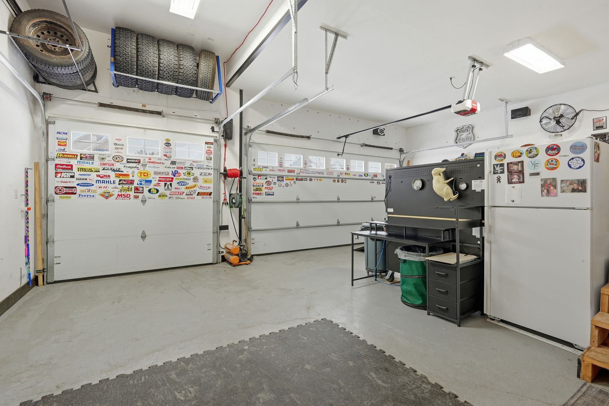• Heated triple-car garage with plenty of space for storage and vehicles.