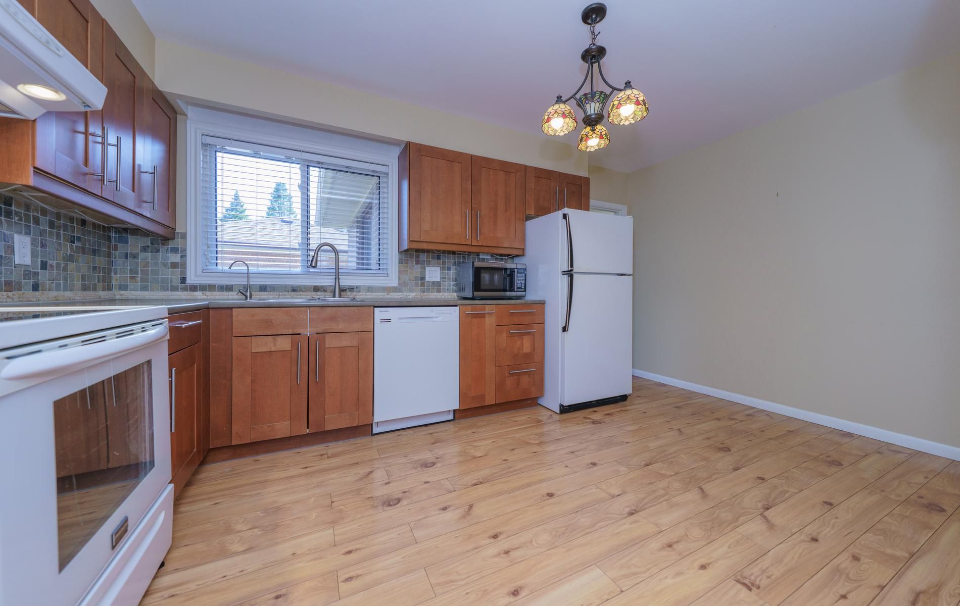 • Spacious main floor with hardwood, renovated kitchen, and three bedrooms.