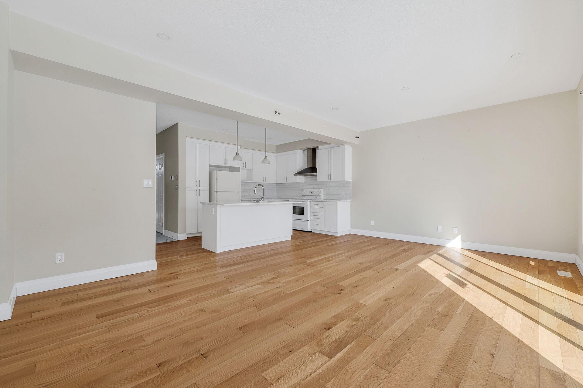 • Bright open-concept design with 9' ceilings and hardwood floors.