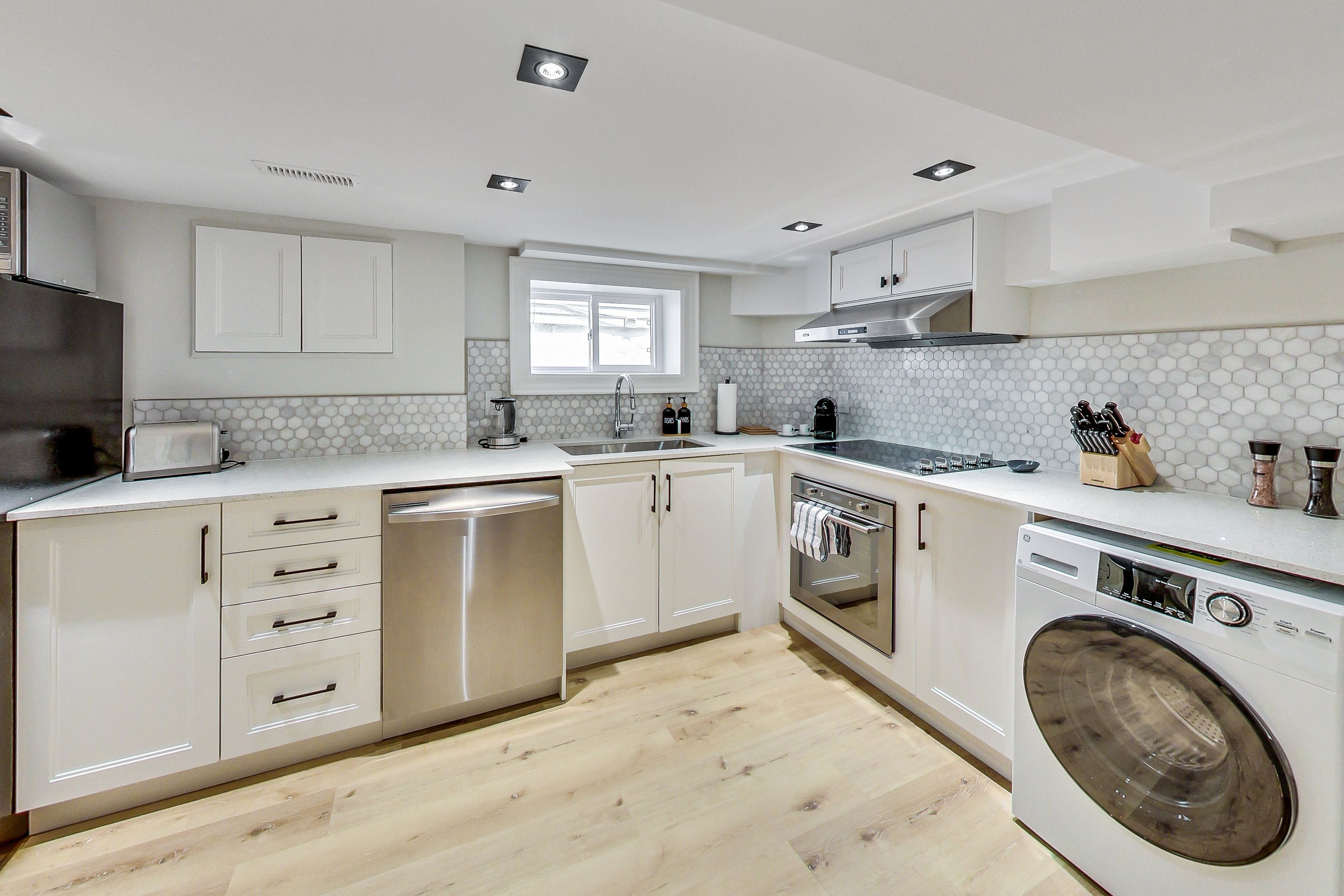 • Finished basement with separate entrance and additional kitchen.