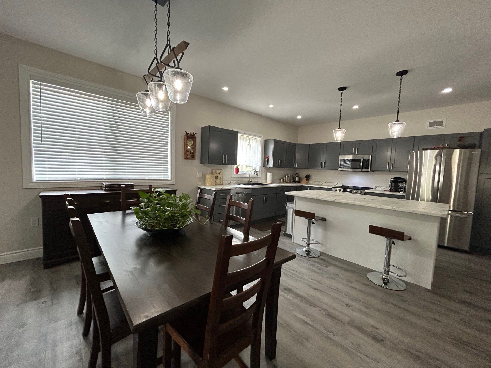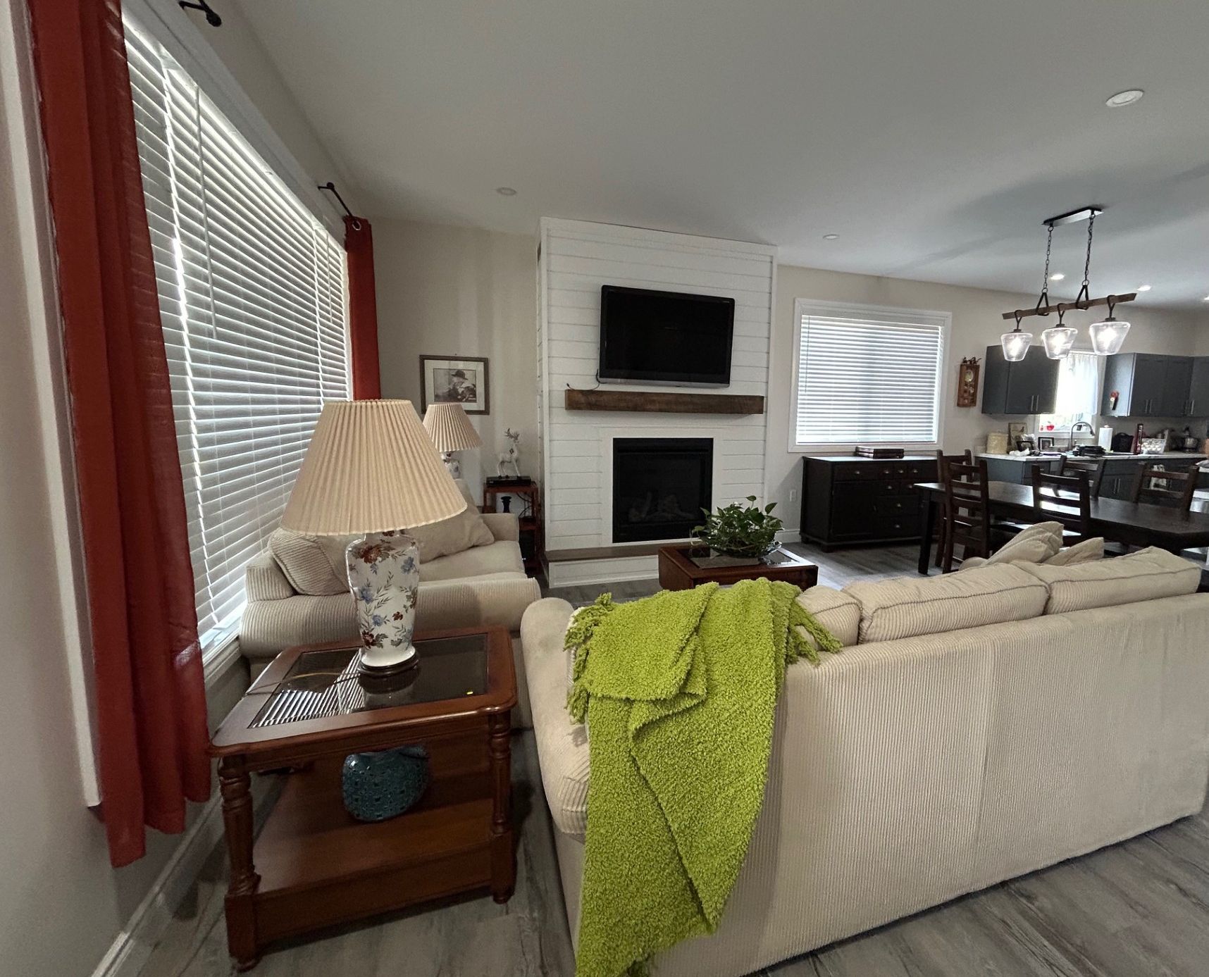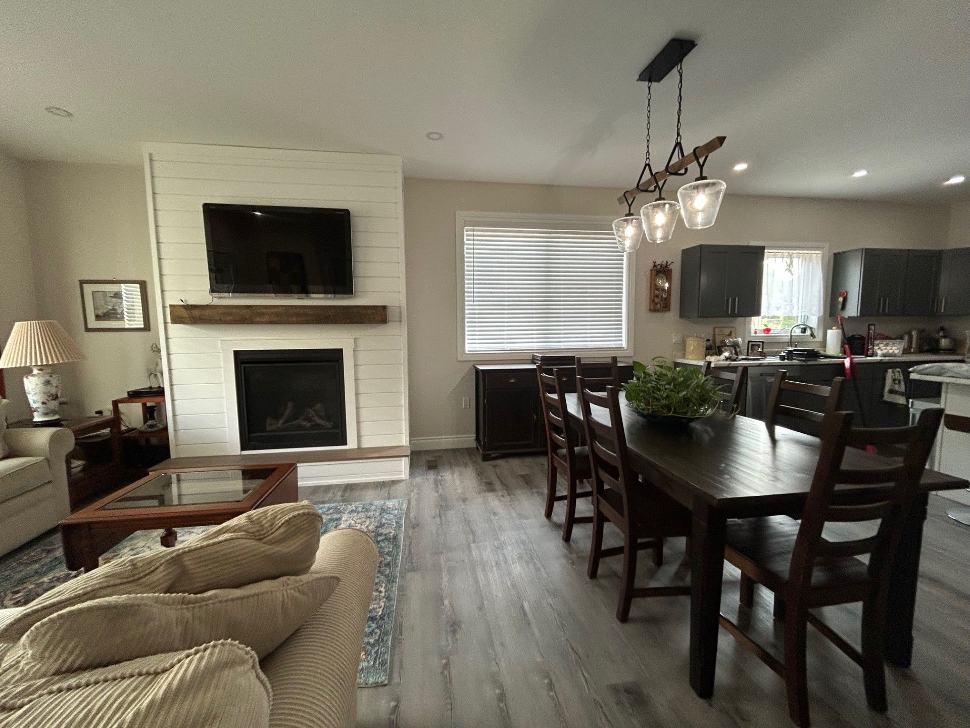 Ideal for multi-generational living | move-in ready in a quiet village subdivision. This beautifully maintained, three-year-old home is perfectly suited for multi-generational living. Located in a quiet village subdivision, it offers the ideal setup for extended family-whether accommodating senior parents or young adults starting out. The home features a tasteful, low-maintenance exterior accented with stone and a charming east-facing front porch, perfect for enjoying the morning sun. A spacious double-car garage adds both curb appeal and everyday practicality. Built just three years ago, the home boasts modern construction, efficient and affordable gas heating, and low-maintenance living for year-round comfort. Inside, a warm and inviting open-concept layout welcomes you with a cozy living room featuring a gas fireplace, a generous dining area, and a well-appointed kitchen complete with stainless steel appliances, an oversized island, abundant cabinetry, and a separate pantry. The main floor also offers a 4 piece tiled bathroom, a spacious primary bedroom with a private three-piece en-suite and laundry area, two additional guest bedrooms, and convenient interior access to both the garage and lower level. The fully finished lower level is ideal for extended family living, offering a private living space with its own kitchen, a comfortable living room with fireplace, two bedrooms, a storage area, and a private walk-out to the garage and side yard. Virtually altered photo included to illustrate the potential of the yard.