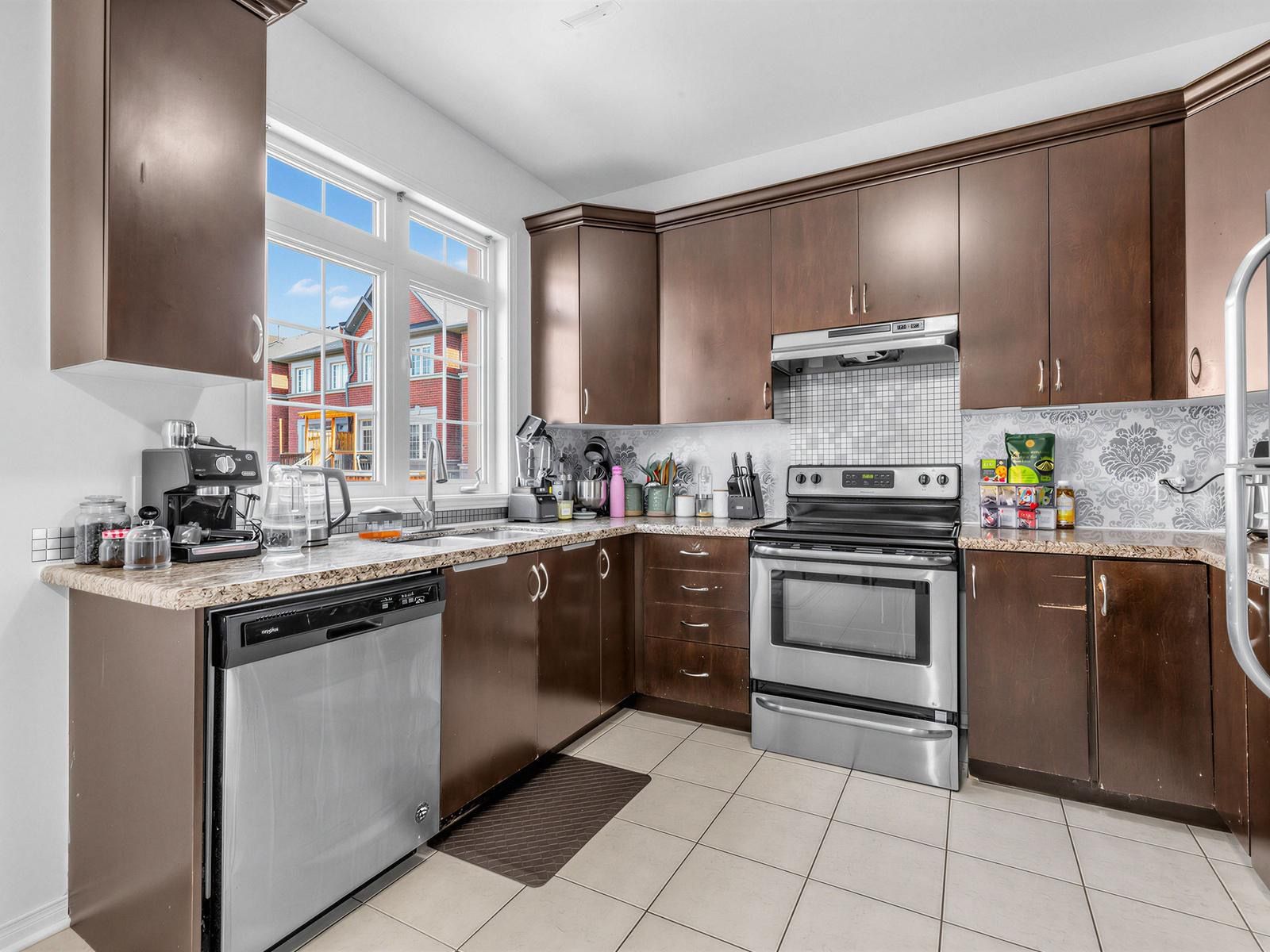 Welcome to this well-kept end-unit townhouse offering approximately 2,119 sq ft of functional living space, with the potential to expand to over 3,000 sq ft once the basement is completed to your needs. Only connected by the garage, the home feels more like a semi-detached, offering added privacy. Inside, you'll find 9-foot ceilings and a bright, open-concept layout that makes the home feel spacious and comfortable. The kitchen has been updated with extended-height cabinetry, granite countertops, and plenty of prep space-practical for everyday cooking and entertaining. The home features 4 good-sized bedrooms and 3 bathrooms, making it a solid fit for families or professionals who need space and flexibility. The unfinished basement provides a blank slate for future plans-whether that's a rec room, home office, gym, or extra living area. Outside, there's a private deck with a built-in gas line for a bbq, making it easy to enjoy outdoor meals and gatherings. The stone exterior adds curb appeal, and the no-sidewalk frontage allows for additional parking. Located in a highly convenient area, you're close to schools, parks, shopping, and everyday amenities, including vaughan mills. Easy access to highways 7, 407, and 404, plus nearby go transit, makes commuting simple. A well-maintained home with strong space, layout, and long-term potential in a sought-after neighbourhood.