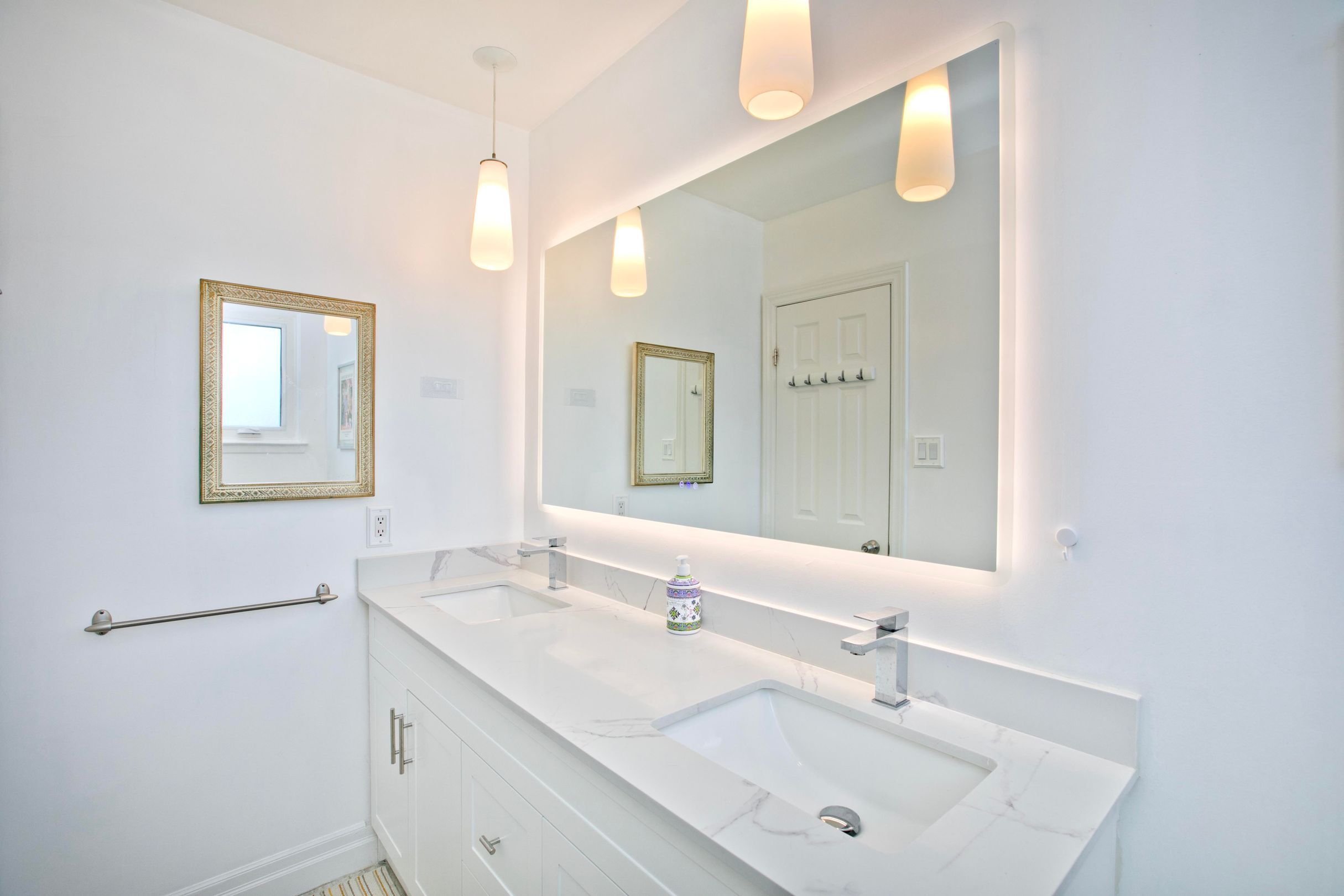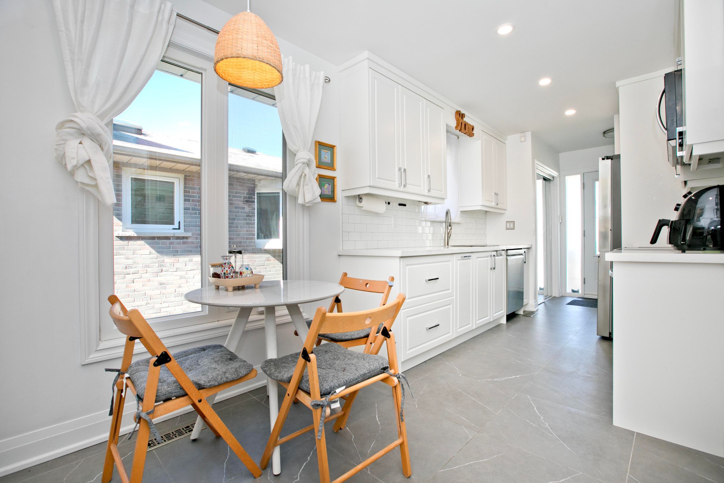 • Updated kitchen and appliances with cabinetry extending to the ceiling.