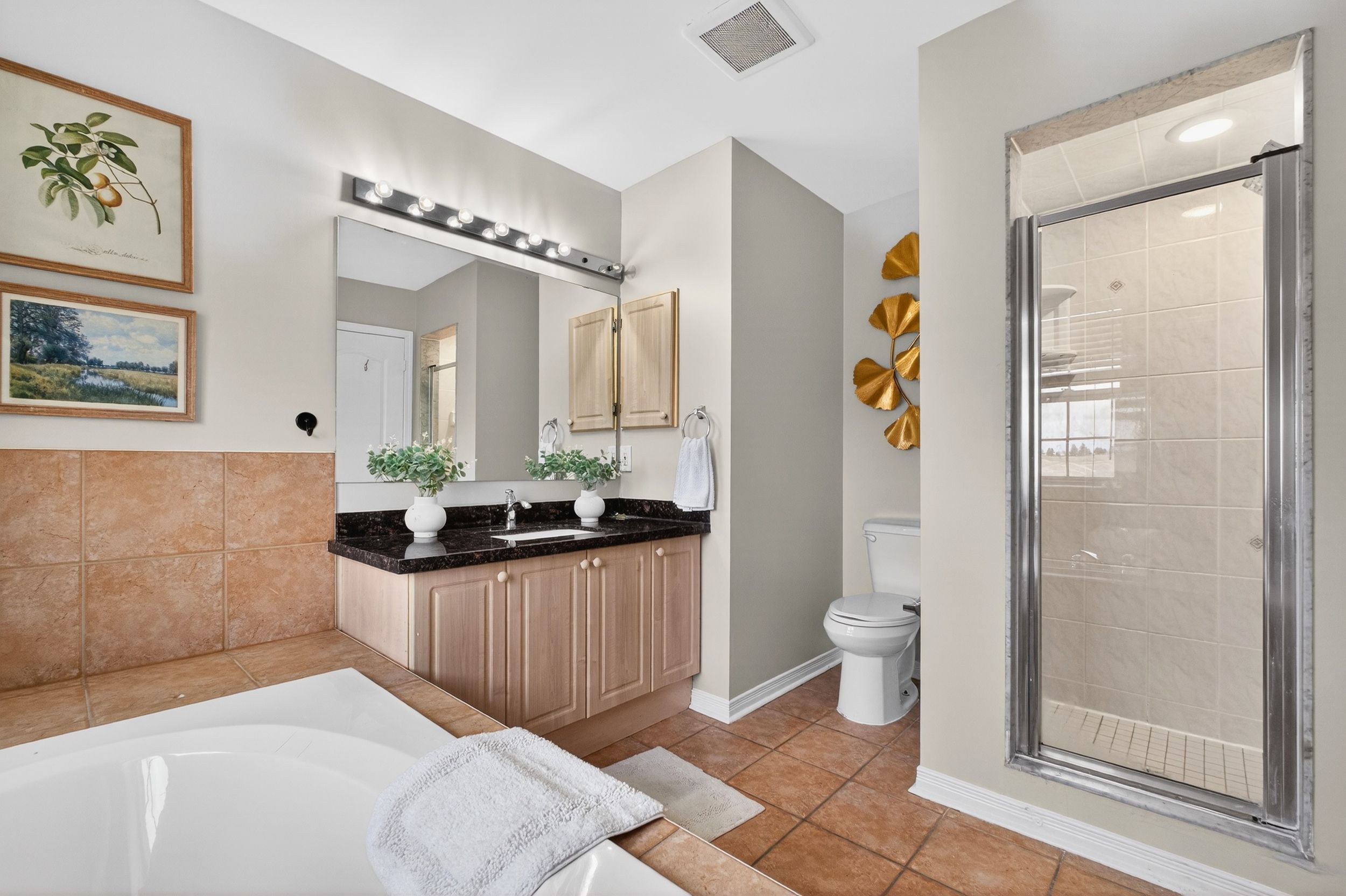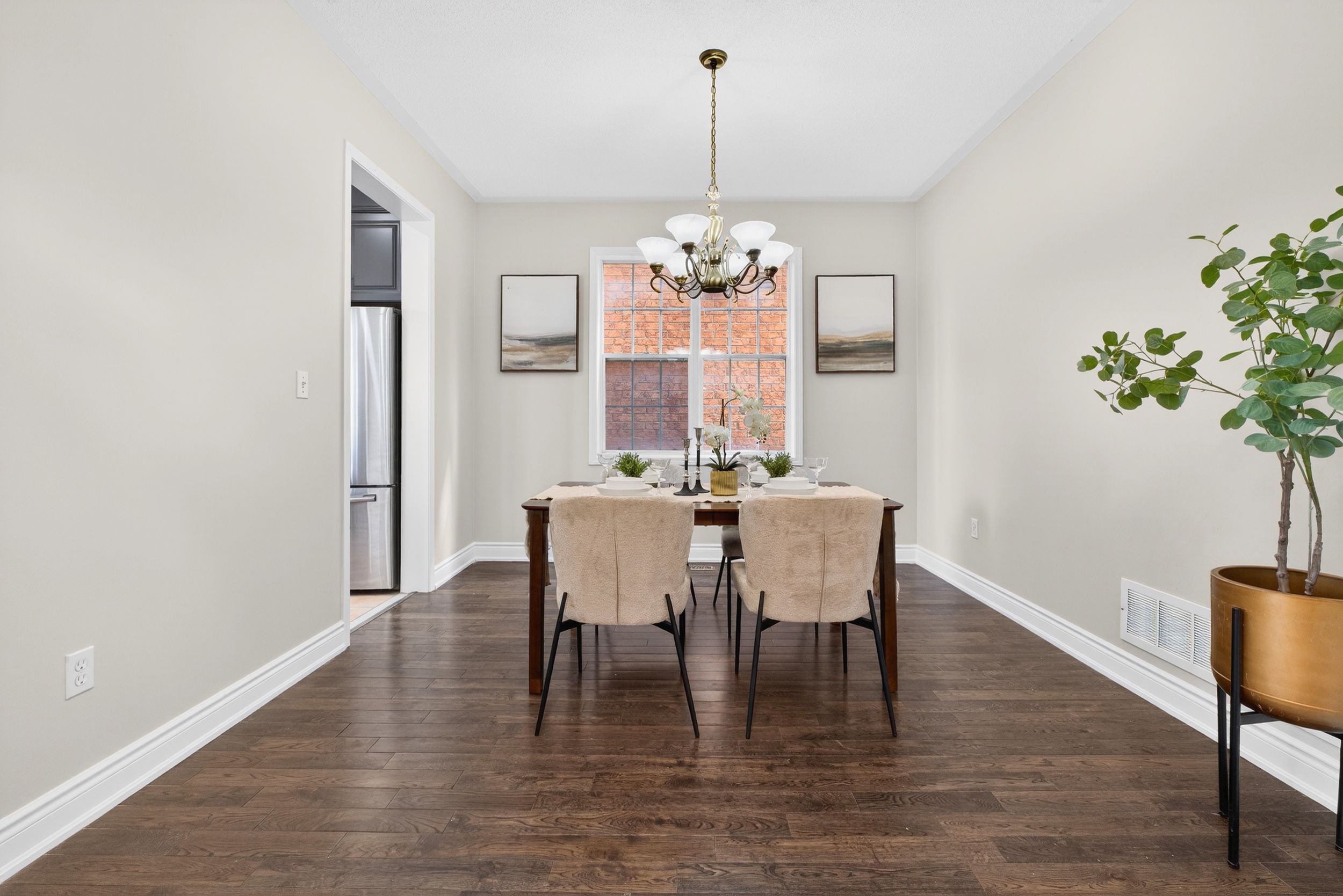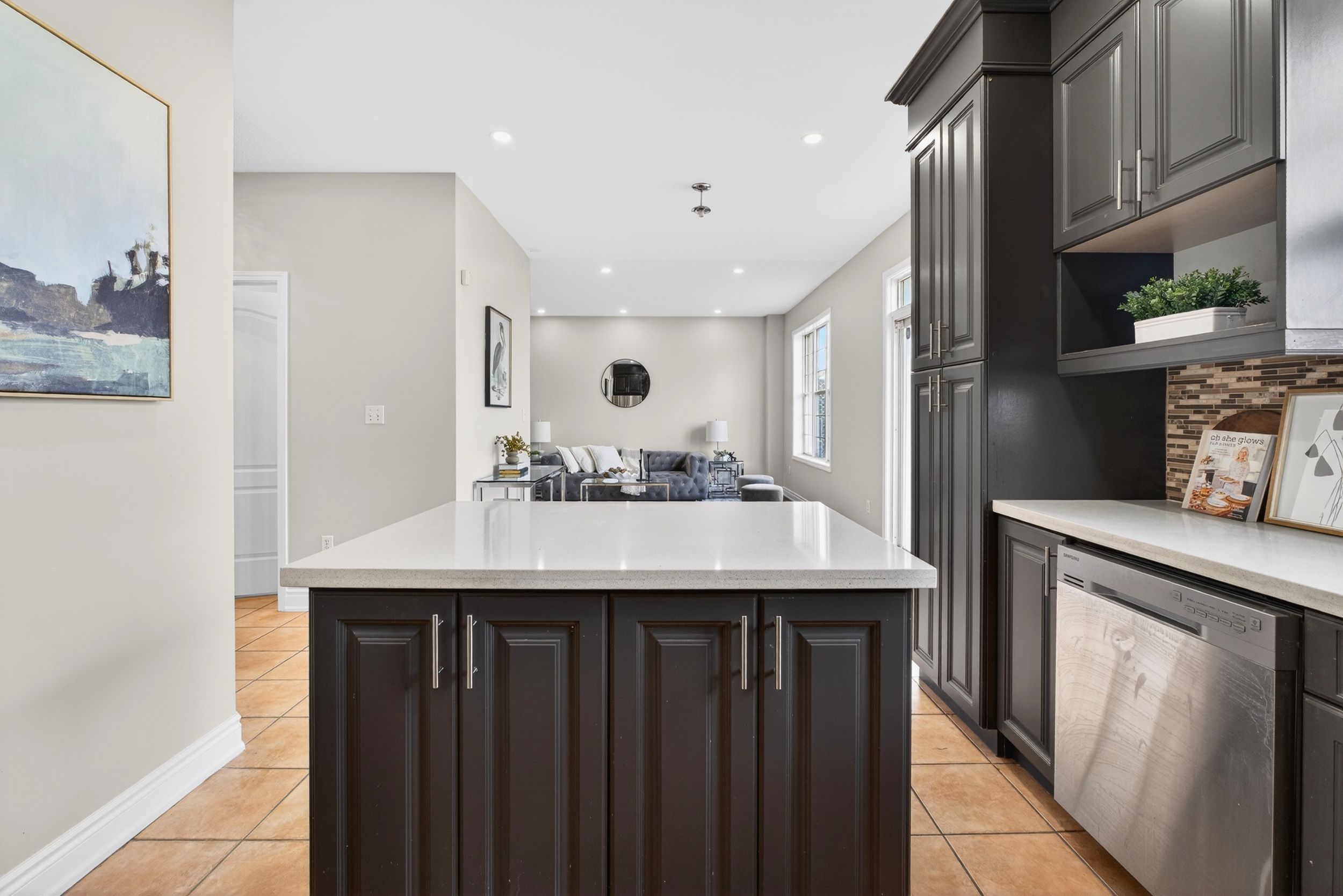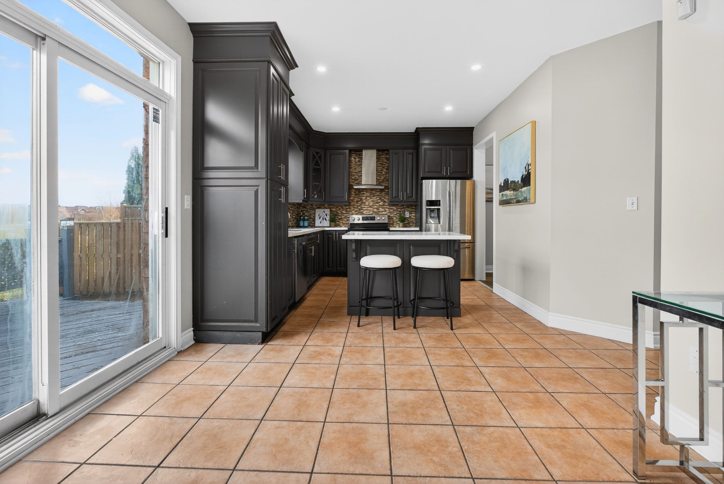 • Modern kitchen with stainless steel appliances and breakfast area.